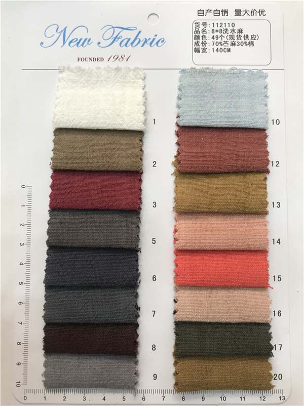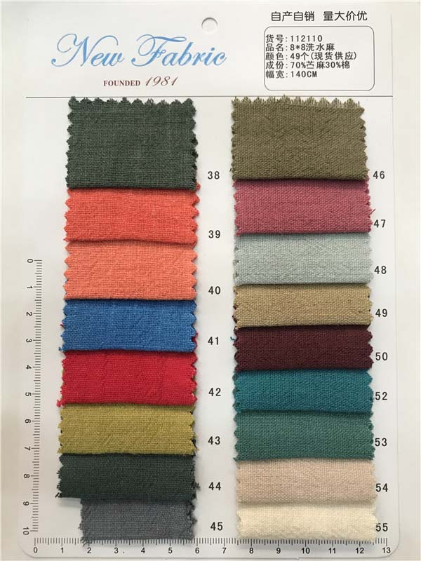 8*8洗水麻49个颜色现货供应厂家直销休闲时尚衬衫面料112110