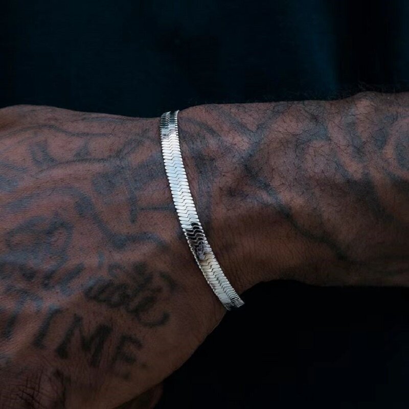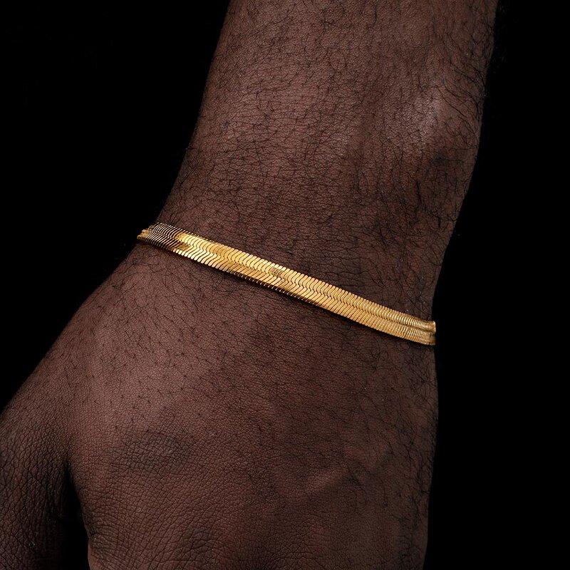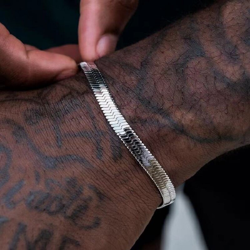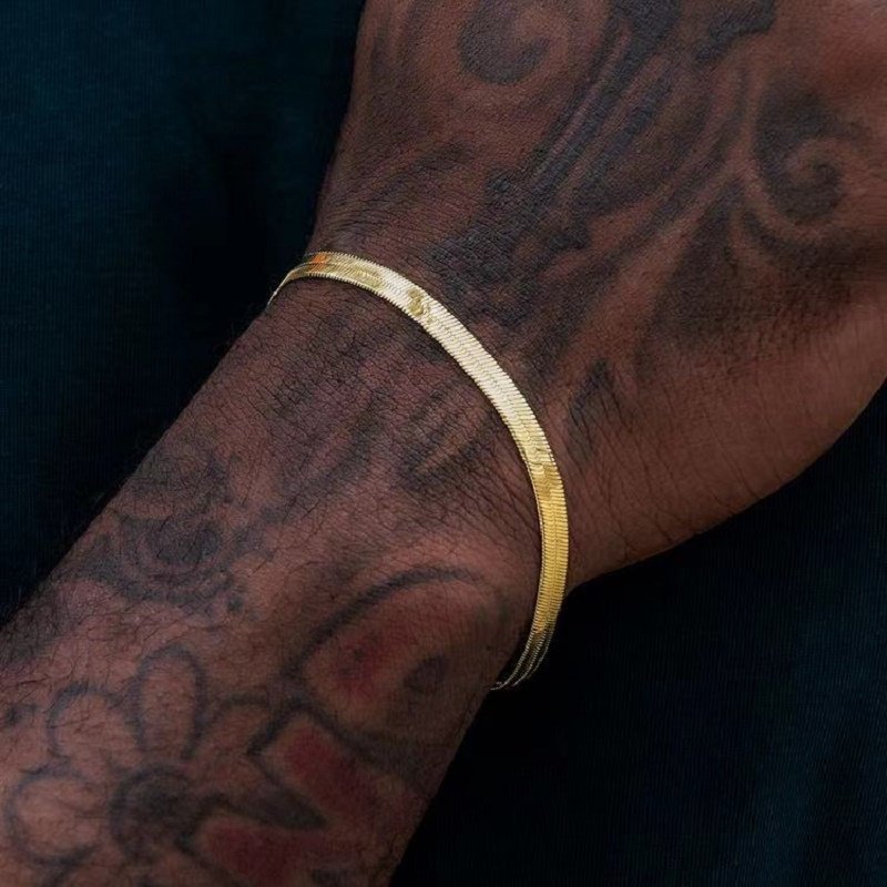 金色蛇骨链手链女不锈钢刀片扁蛇骨手简约男女手环嘻哈潮流百搭