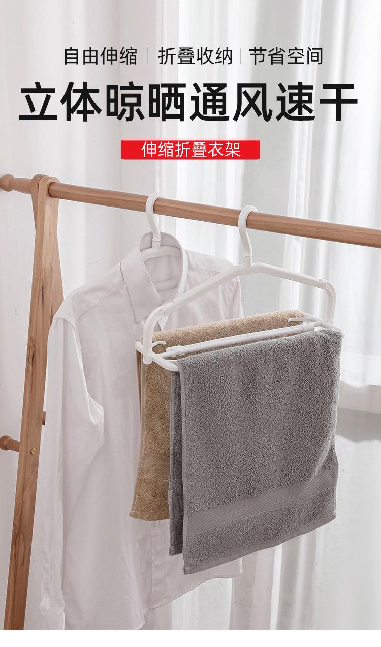 伸缩折叠衣架家用可伸缩晾毛巾衣架挂架浴巾防风挂衣架晒衣架跨境