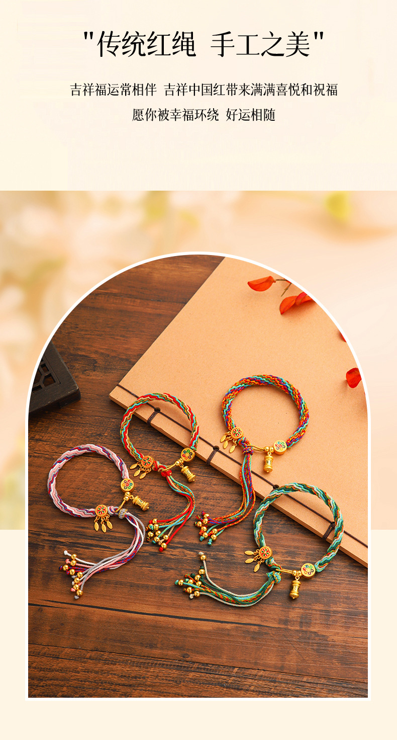 新年五彩红绳藏式七彩轮回手链五彩绳 diy唐卡手绳手工编织绳批发