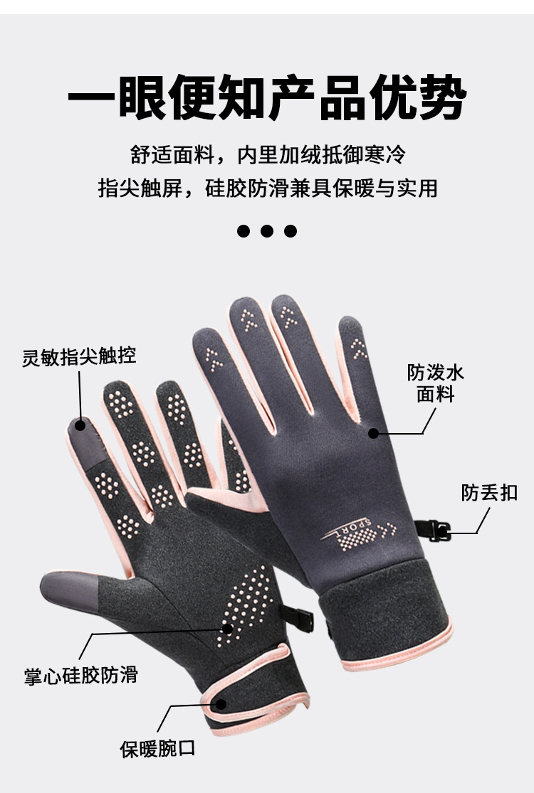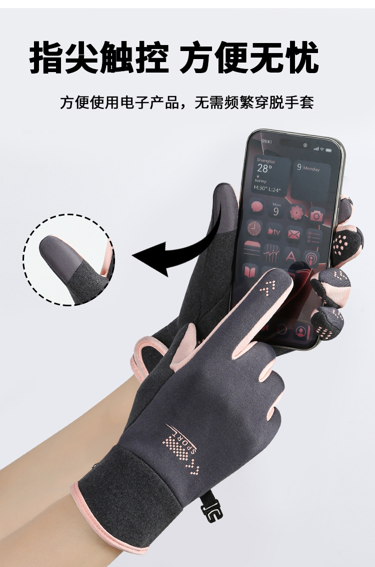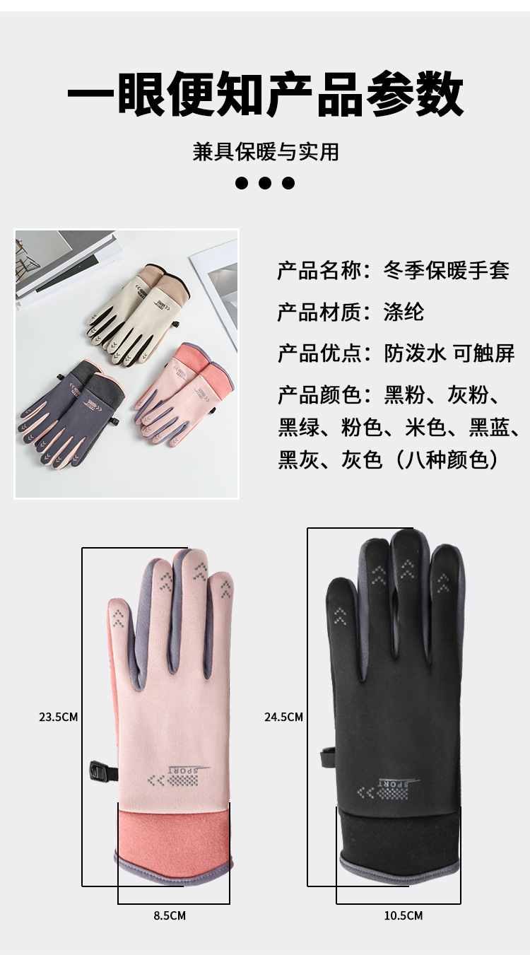 手套男女秋冬季加绒保暖户外骑行运动情侣款防滑防水防寒触屏手套