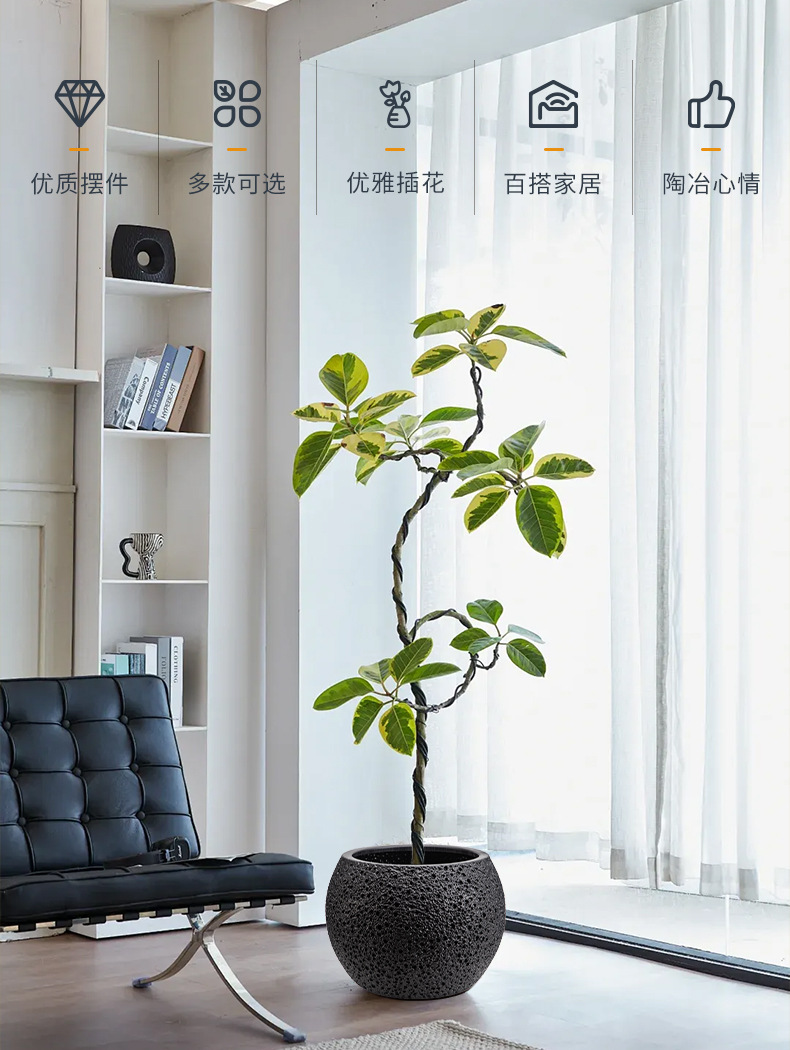 大号落地花盆仿水泥仿真花假树搭配塑料花盆月球面创意盆跨境专供