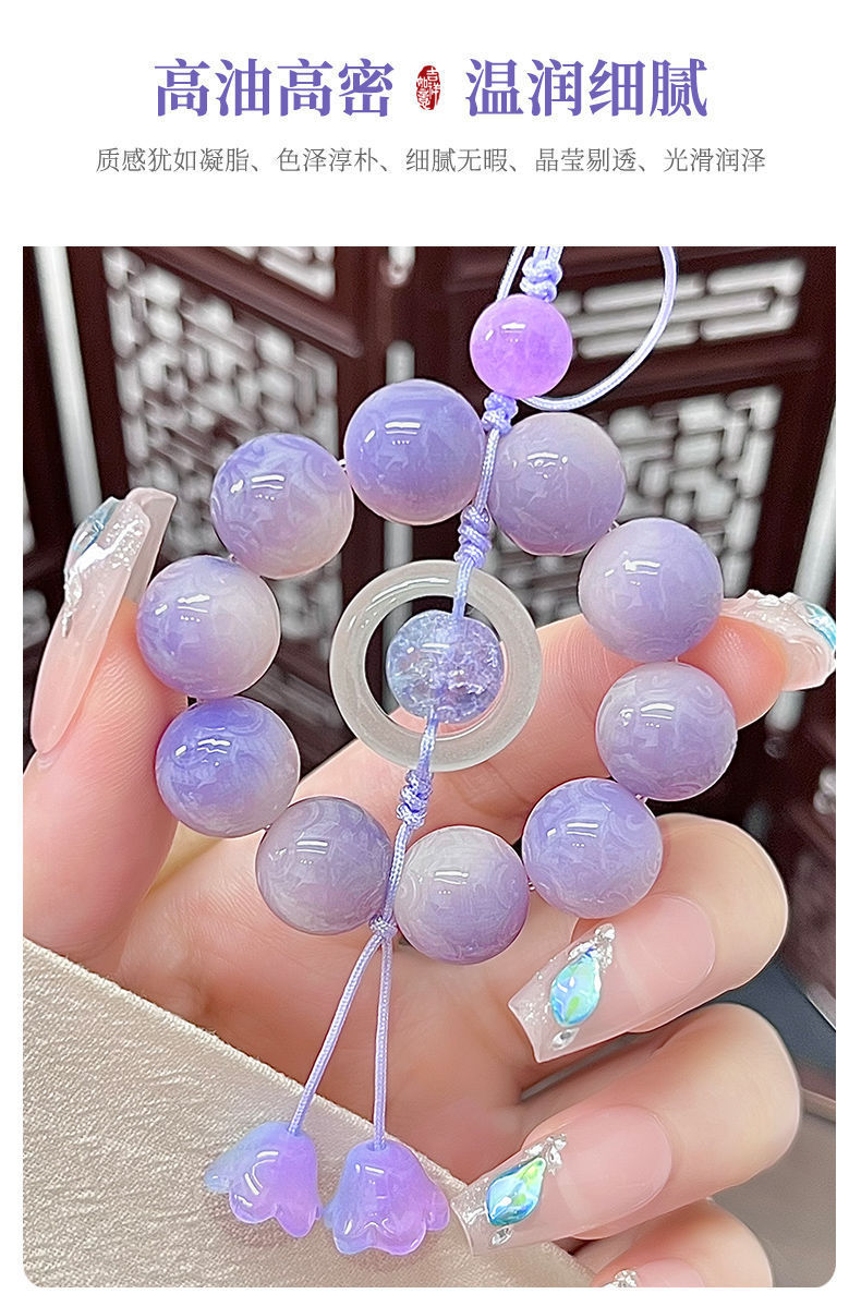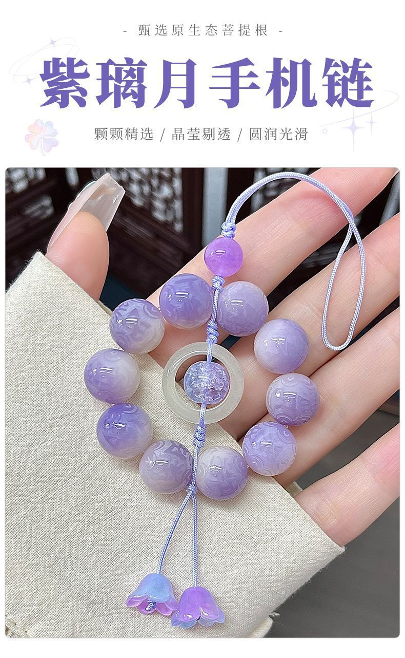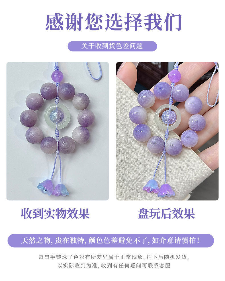 抖音爆款紫飘花菩提手机链女雕刻六字箴言手捻U盘钥匙扣挂件批发