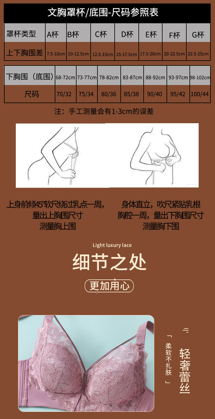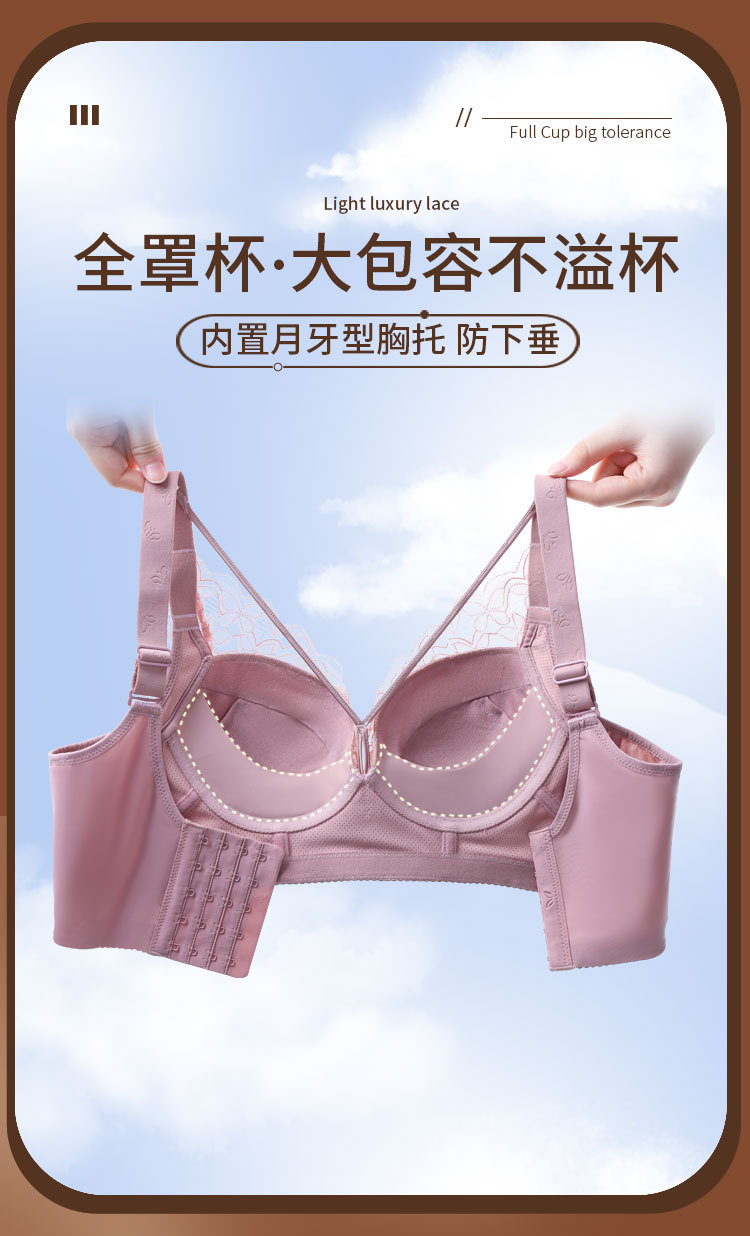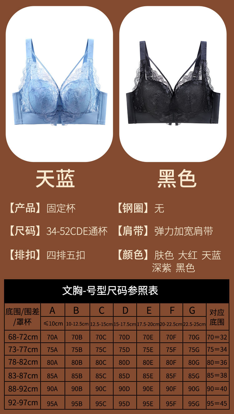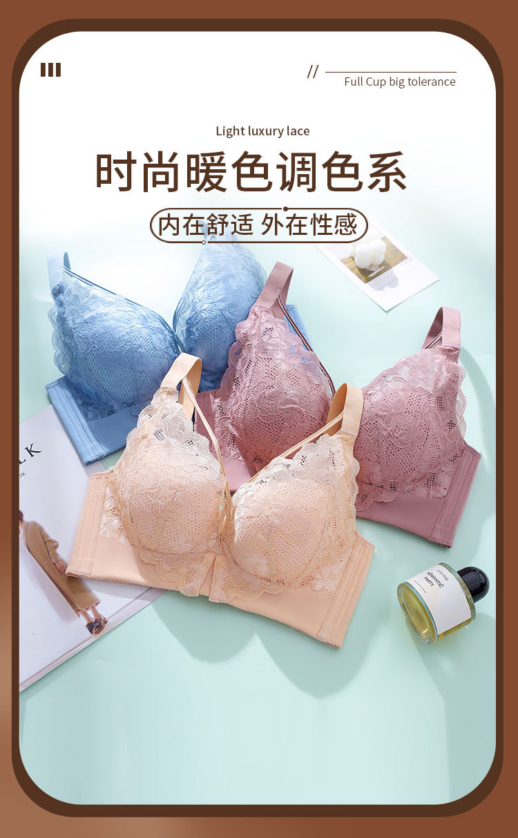大码薄款全罩杯内衣女无钢圈聚拢调整型胸罩性感蕾丝收副乳罩批发