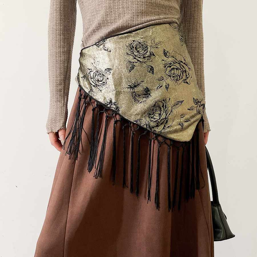 秋冬复古丝巾缠绕波点流苏腰链配饰波西米亚腰带时尚气质服饰配件