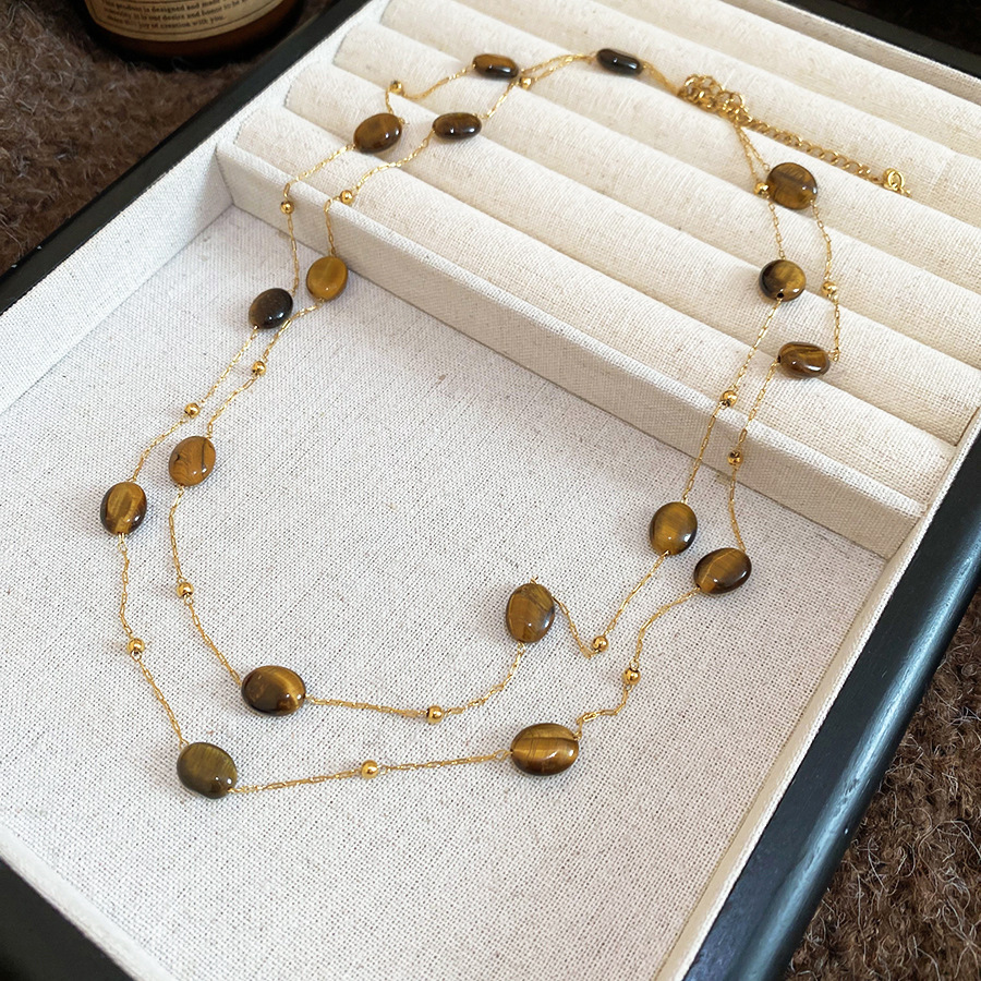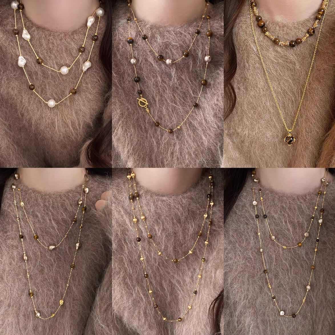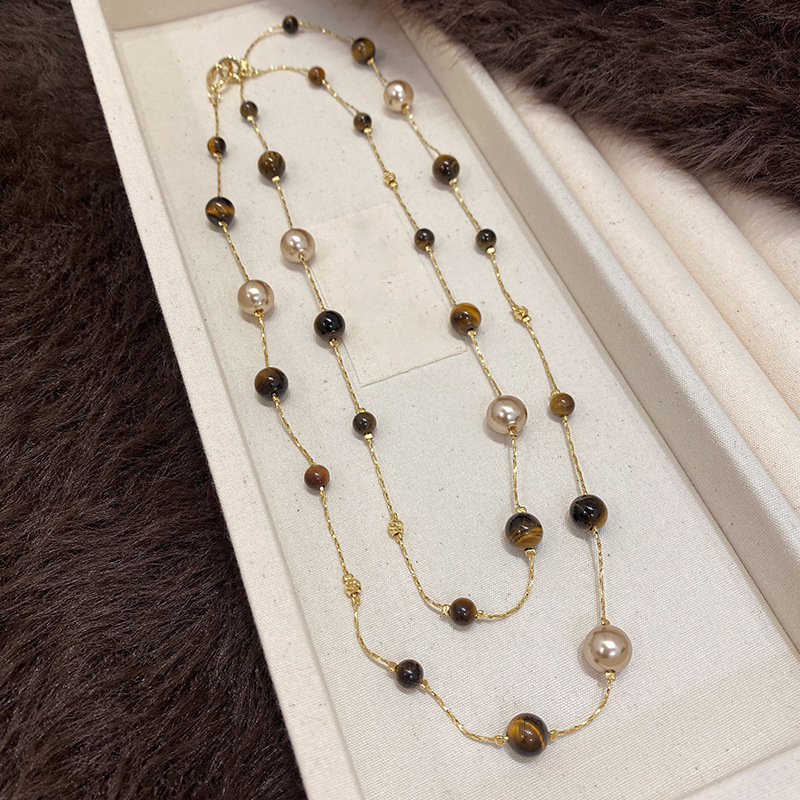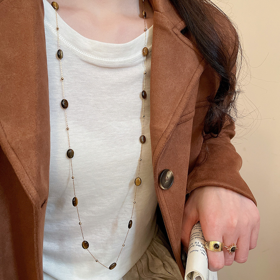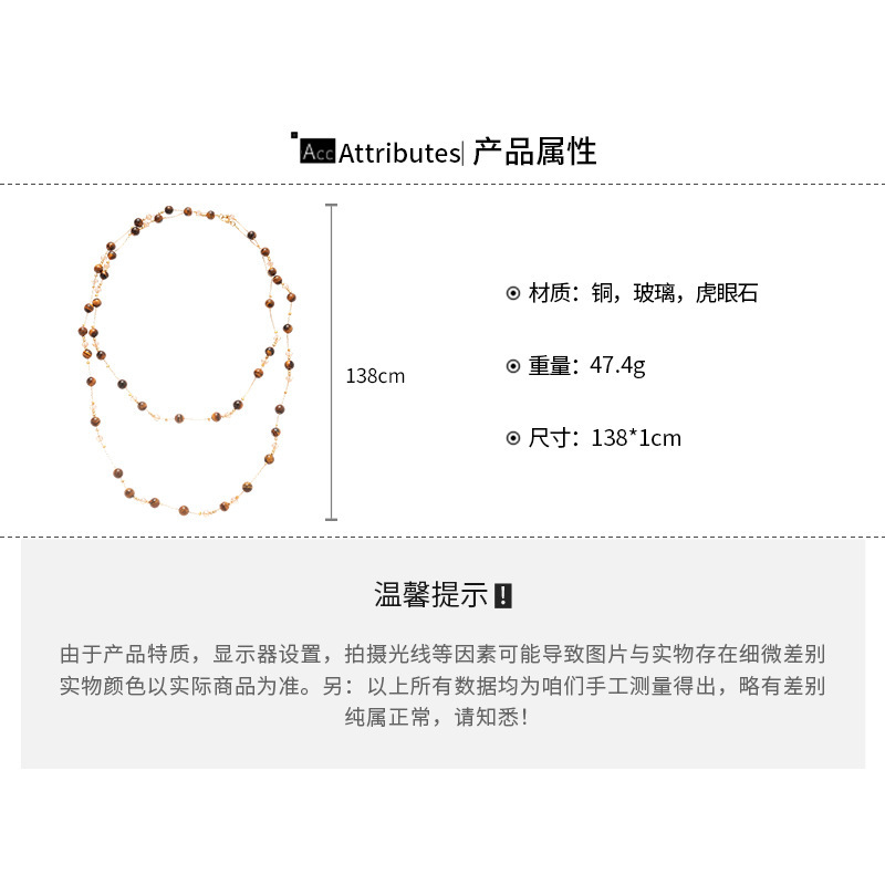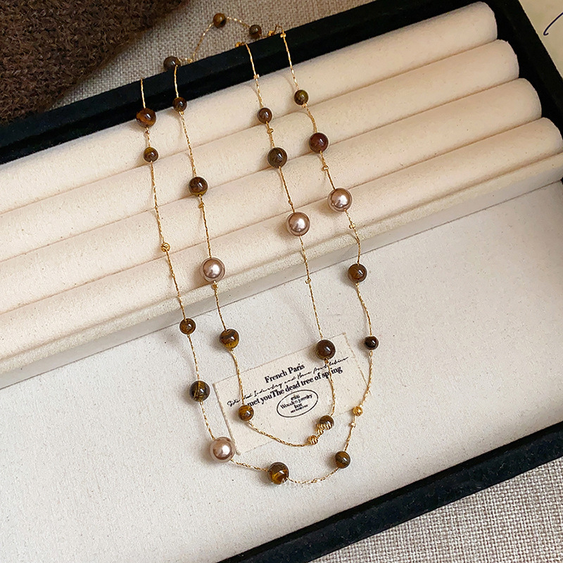 美拉德咖色虎眼石串珠叠戴长项链配饰女复古毛衣链轻奢高级感项饰