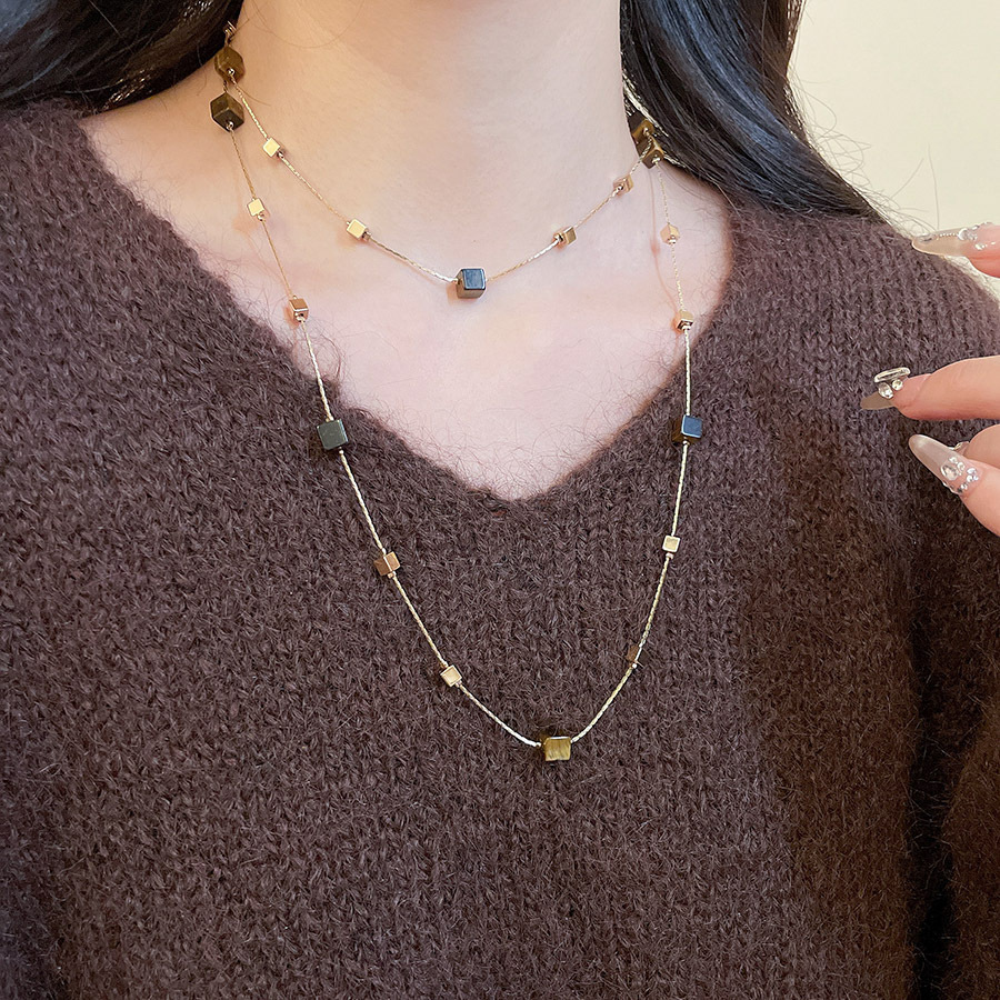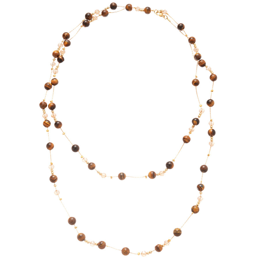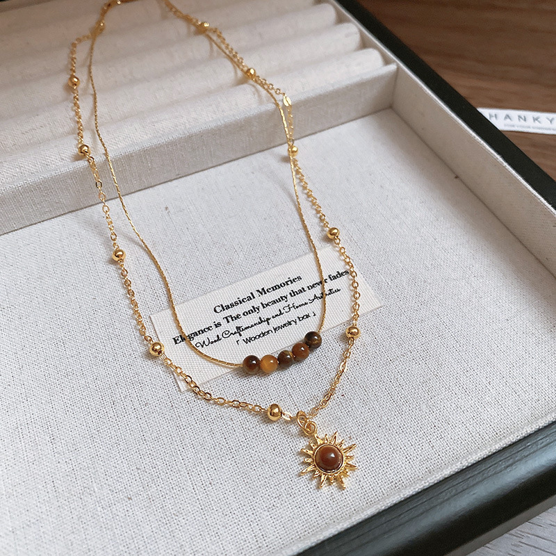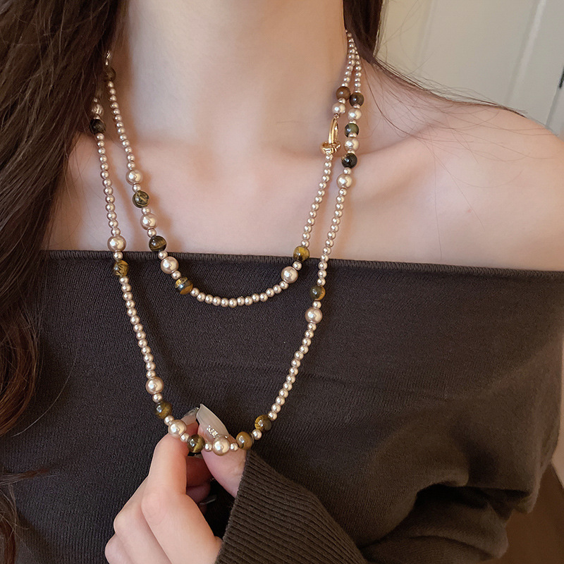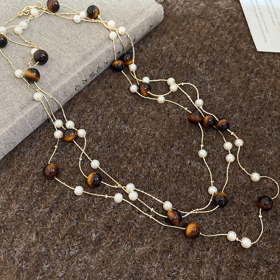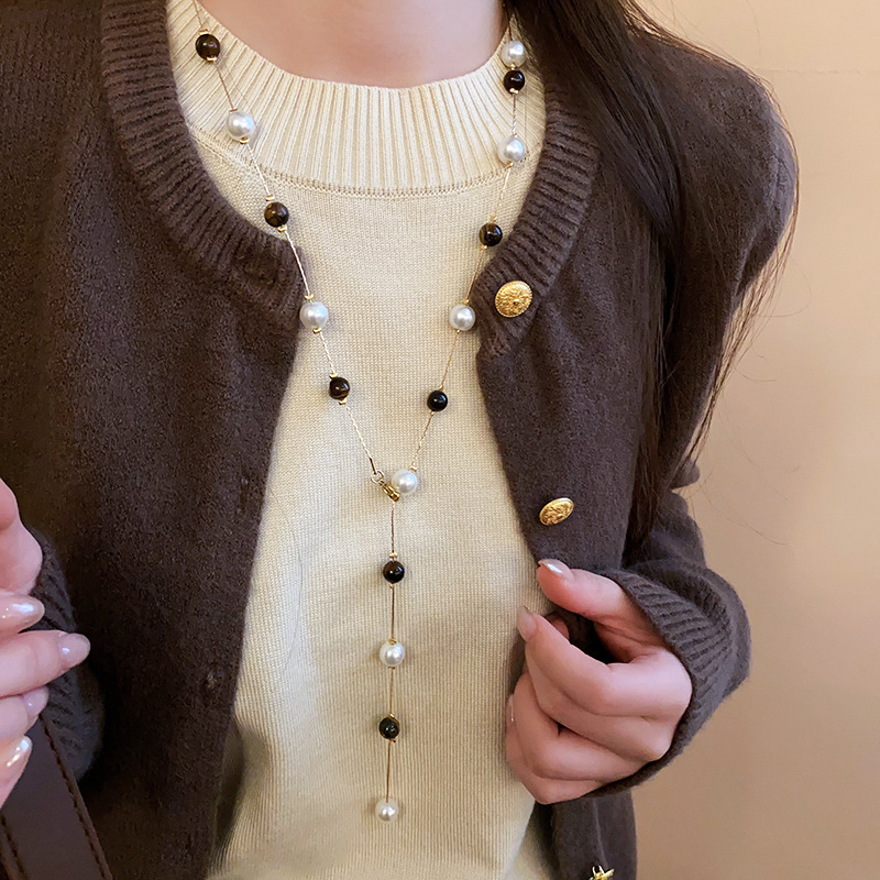 美拉德咖色虎眼石串珠叠戴长项链配饰女复古毛衣链轻奢高级感项饰