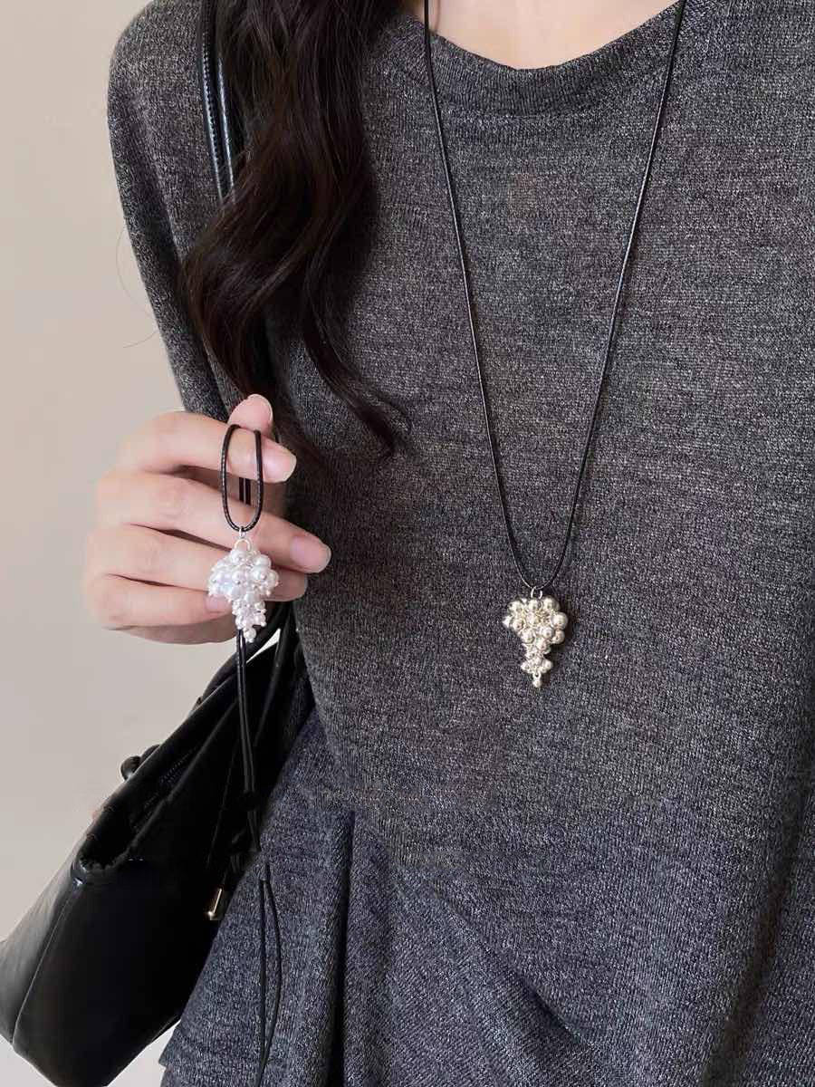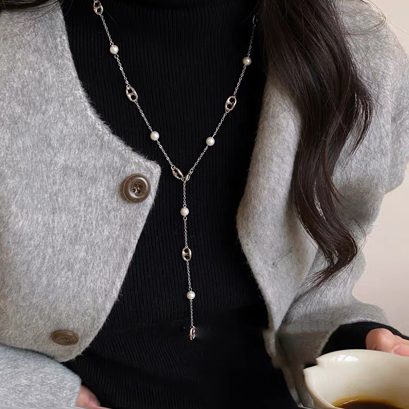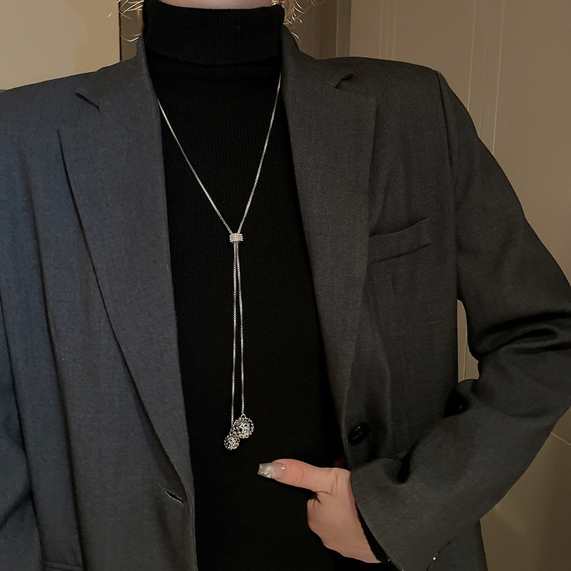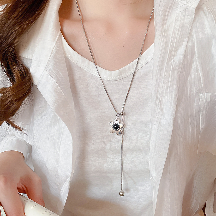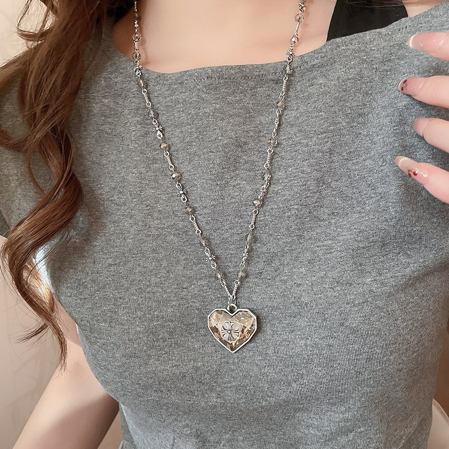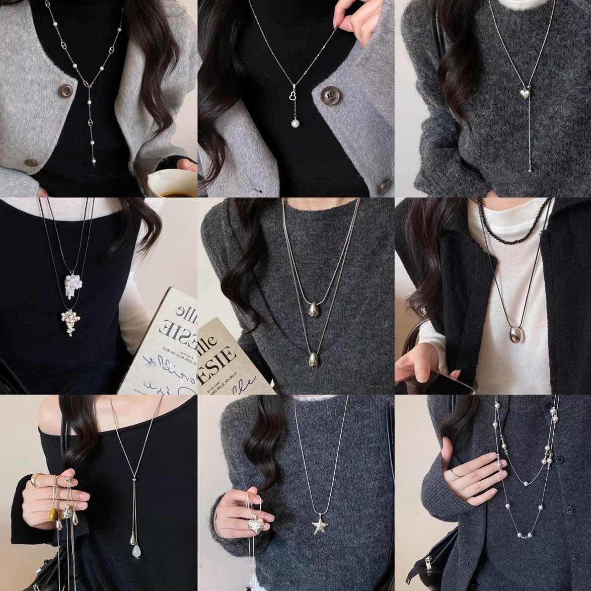 韩系冷淡风几何爱心花朵吊坠项链轻奢高级感毛衣链时尚简约项饰女