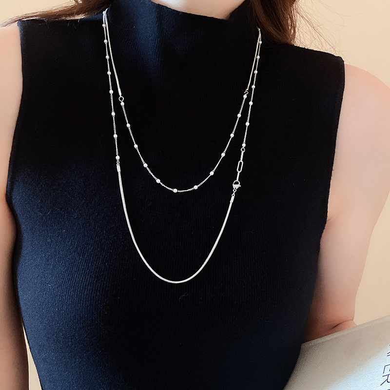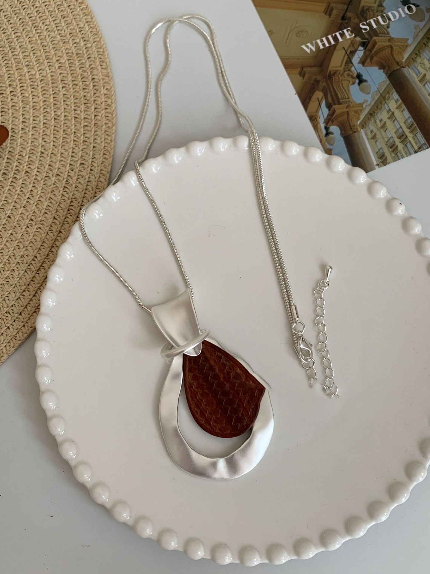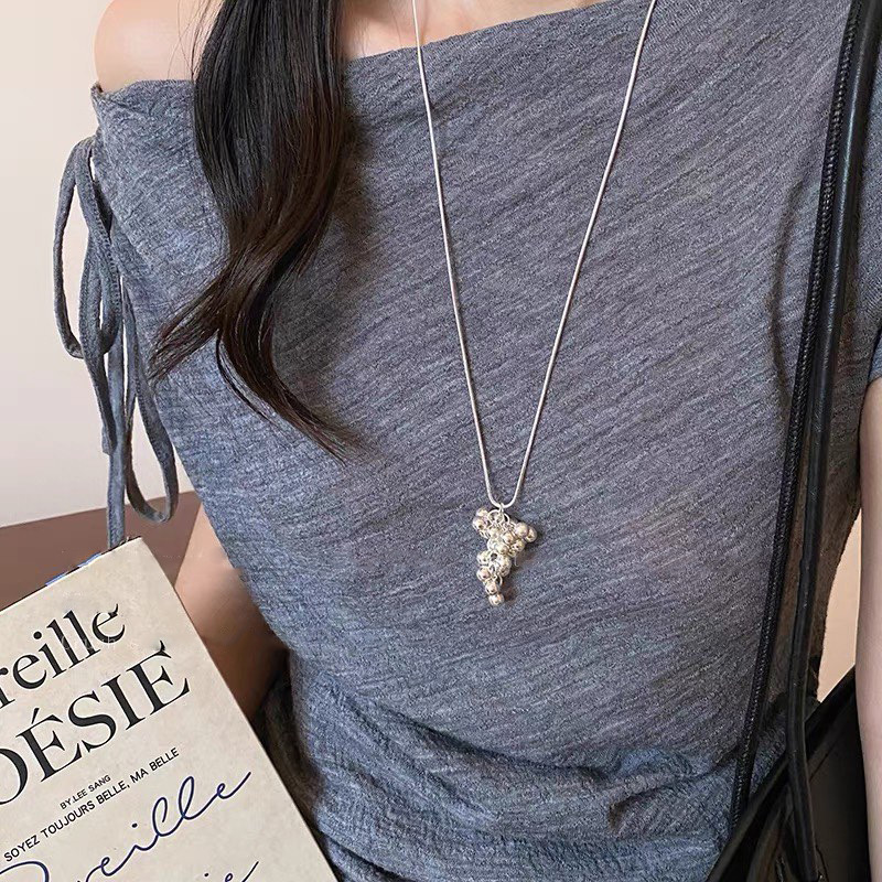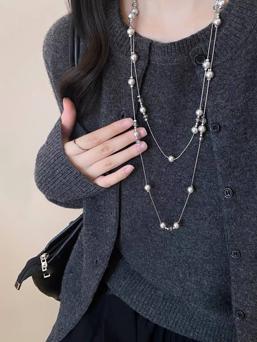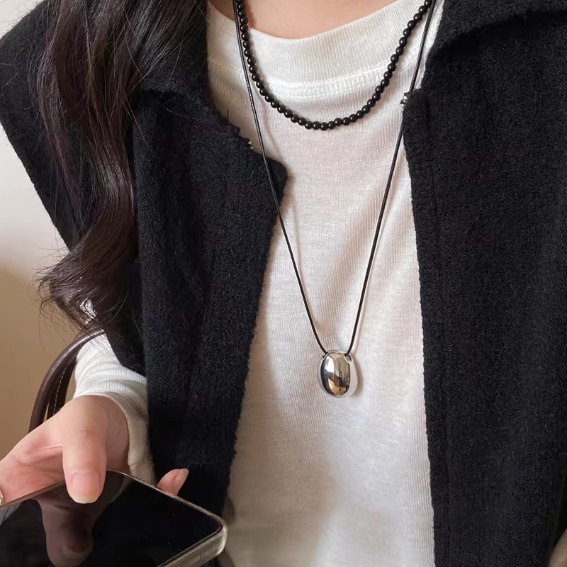 韩系冷淡风几何爱心花朵吊坠项链轻奢高级感毛衣链时尚简约项饰女