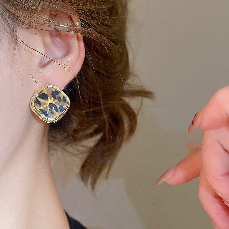 法式复古秋冬几何豹纹耳环轻奢高级感耳钉时尚个性耳饰设计感小众