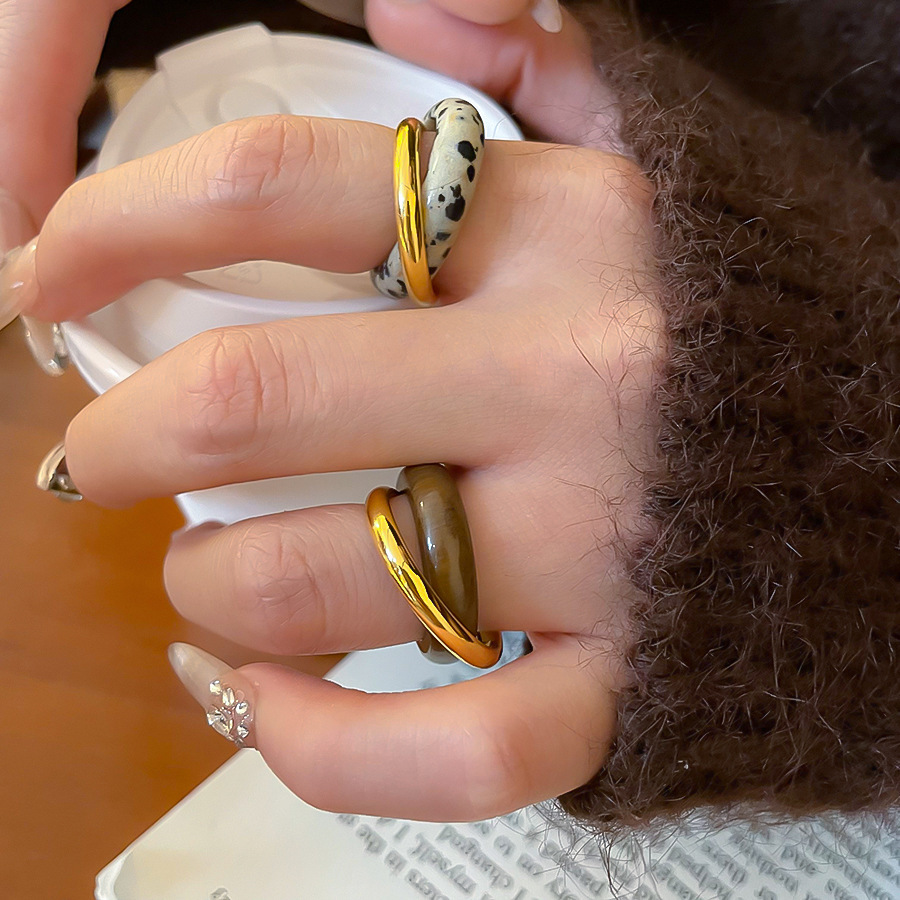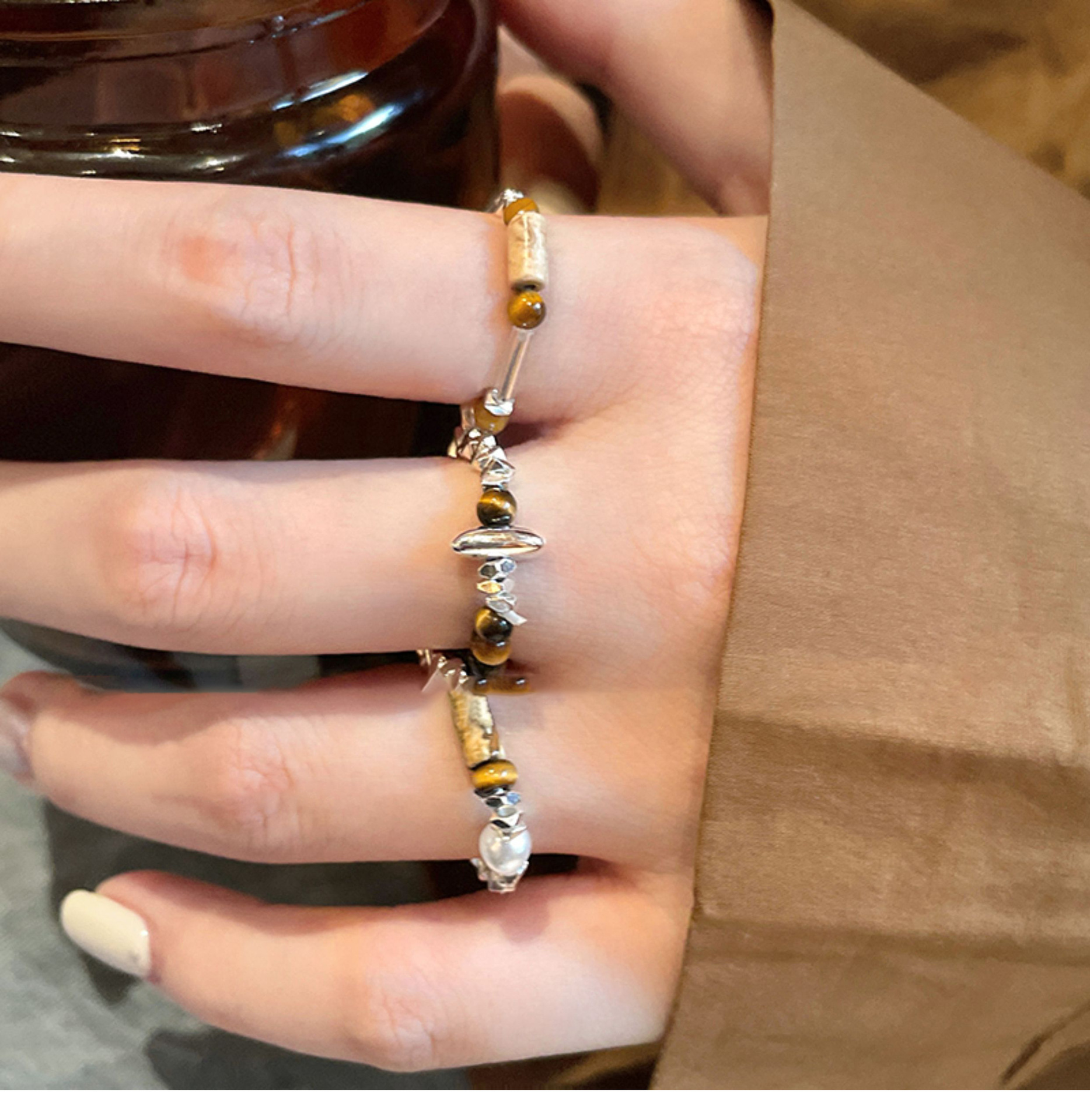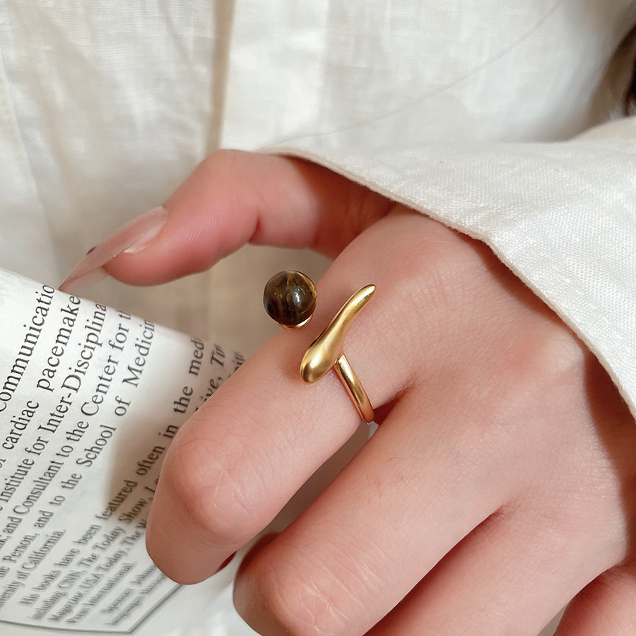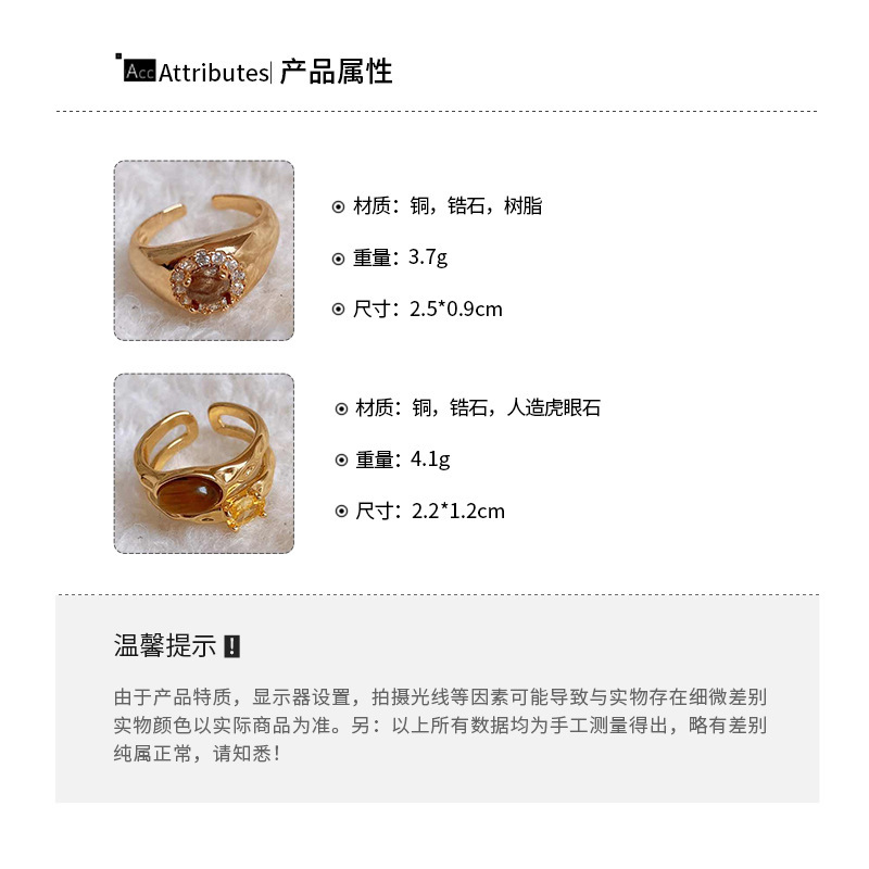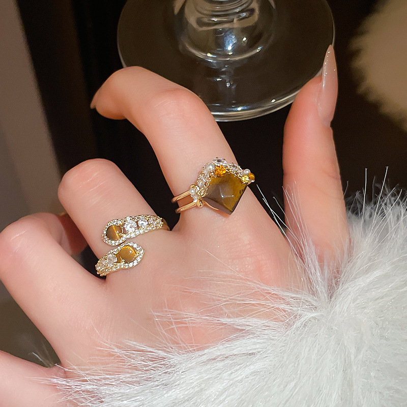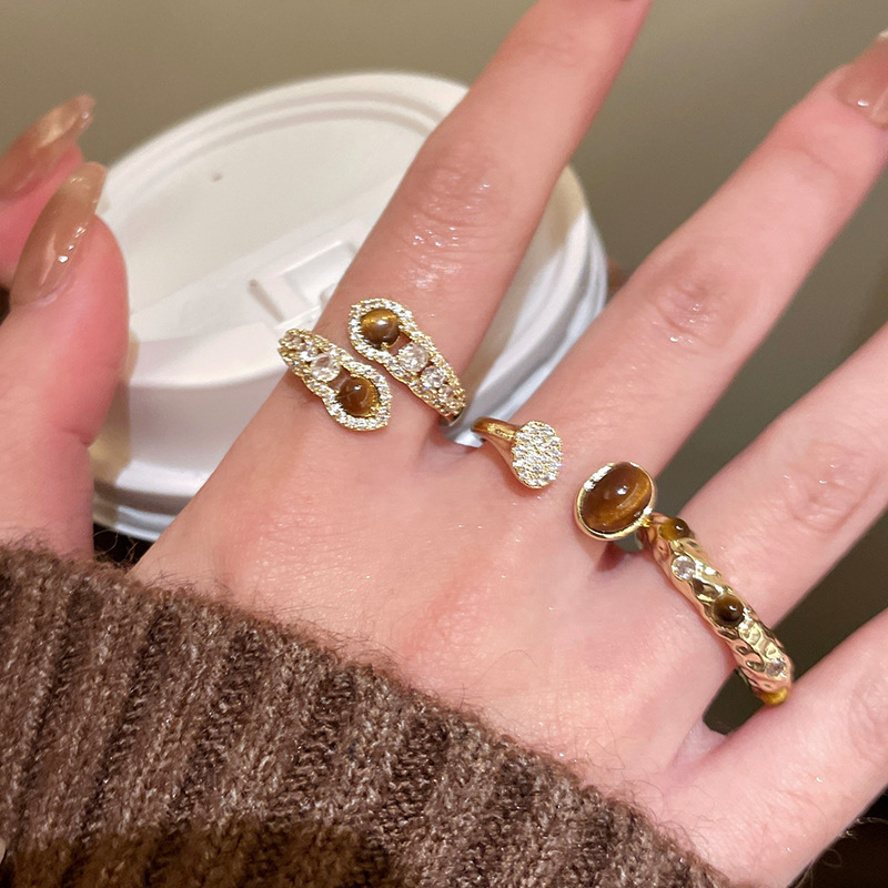 美拉德复古几何花朵虎眼石开口戒指小众简约食指戒轻奢高级感手饰