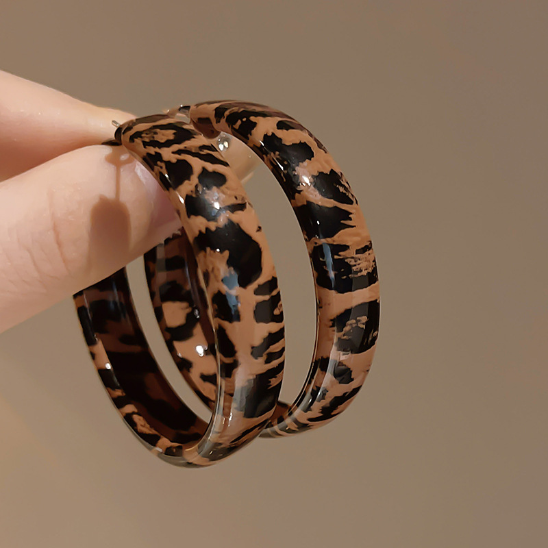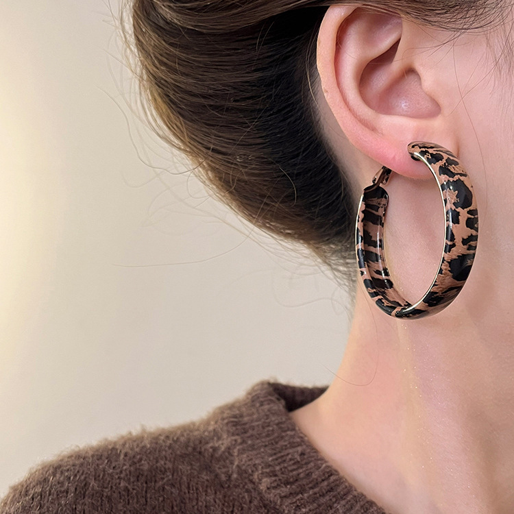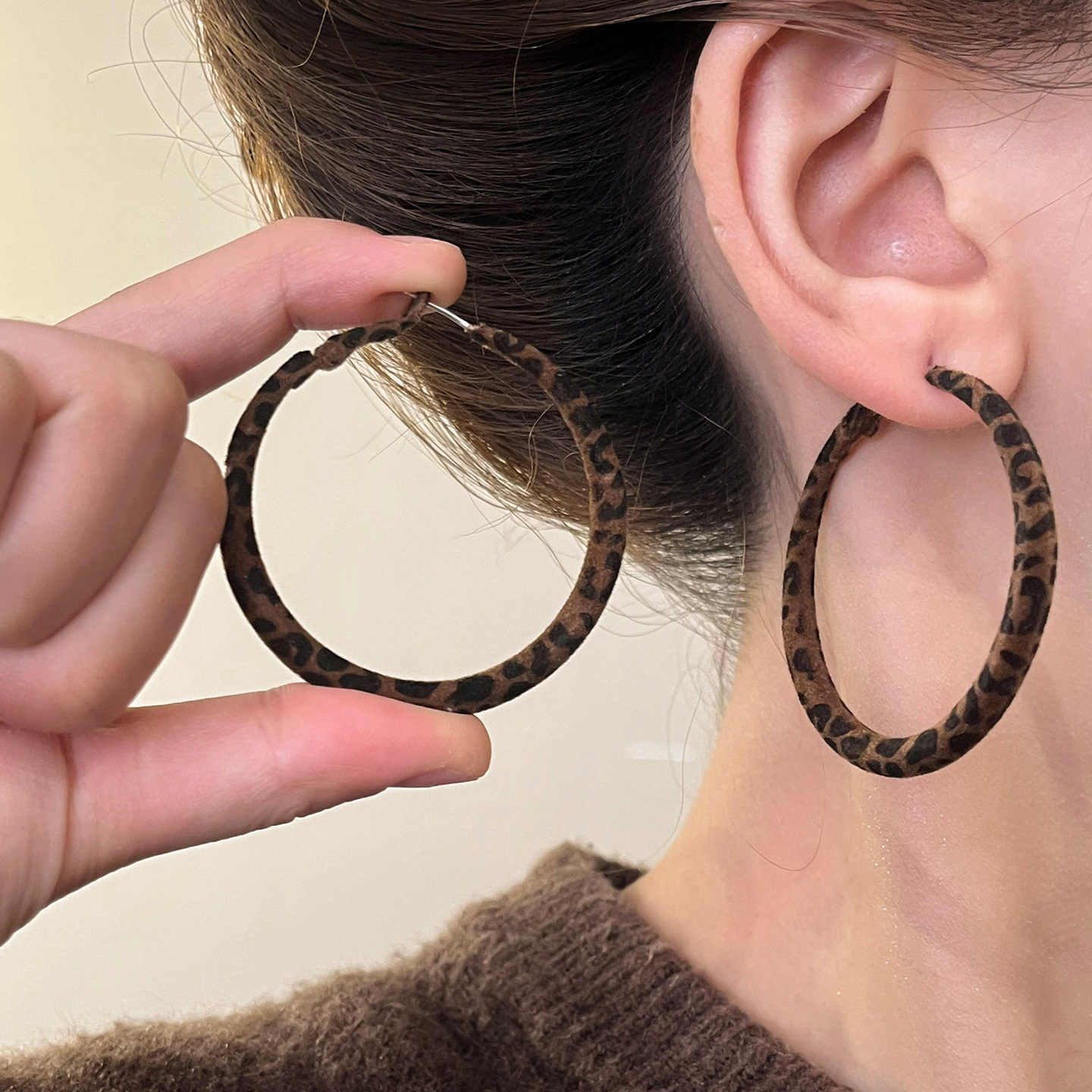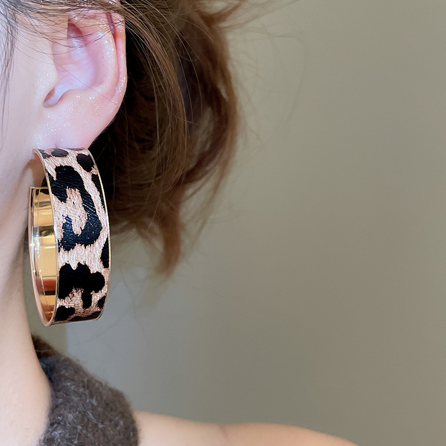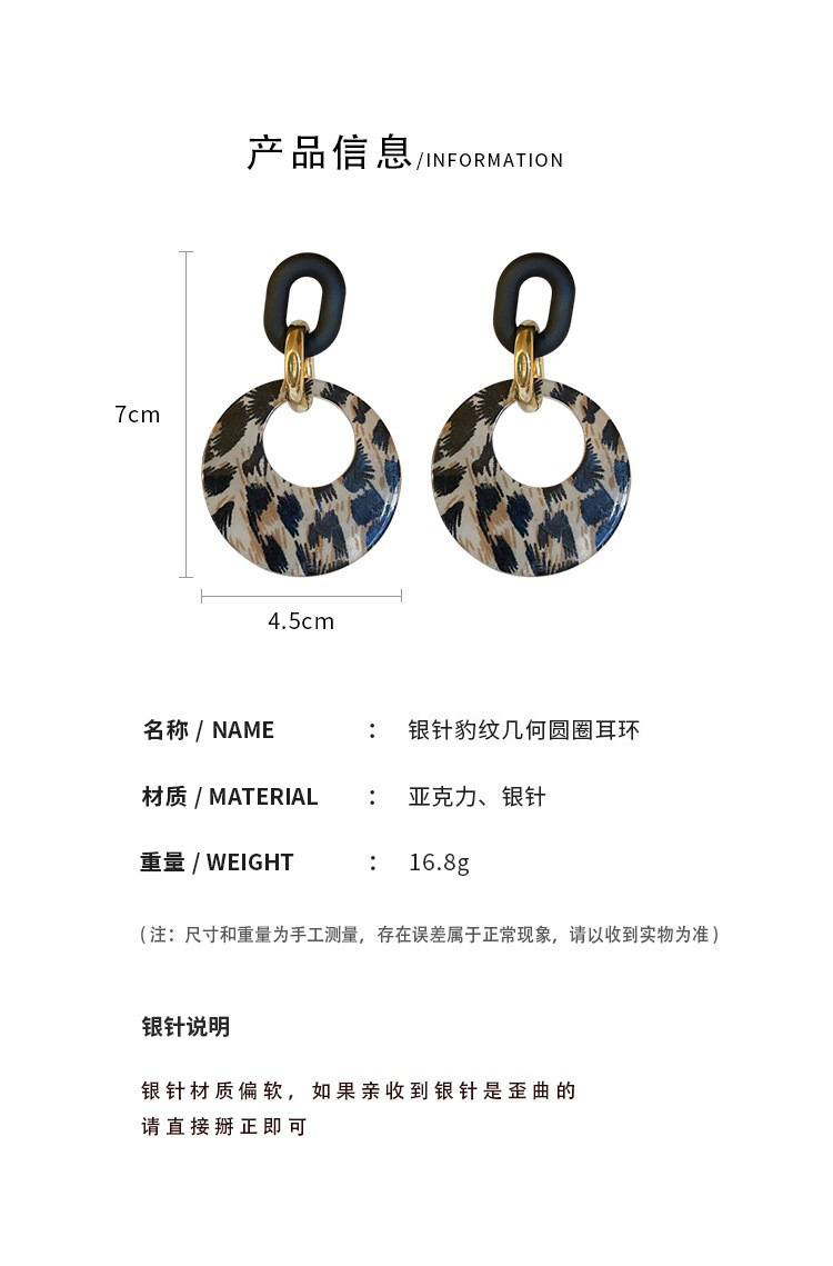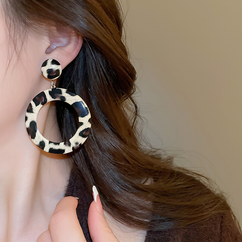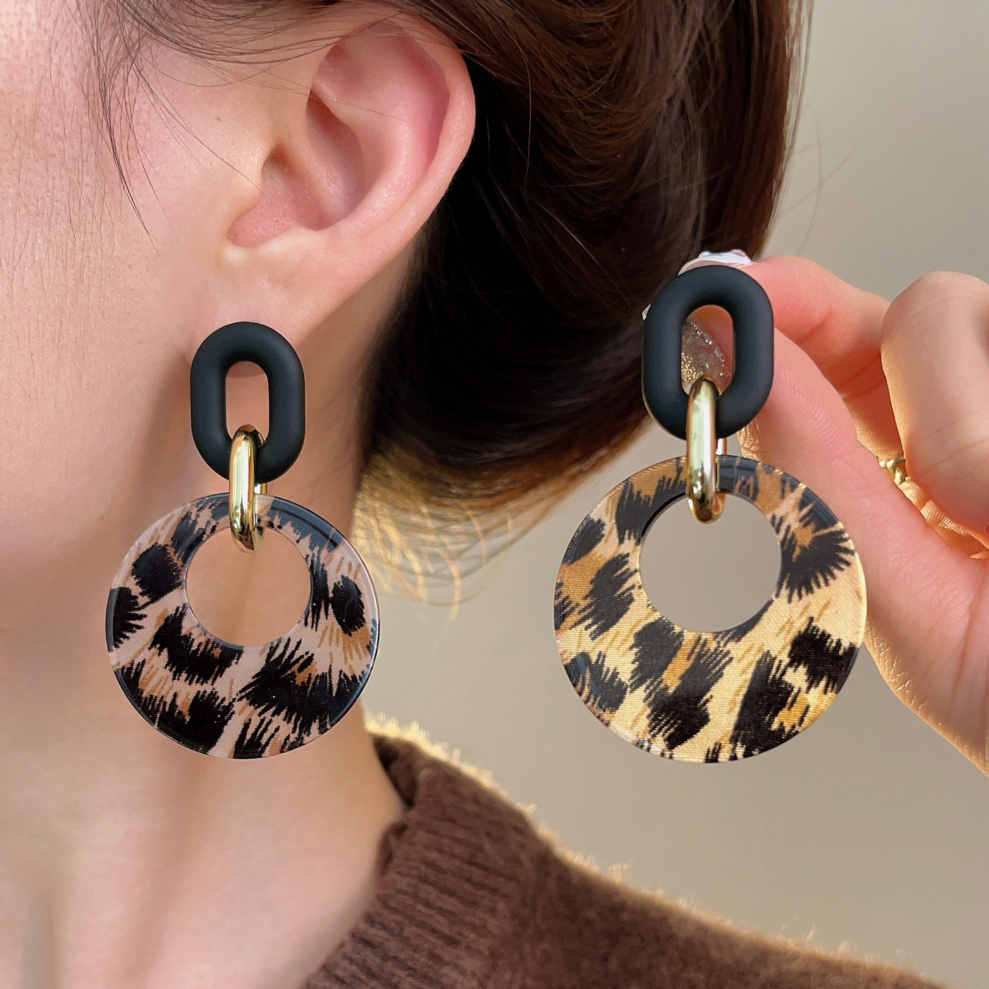 欧美跨境复古几何圆圈豹纹耳环轻奢高级感耳钉时尚夸张个性耳饰女