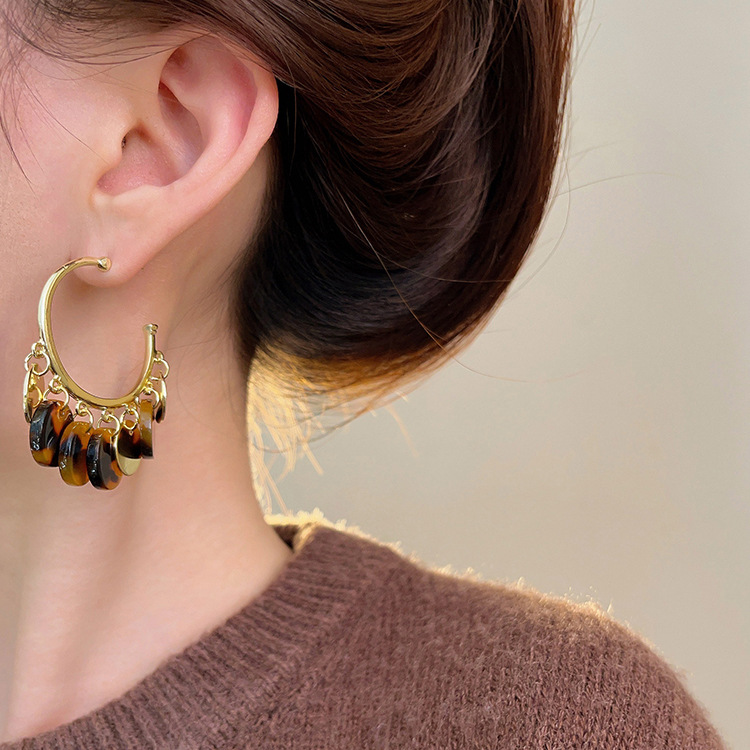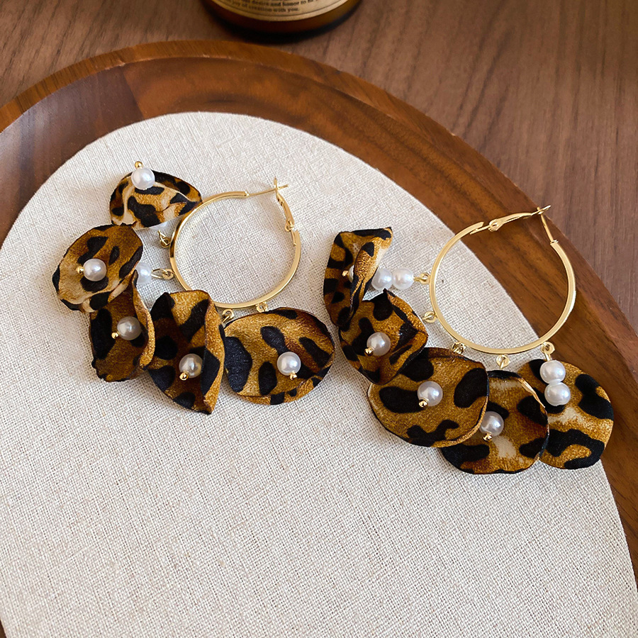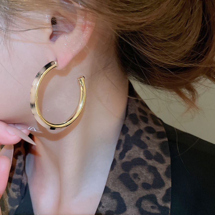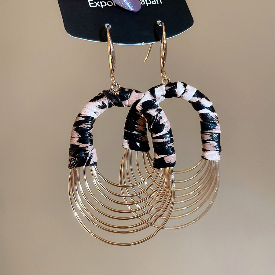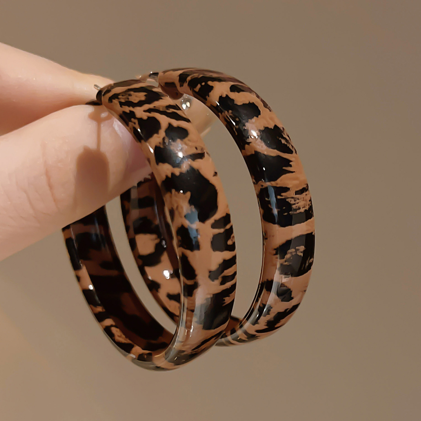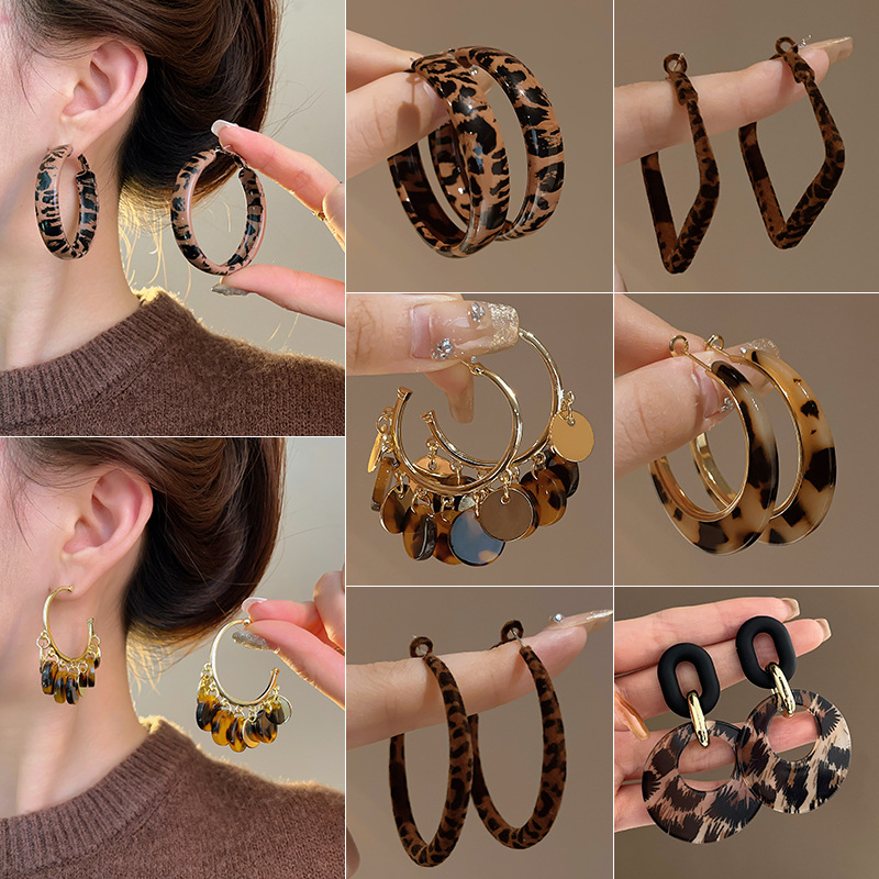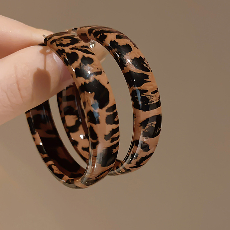 欧美跨境复古几何圆圈豹纹耳环轻奢高级感耳钉时尚夸张个性耳饰女