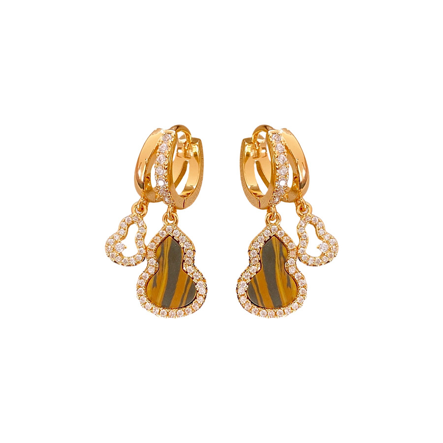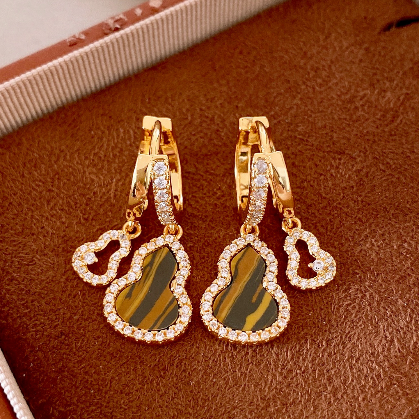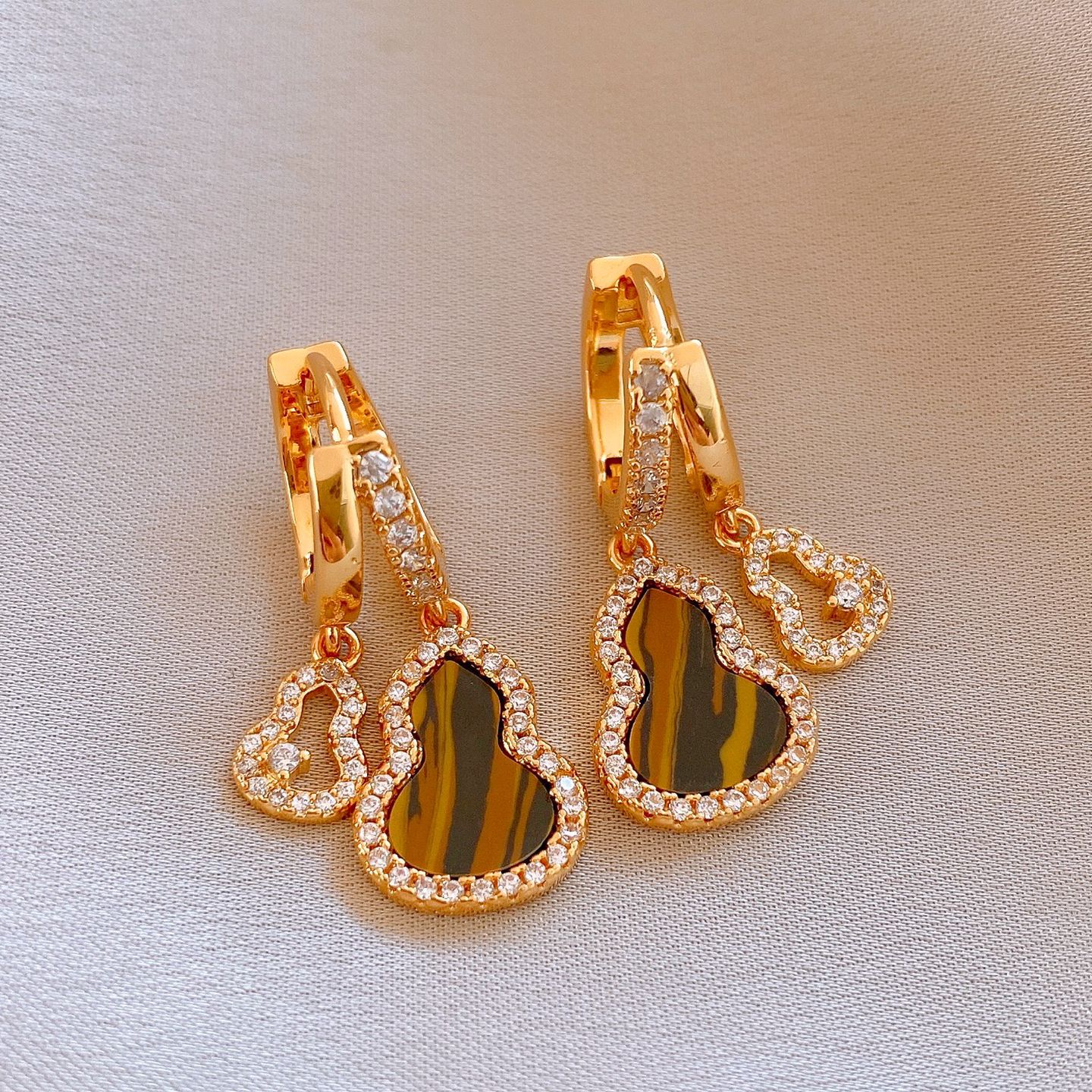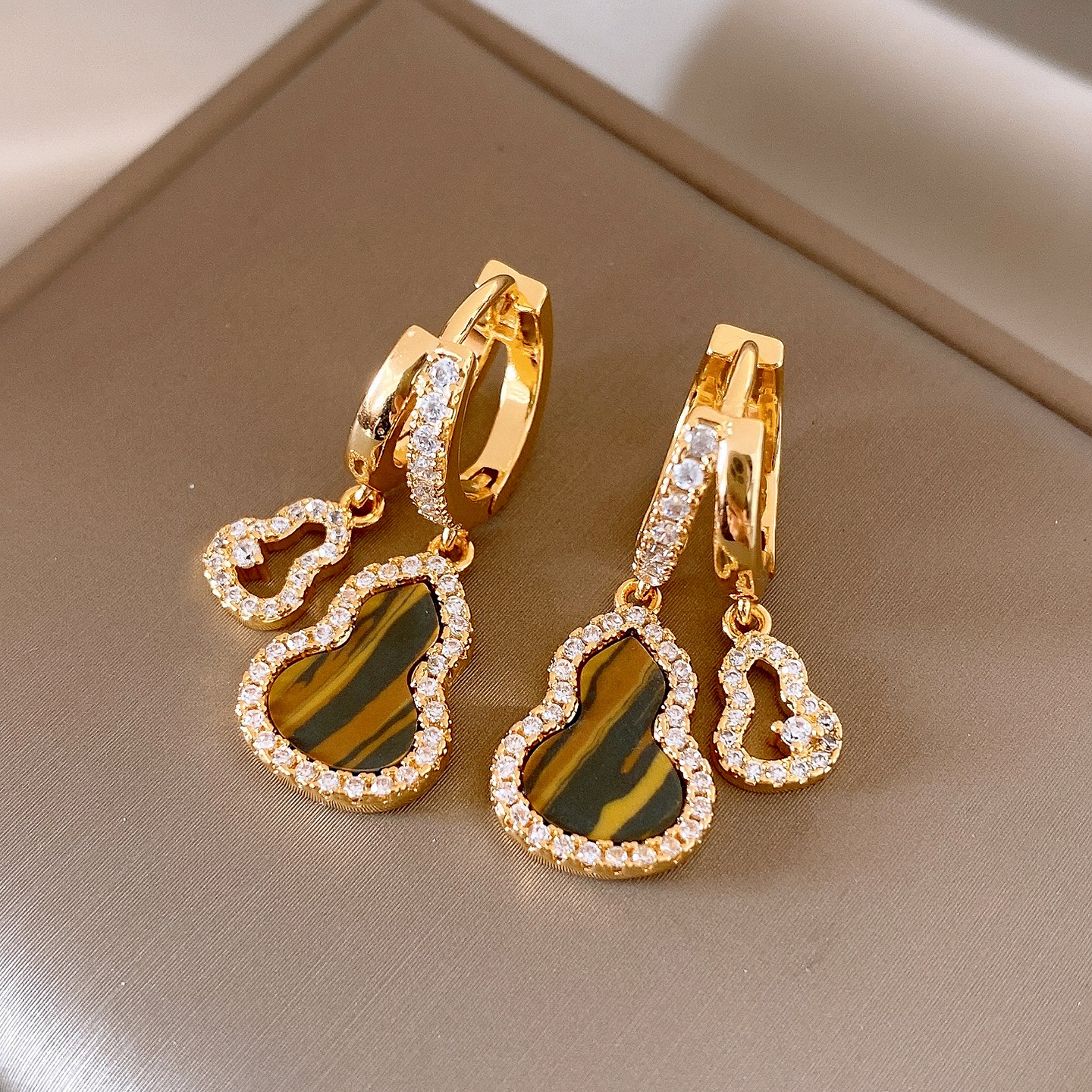 新中式复古锆石几何醋酸板葫芦耳环轻奢高级感耳扣时尚简约耳饰女