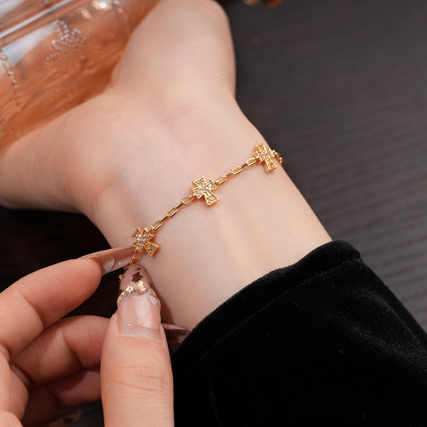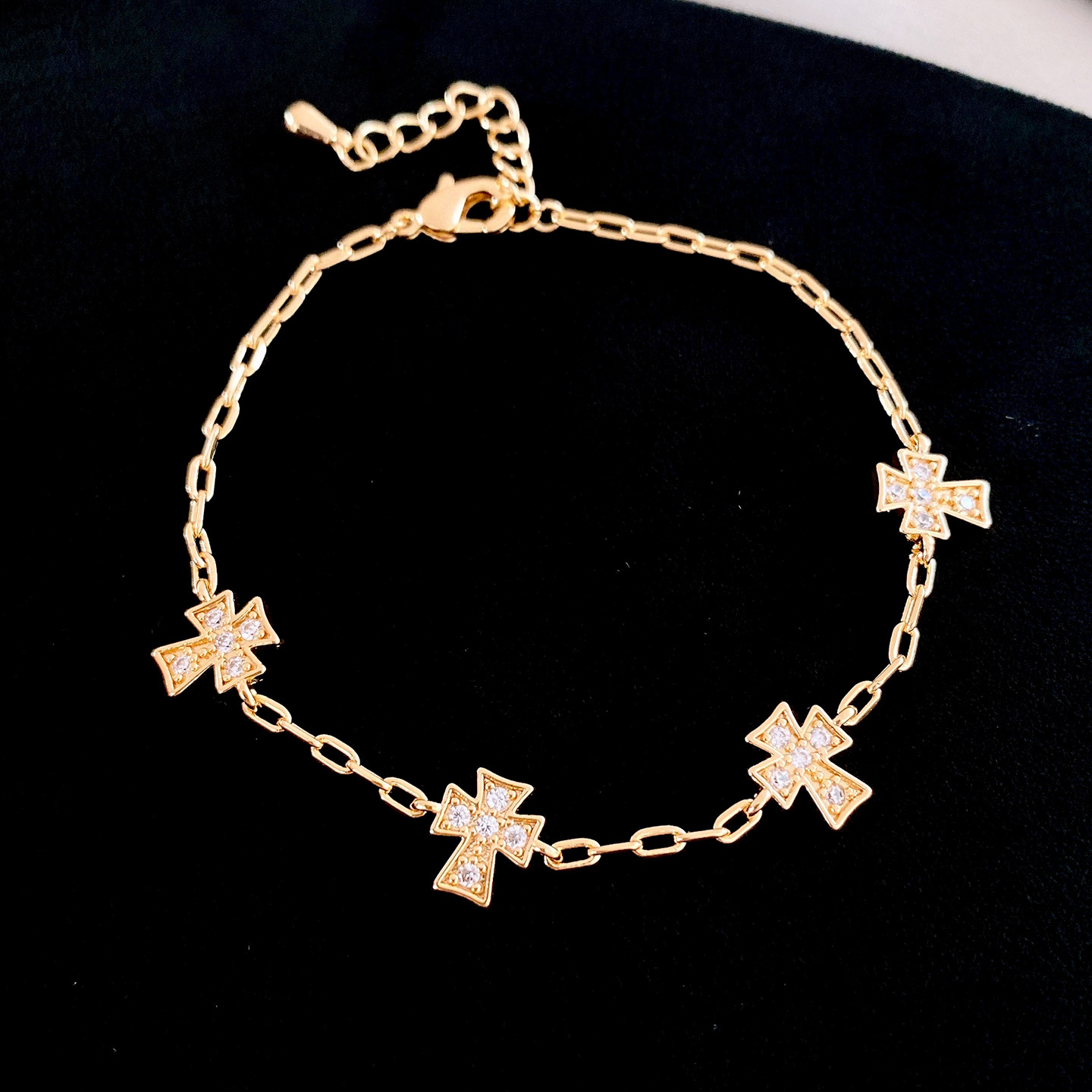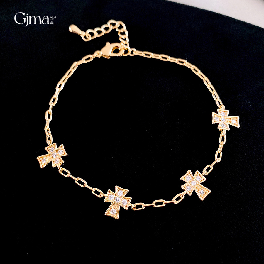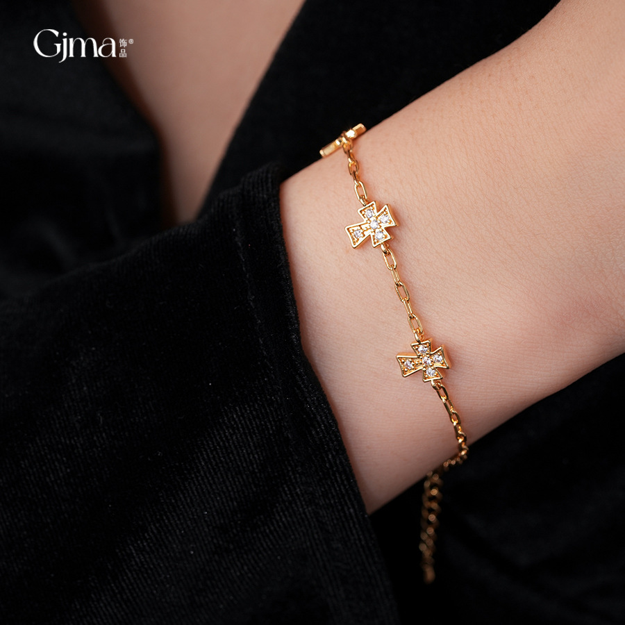 真金电镀法式简约锆石十字架手链轻奢高级感手环时尚精致百搭手饰