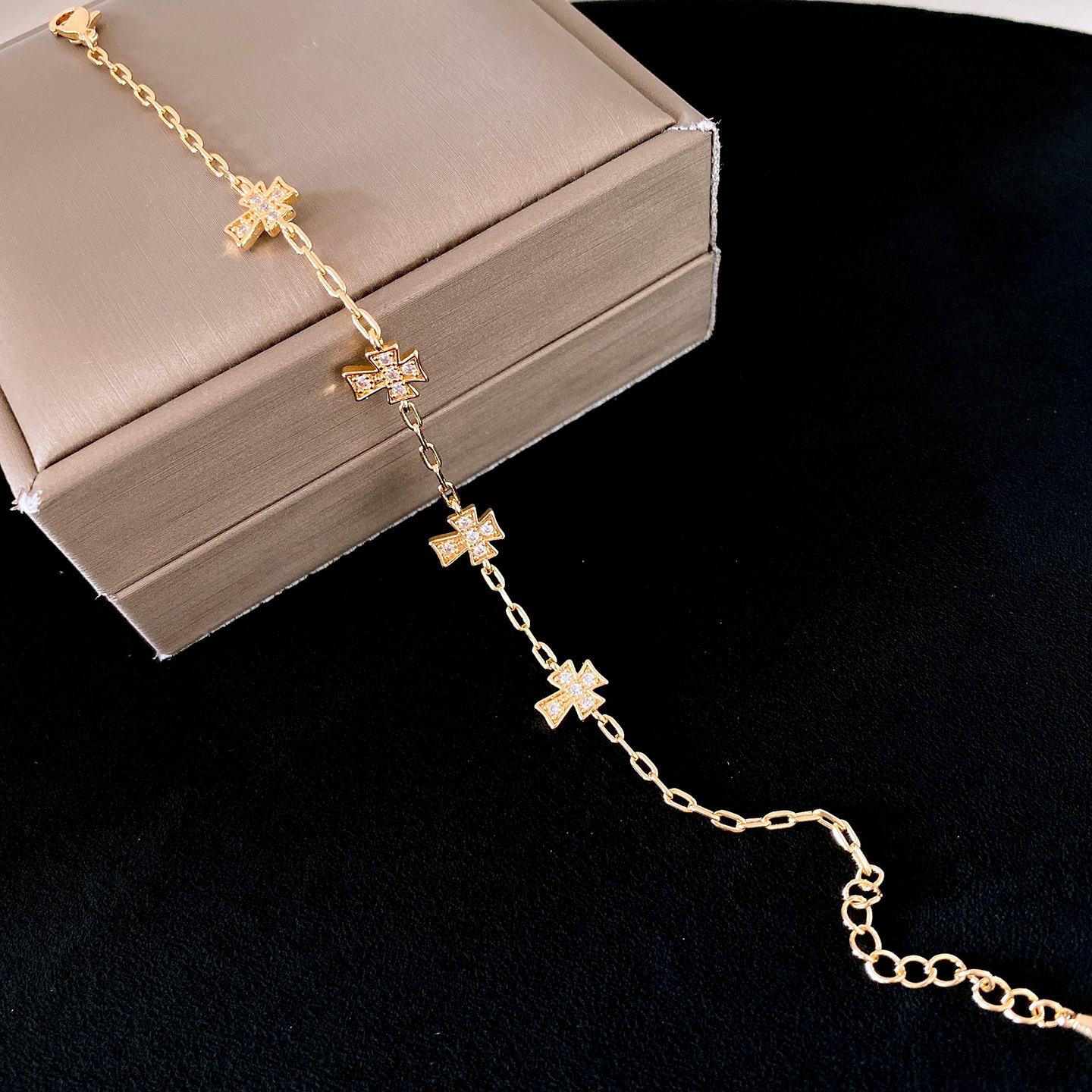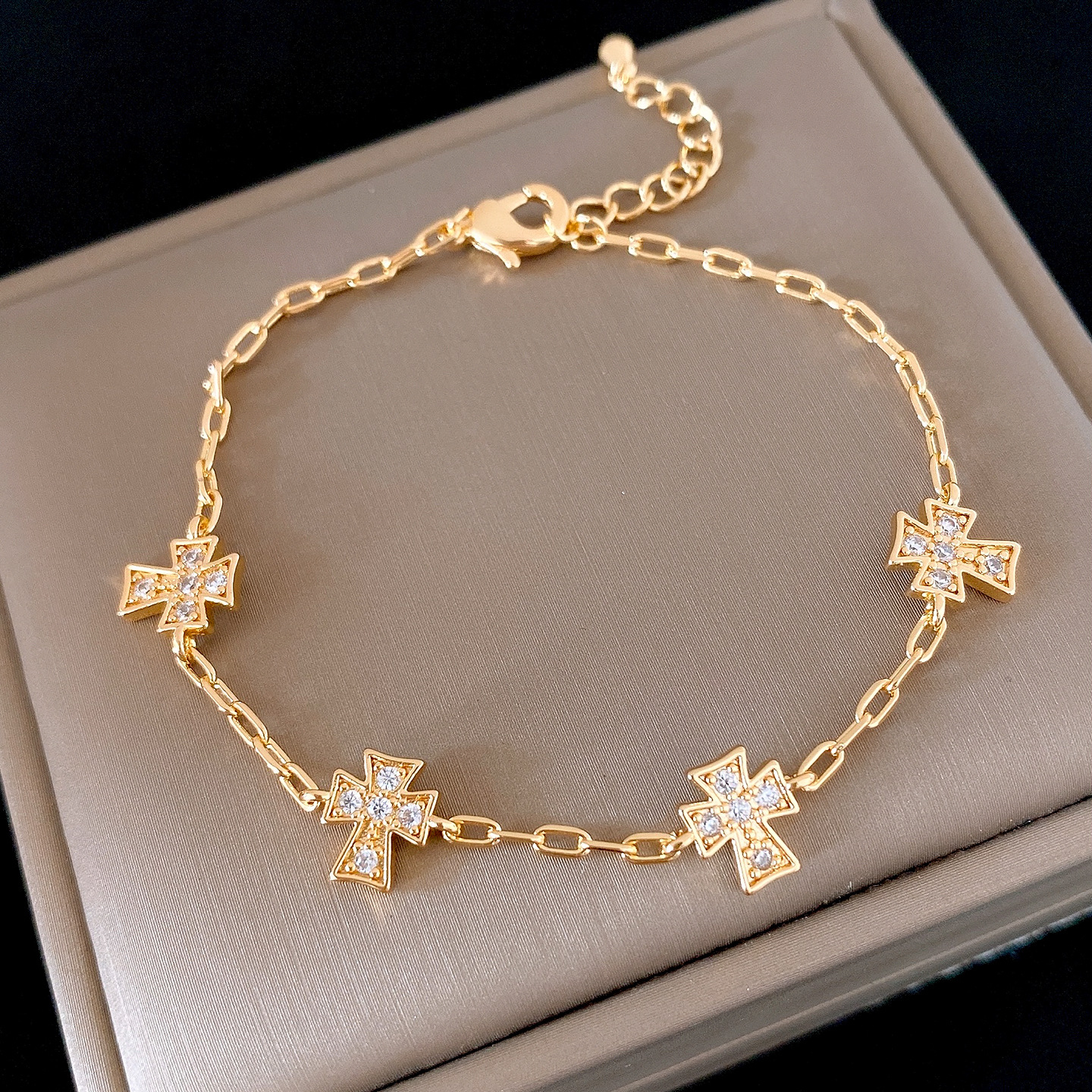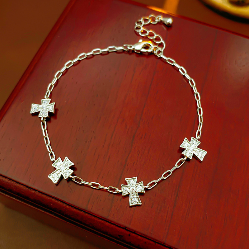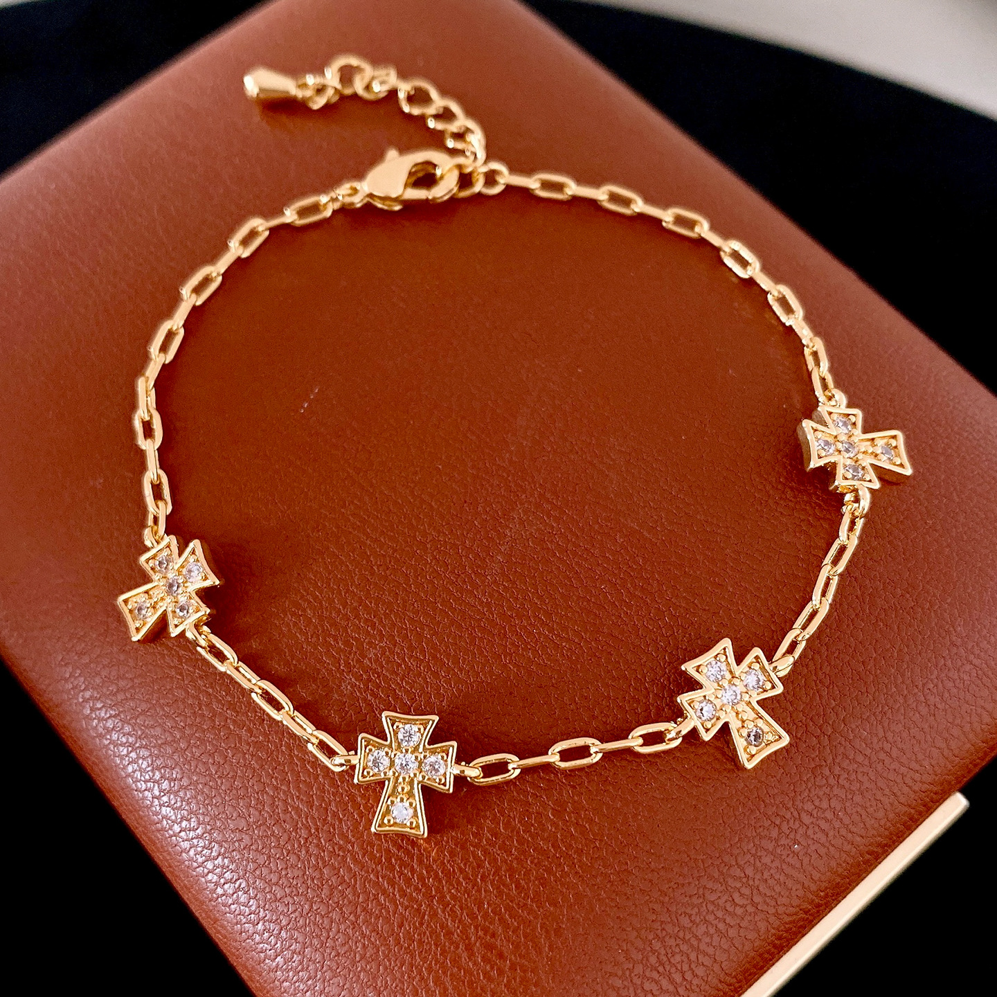 真金电镀法式简约锆石十字架手链轻奢高级感手环时尚精致百搭手饰