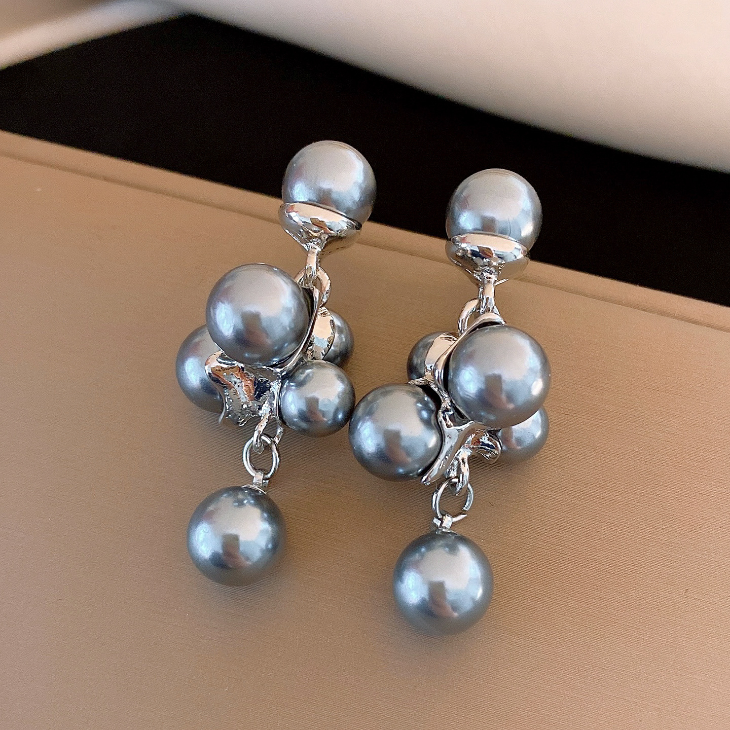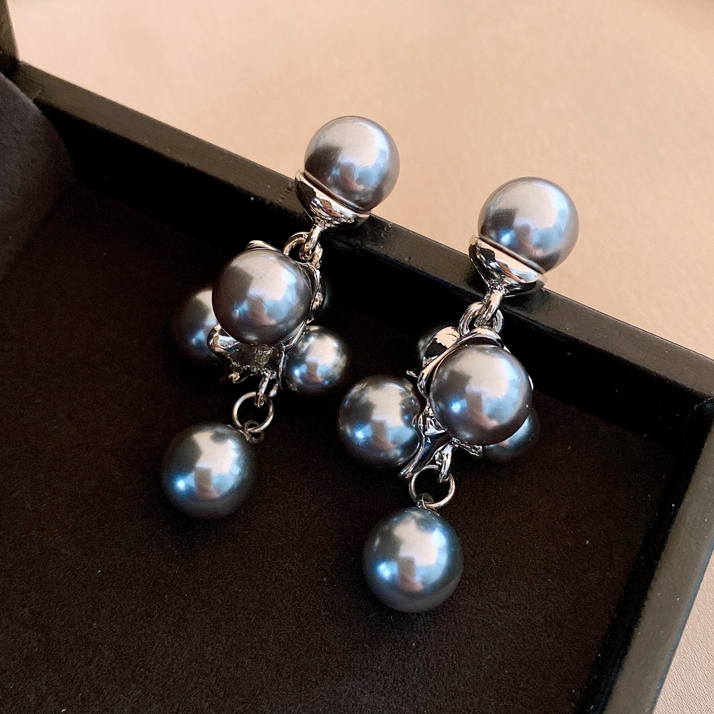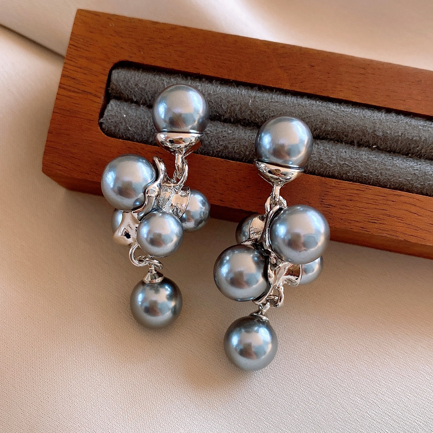 银针法式气质灰色圆形珍珠耳环轻奢高级感耳钉时尚精致个性耳饰女
