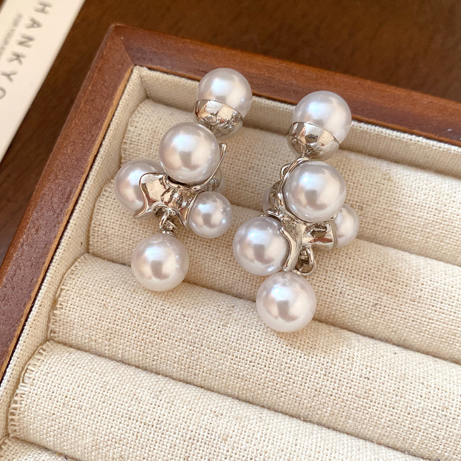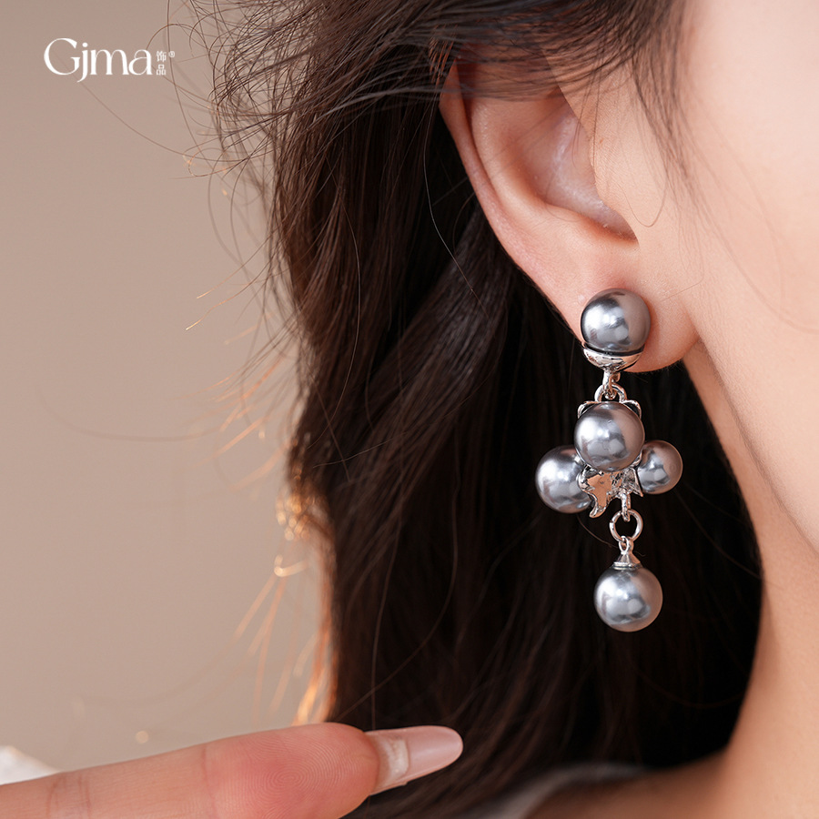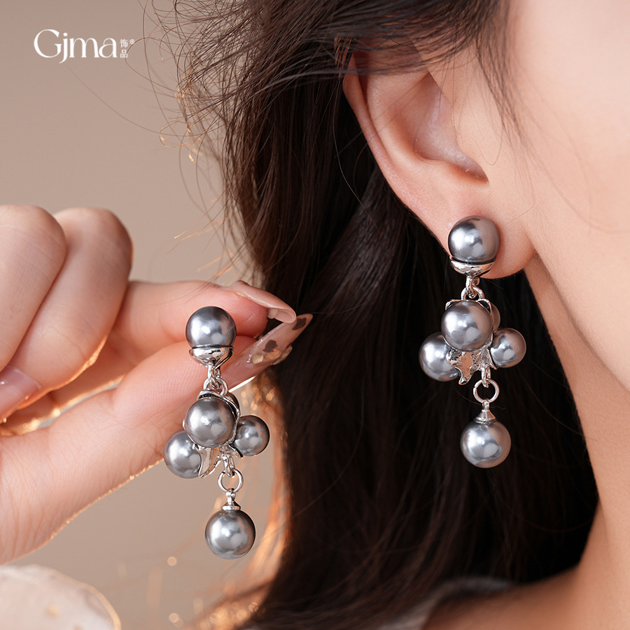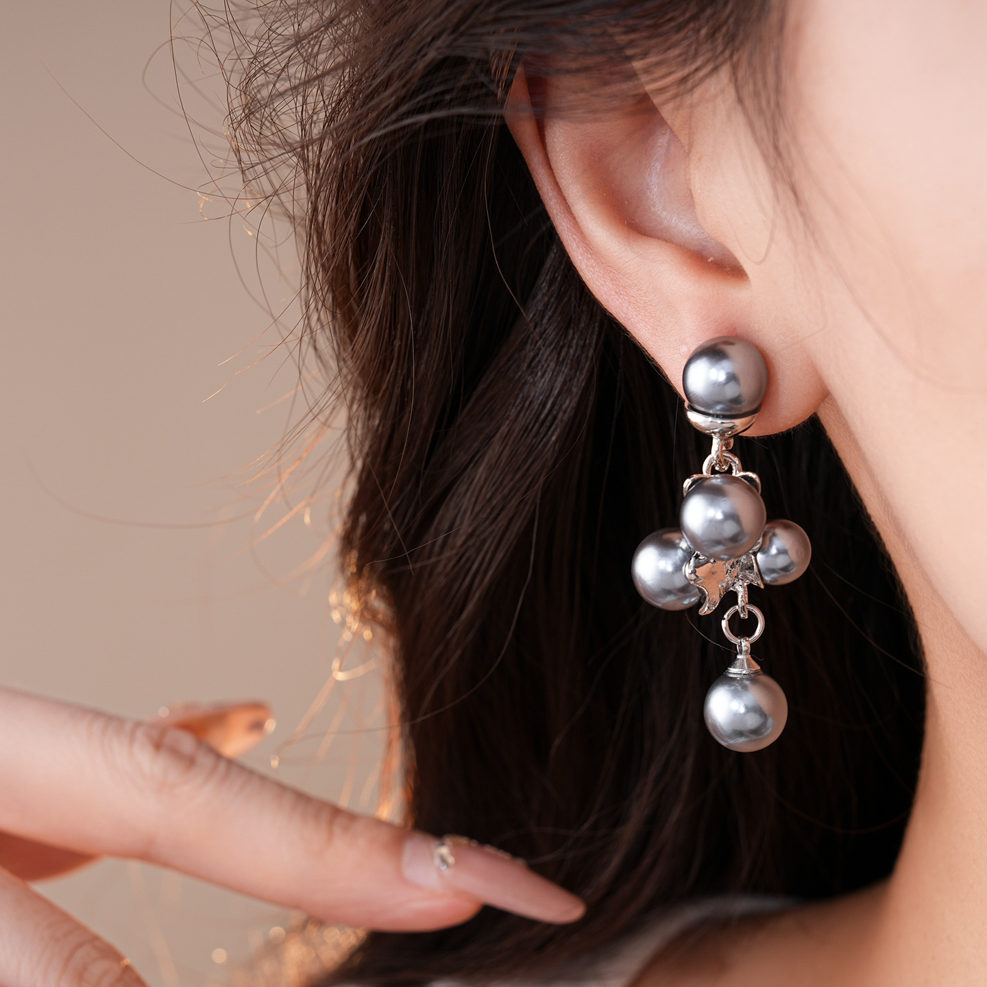 银针法式气质灰色圆形珍珠耳环轻奢高级感耳钉时尚精致个性耳饰女