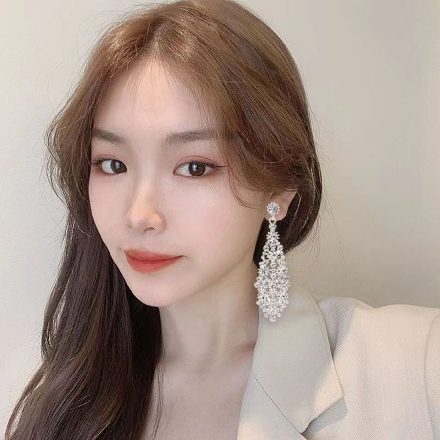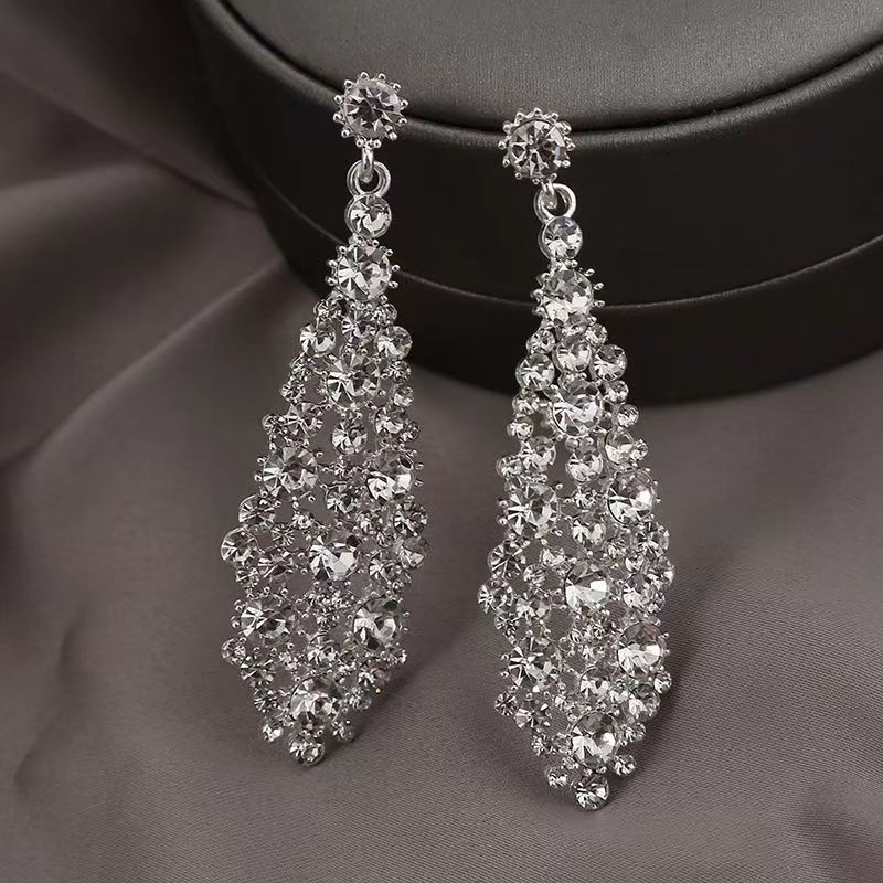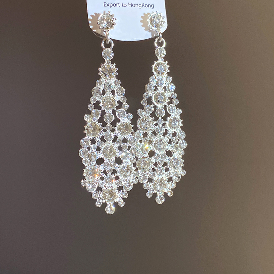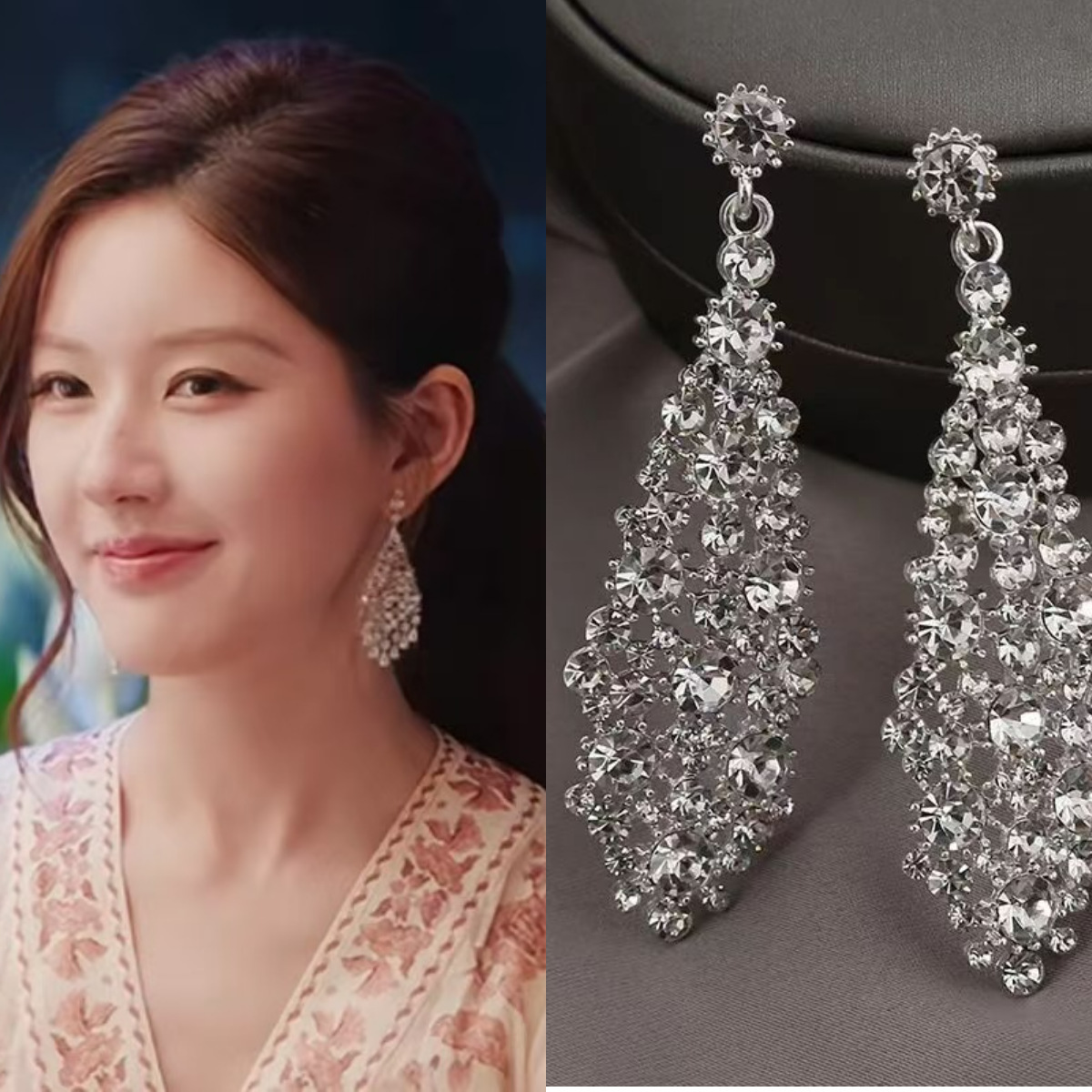 许我耀眼赵露思同款银针镶钻菱形耳环轻奢高级感耳钉欧美跨境耳饰