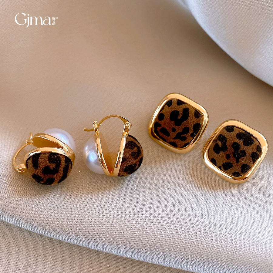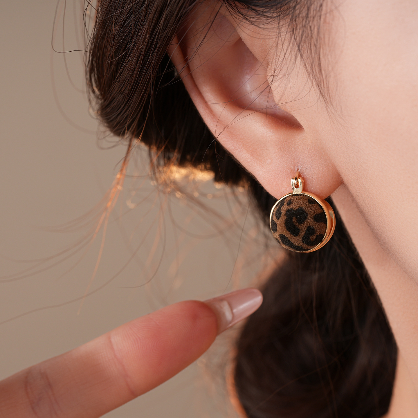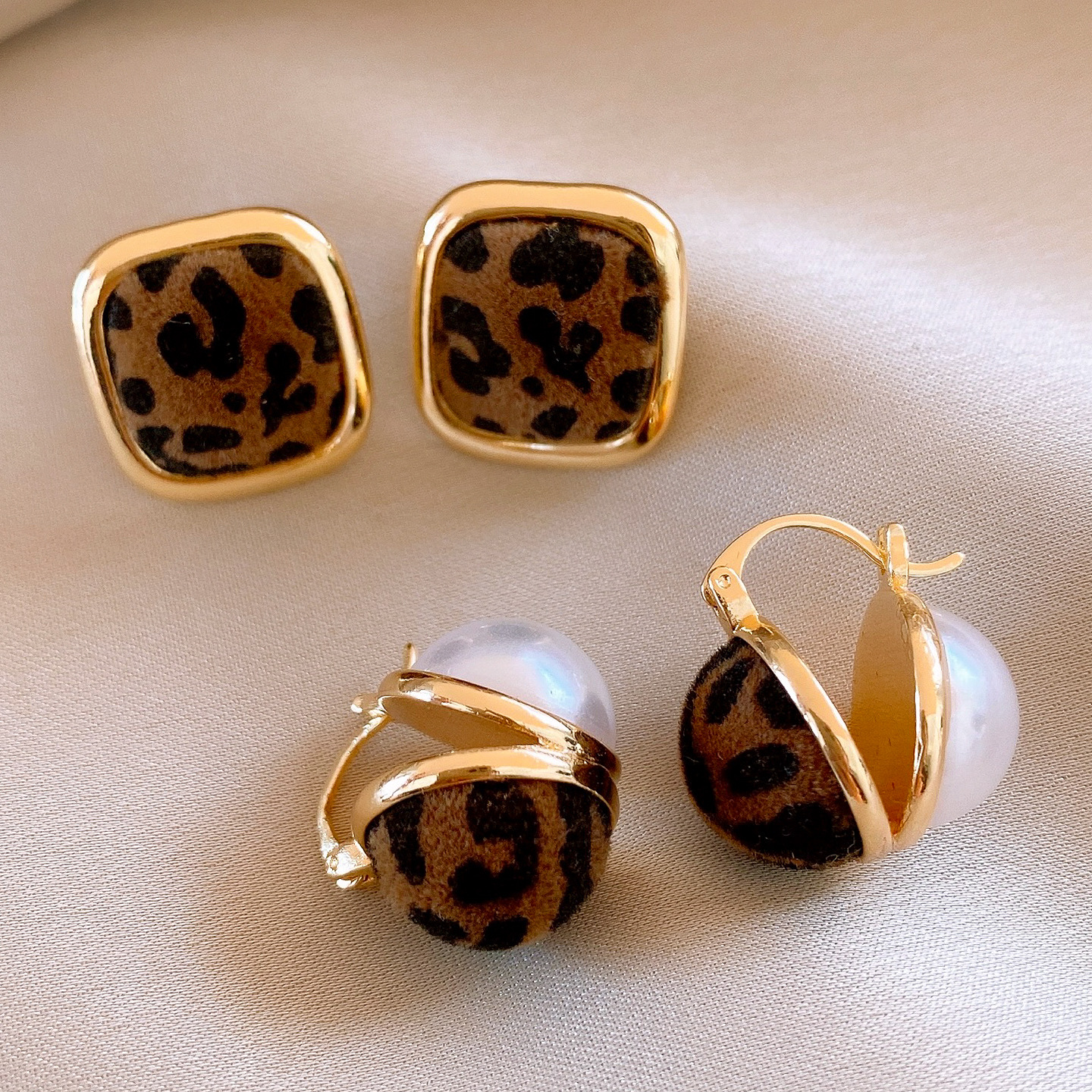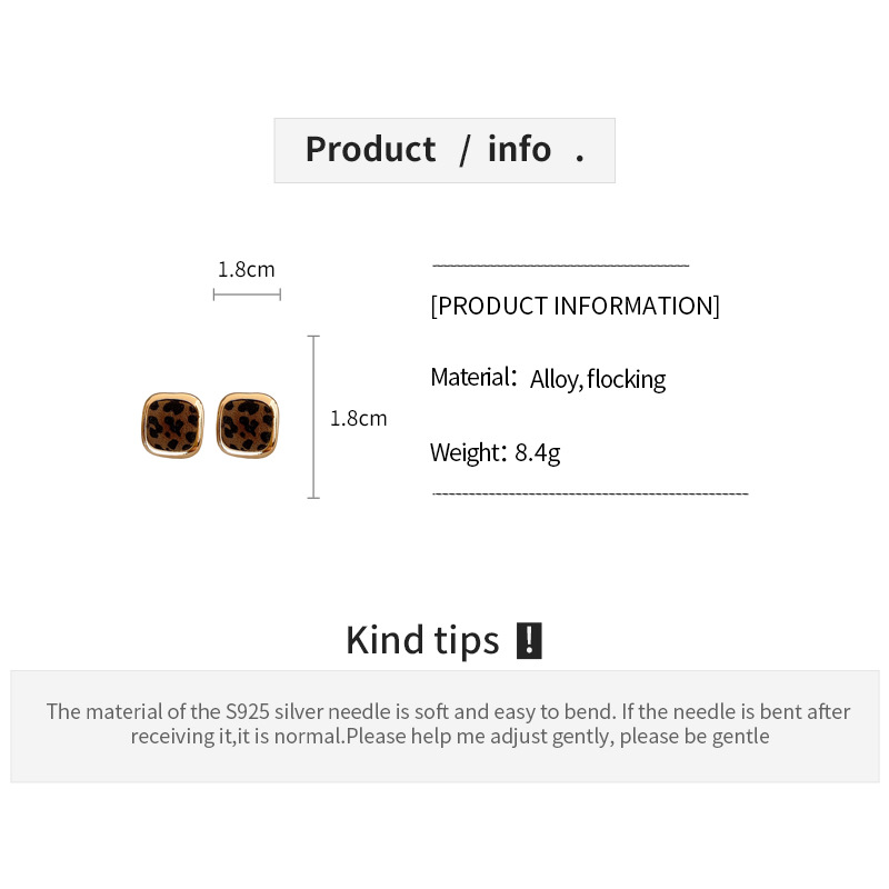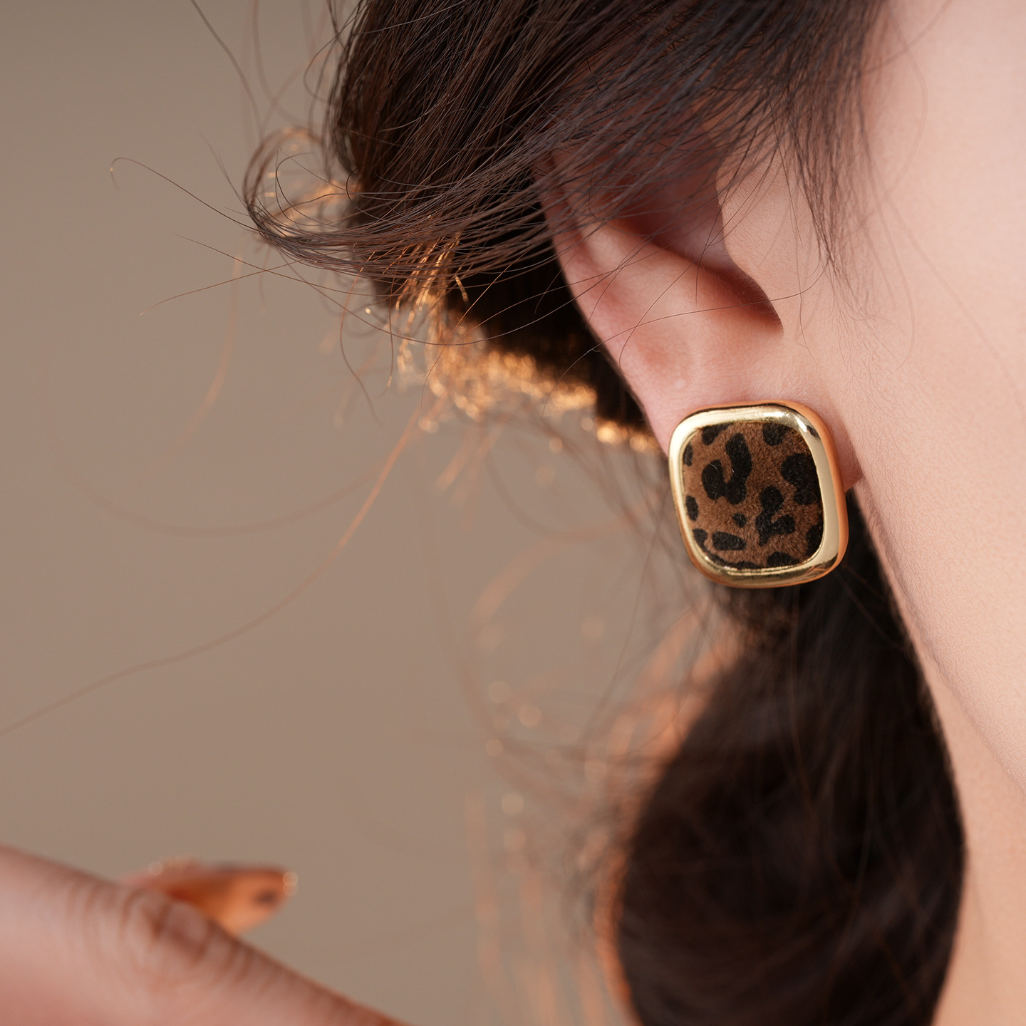 秋冬复古银针植绒豹纹方形耳钉气质小众百搭耳环轻奢高级感耳饰女