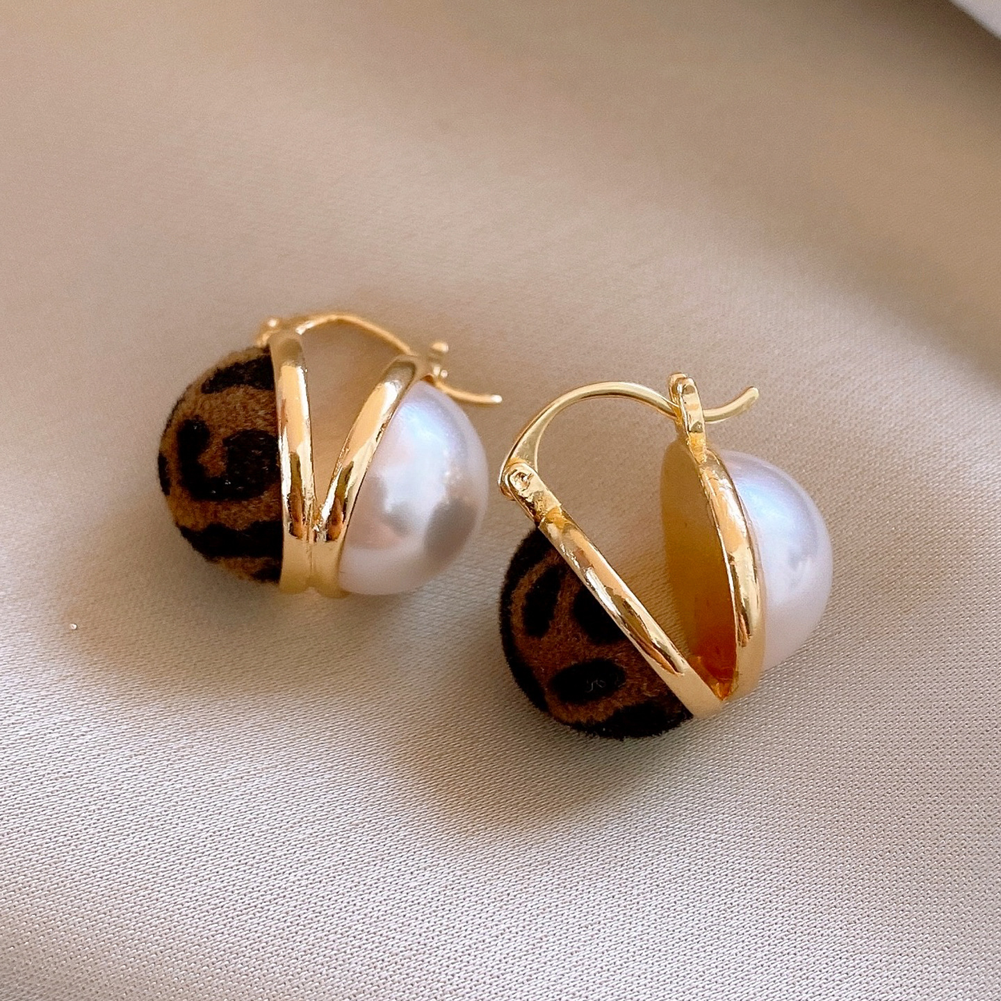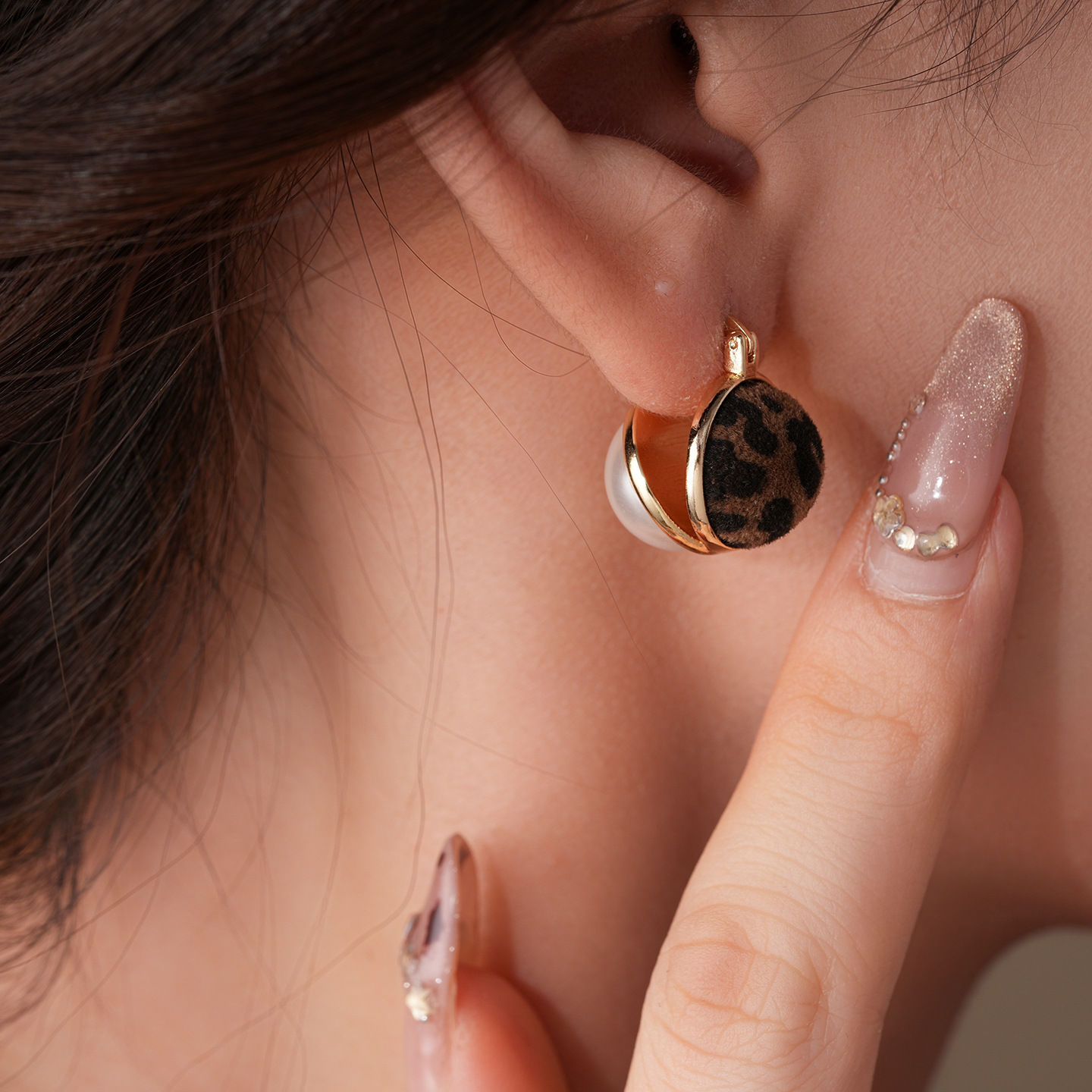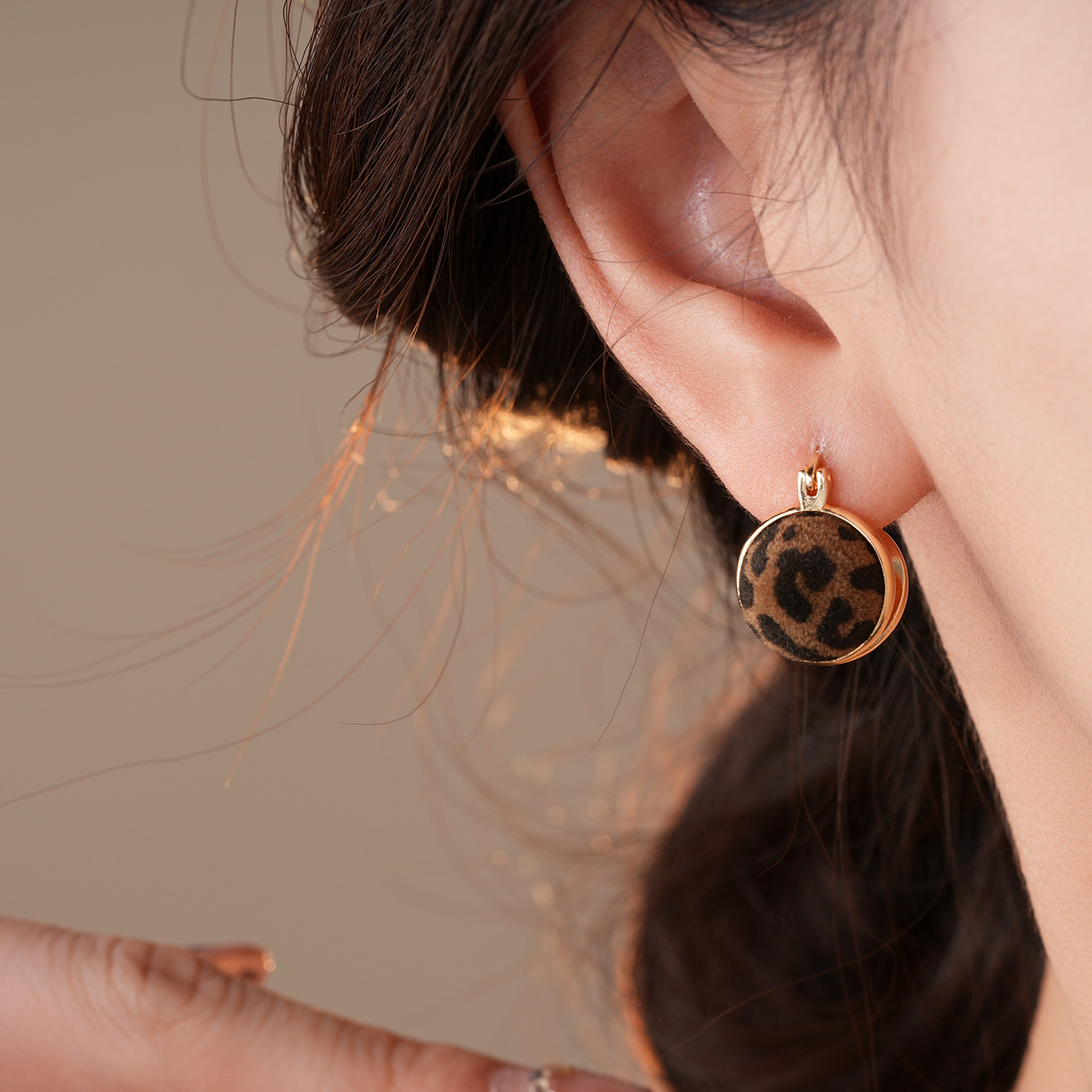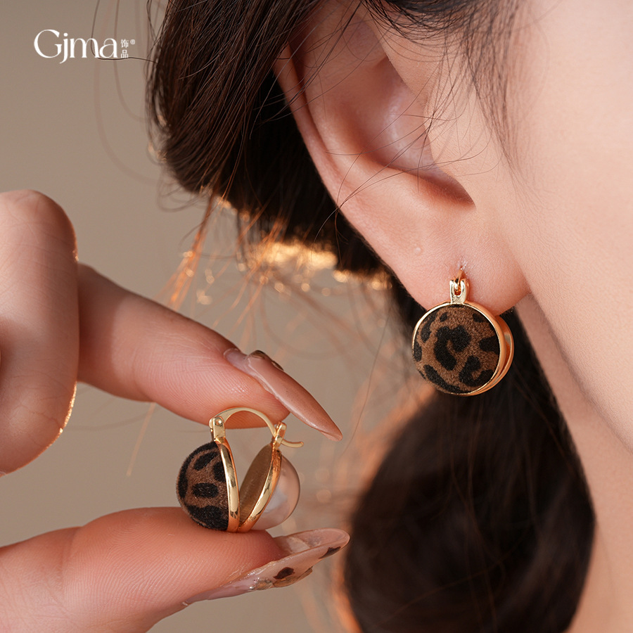 秋冬复古银针植绒豹纹方形耳钉气质小众百搭耳环轻奢高级感耳饰女