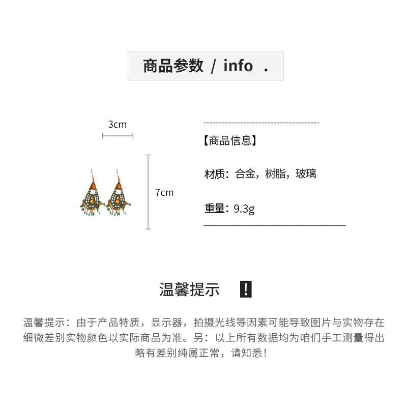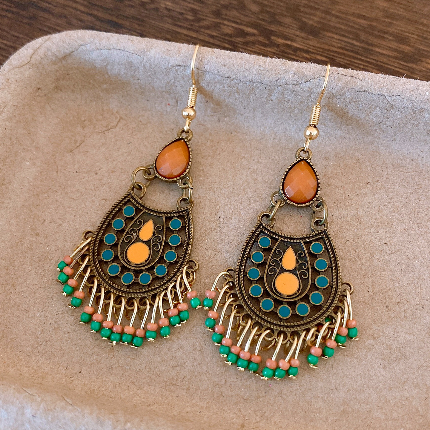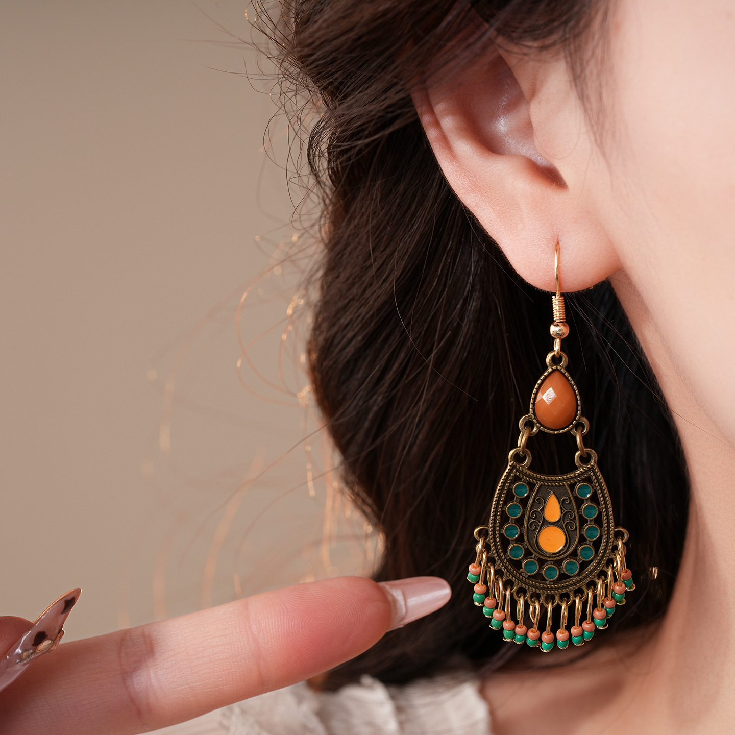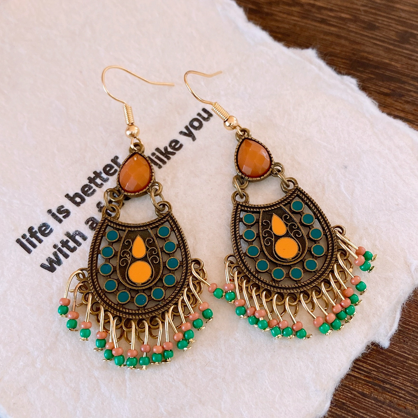 民族风滴油镶钻水滴流苏耳环轻奢高级感耳坠欧美小众夸张耳饰批发