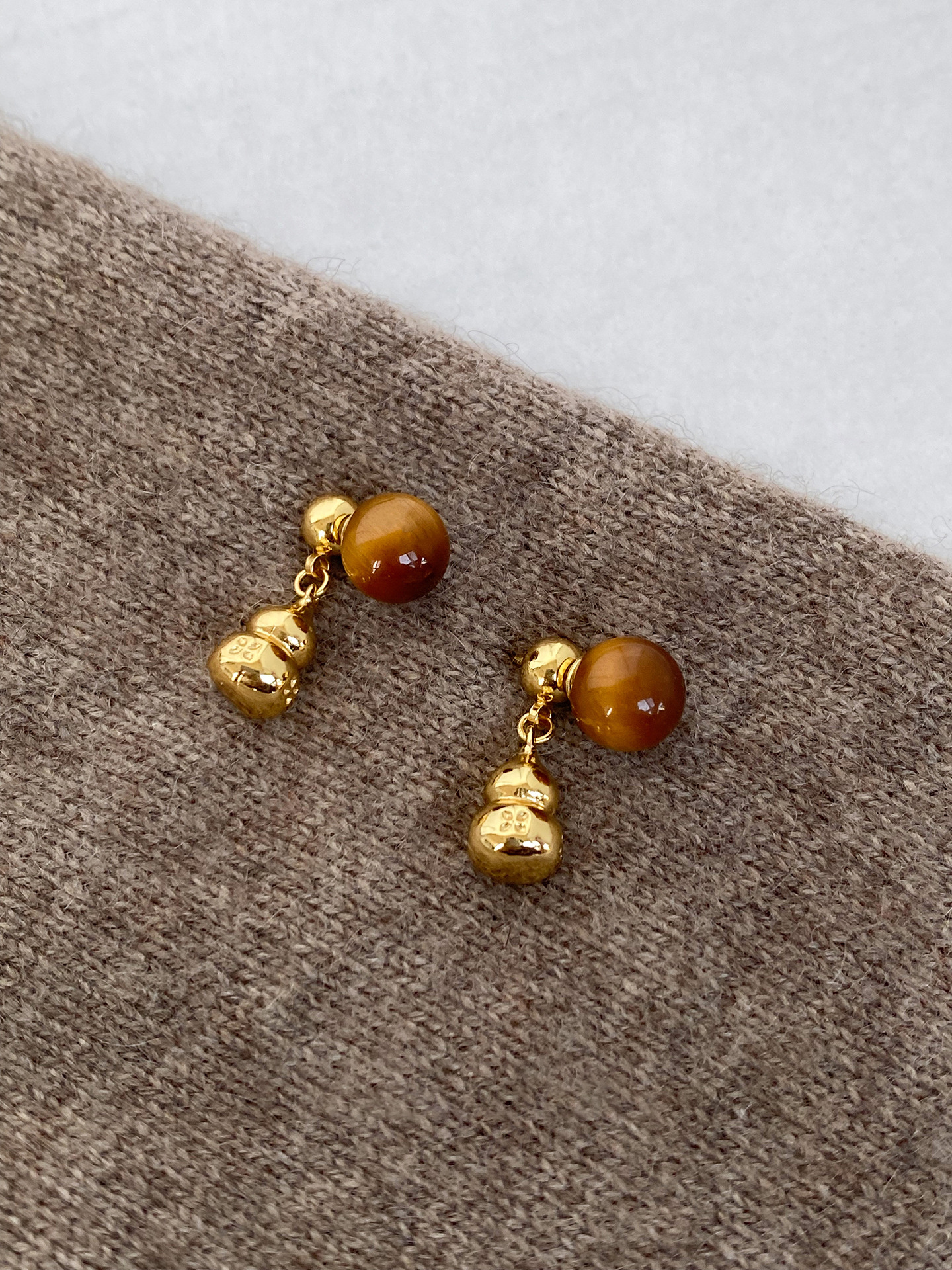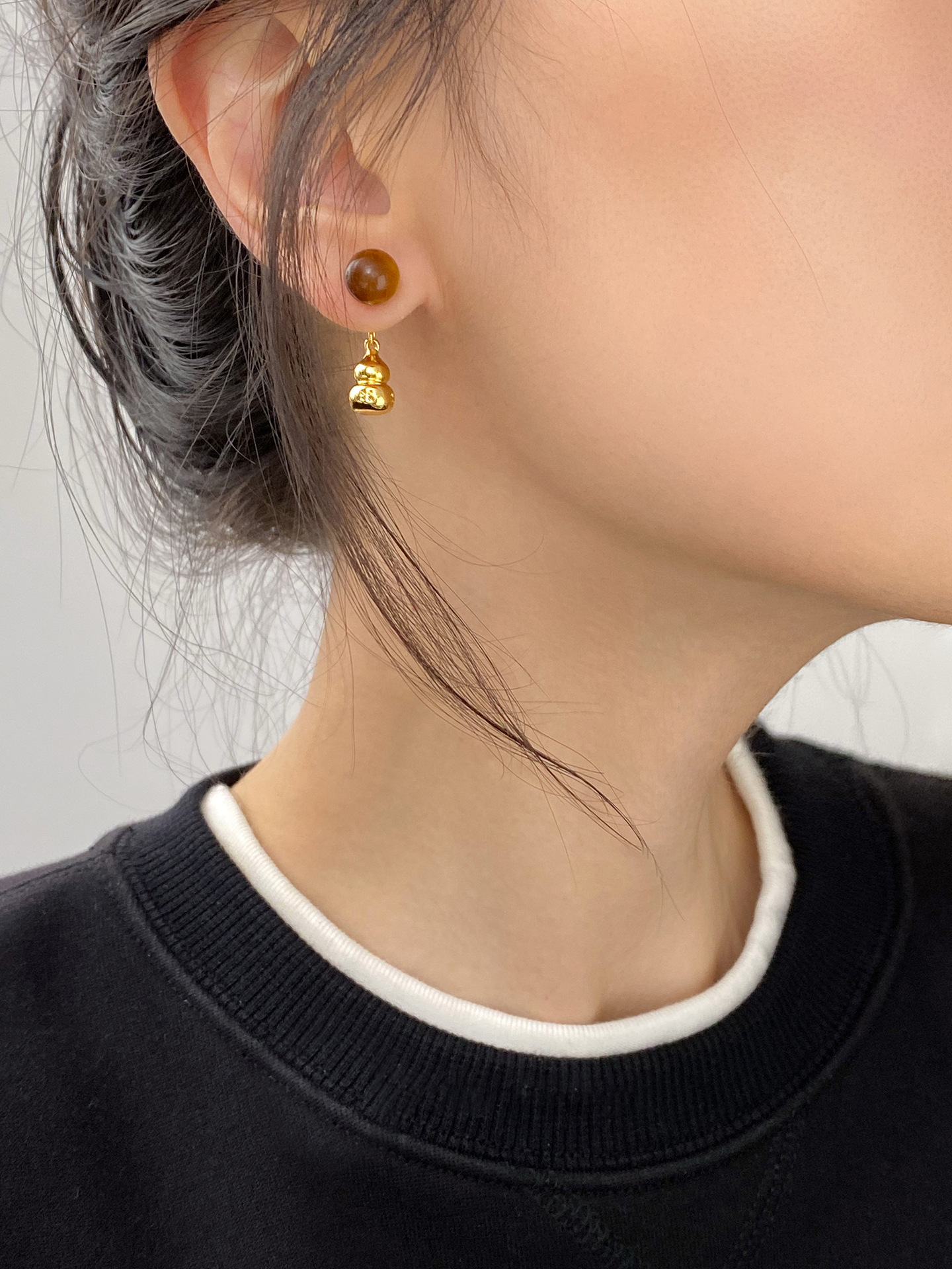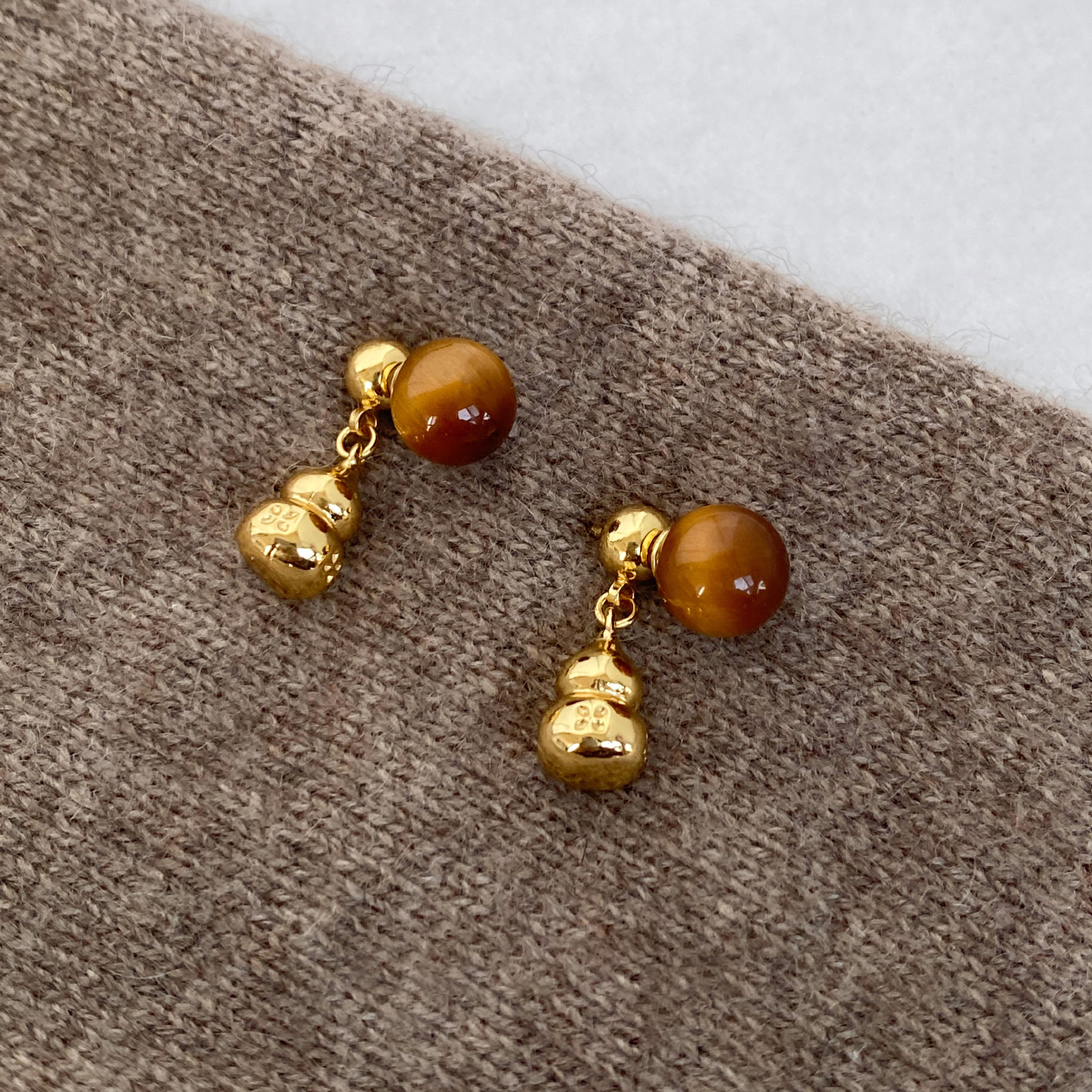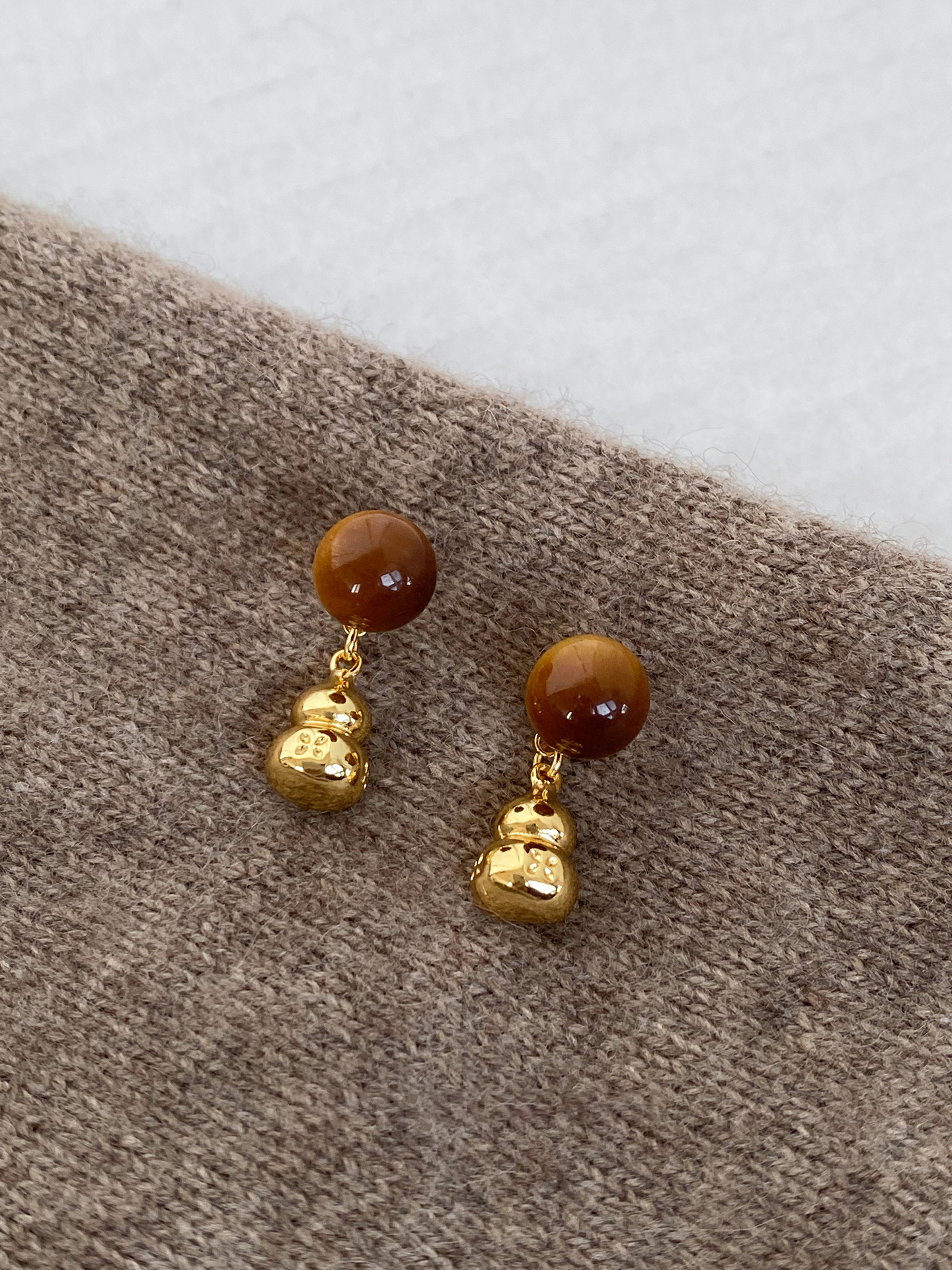 银针咖色虎眼石葫芦吊坠耳环秋冬通勤时尚百搭耳钉新中式气质耳饰