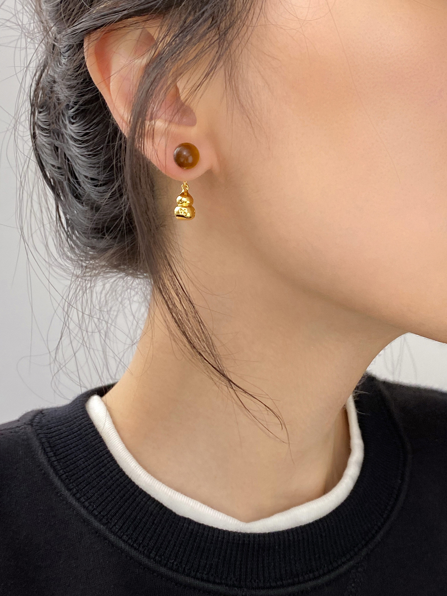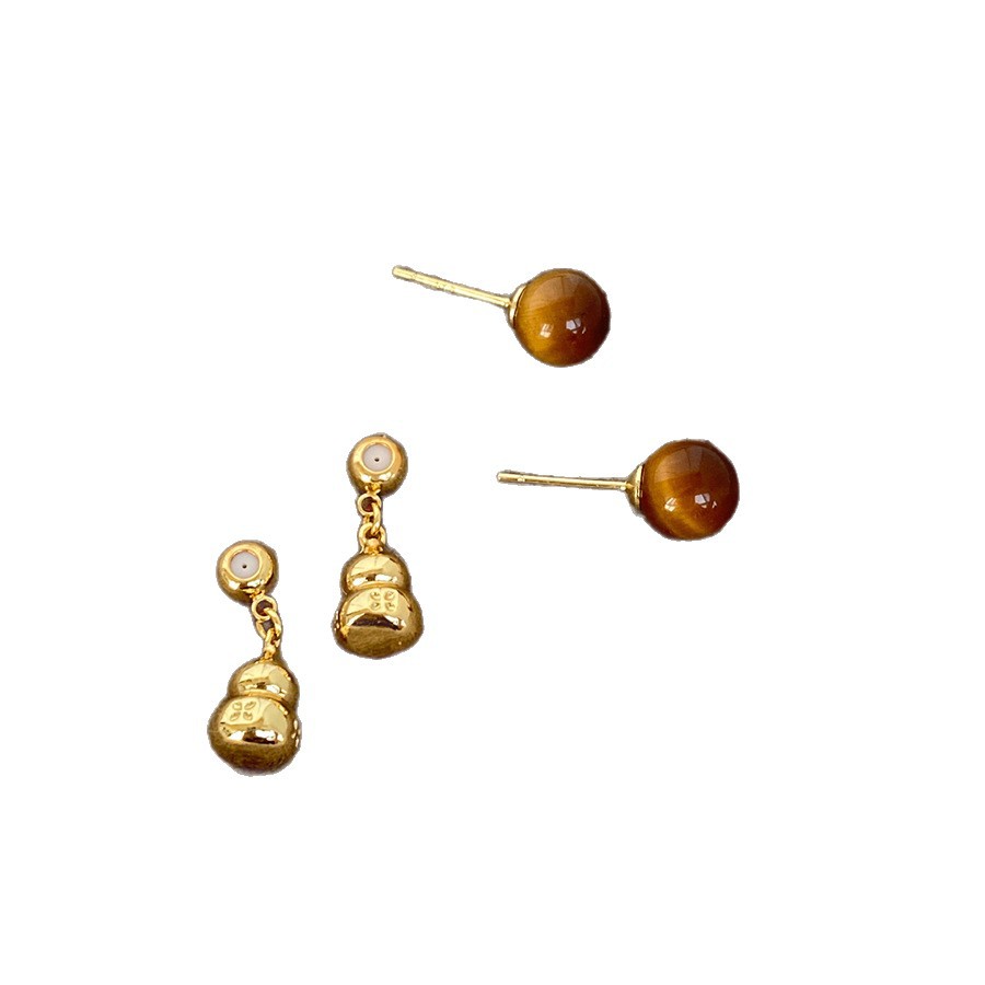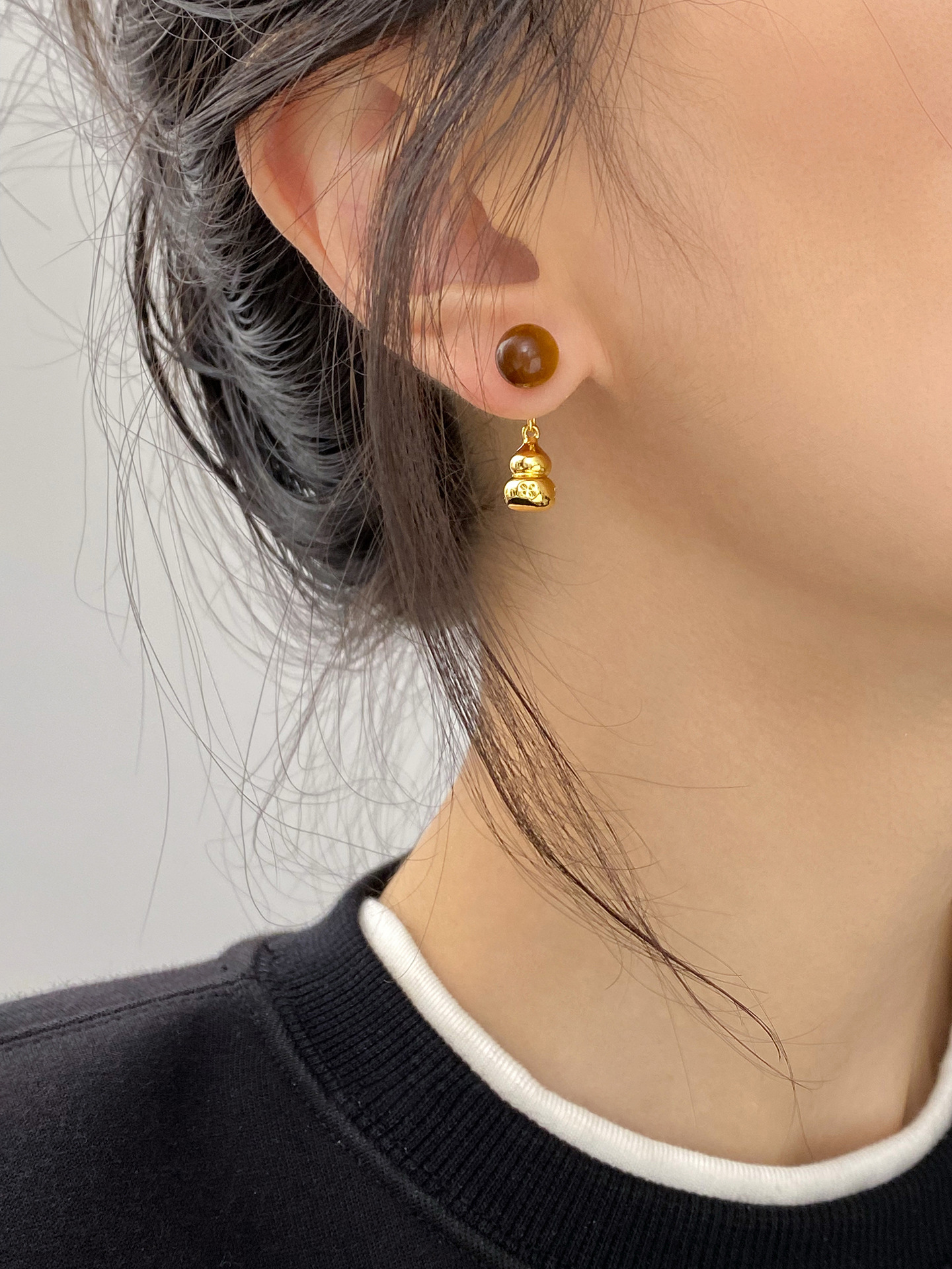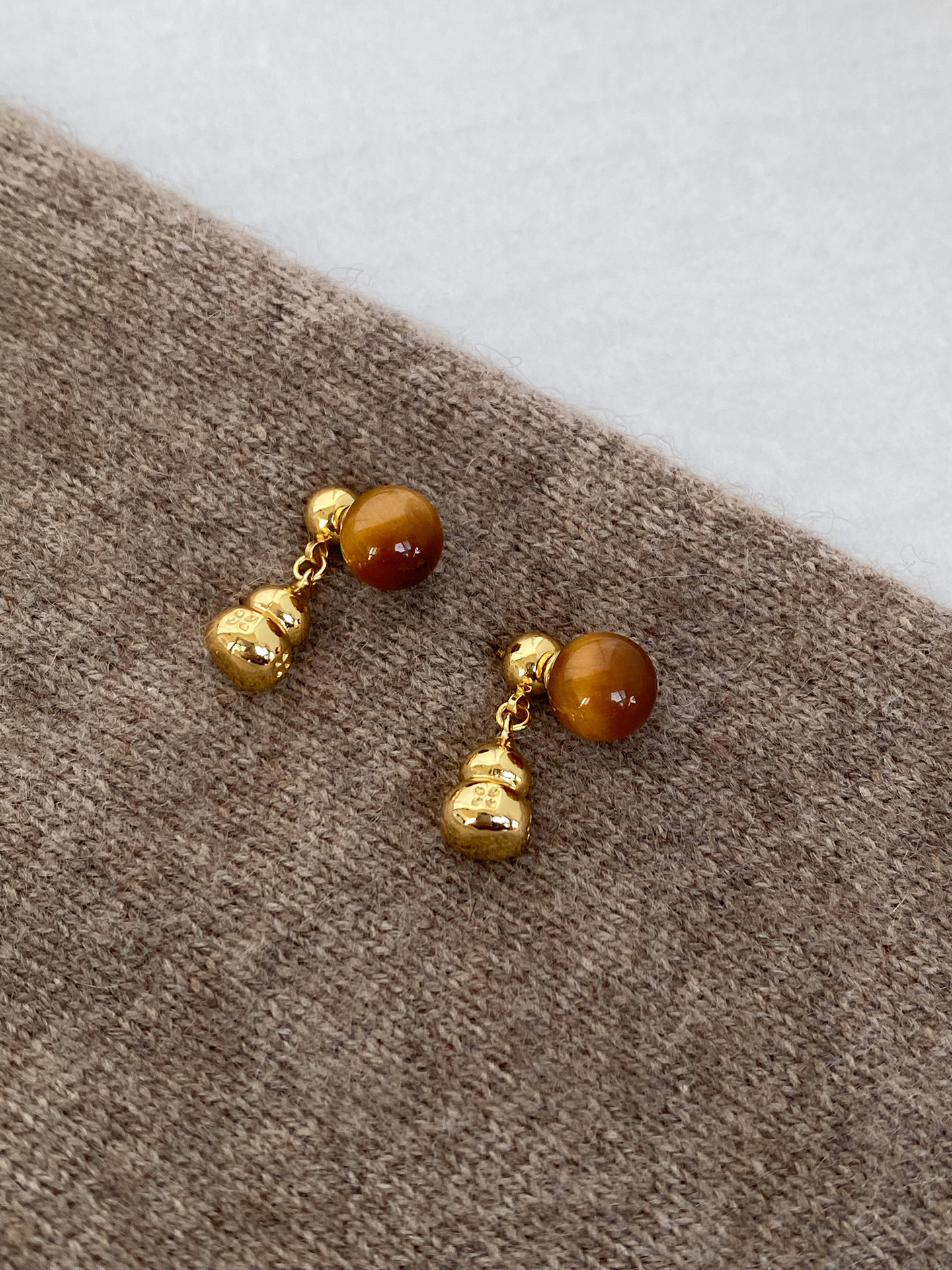 银针咖色虎眼石葫芦吊坠耳环秋冬通勤时尚百搭耳钉新中式气质耳饰