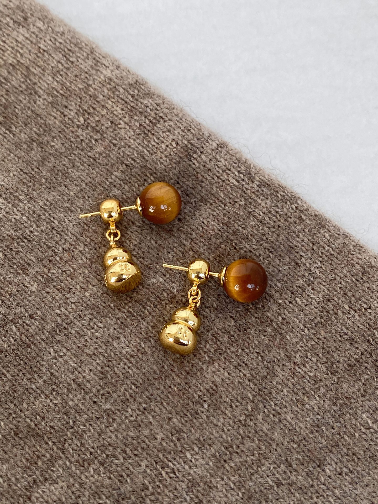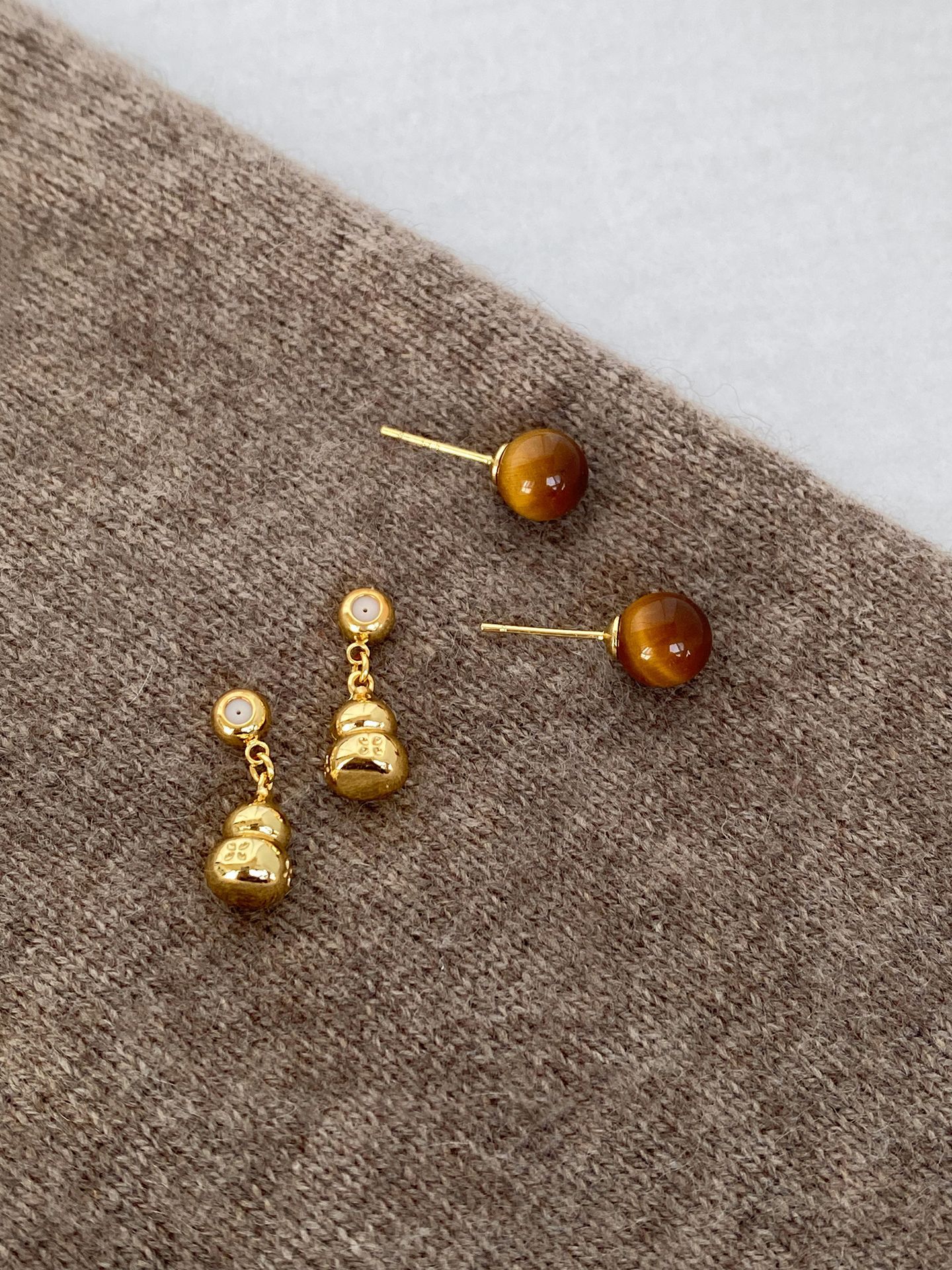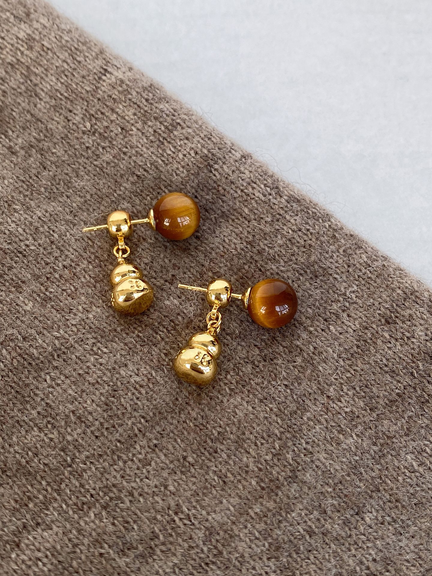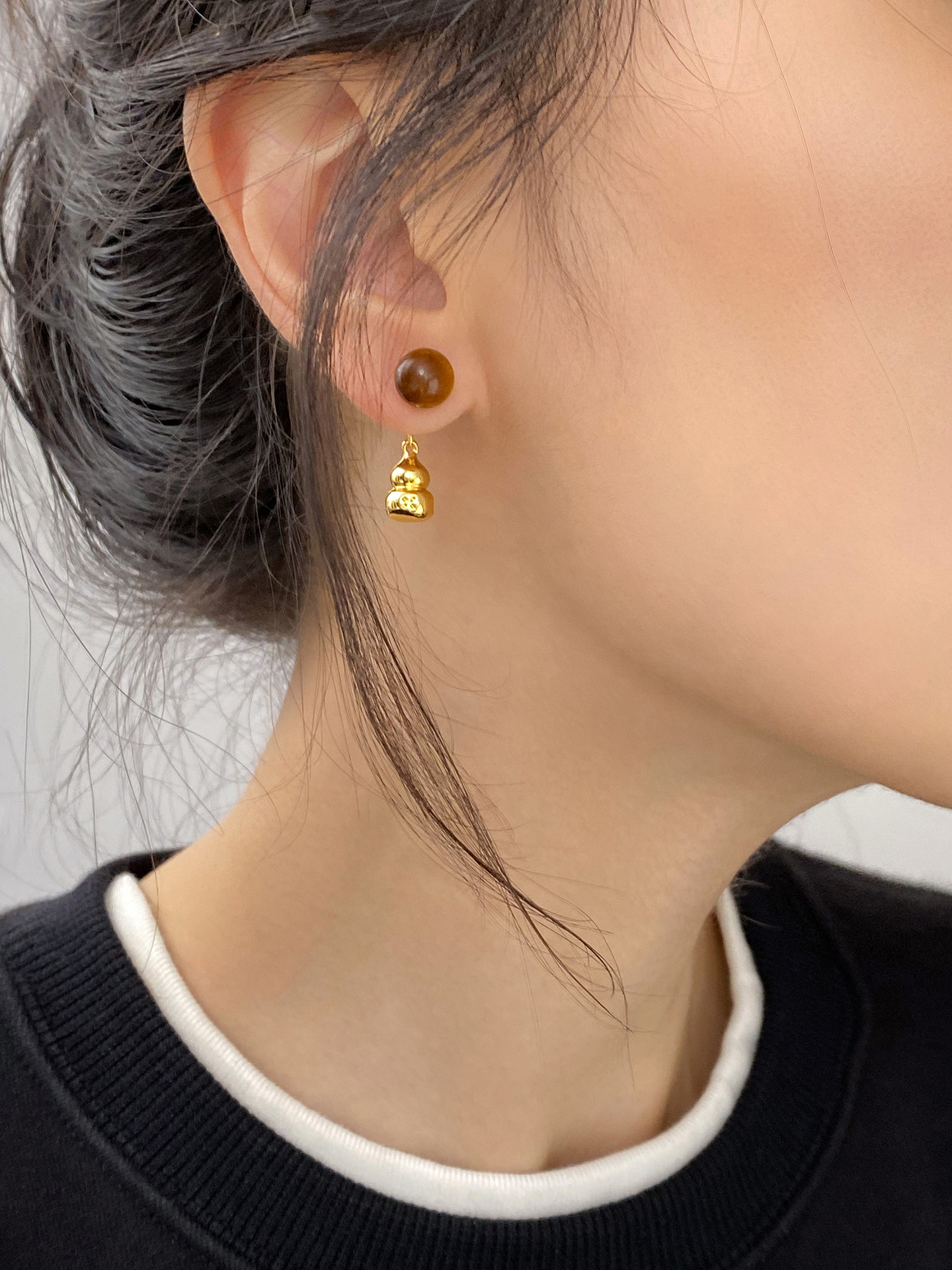 银针咖色虎眼石葫芦吊坠耳环秋冬通勤时尚百搭耳钉新中式气质耳饰