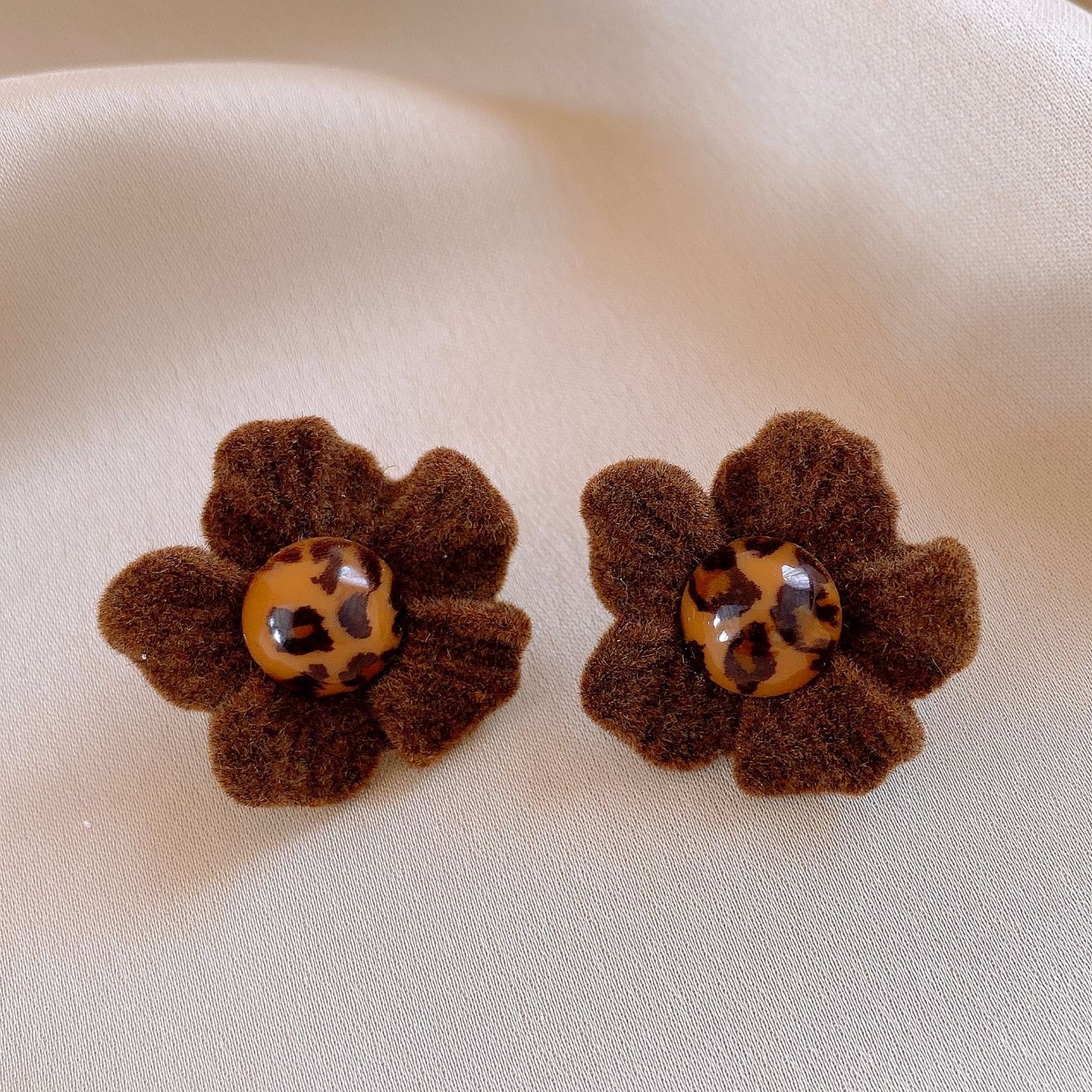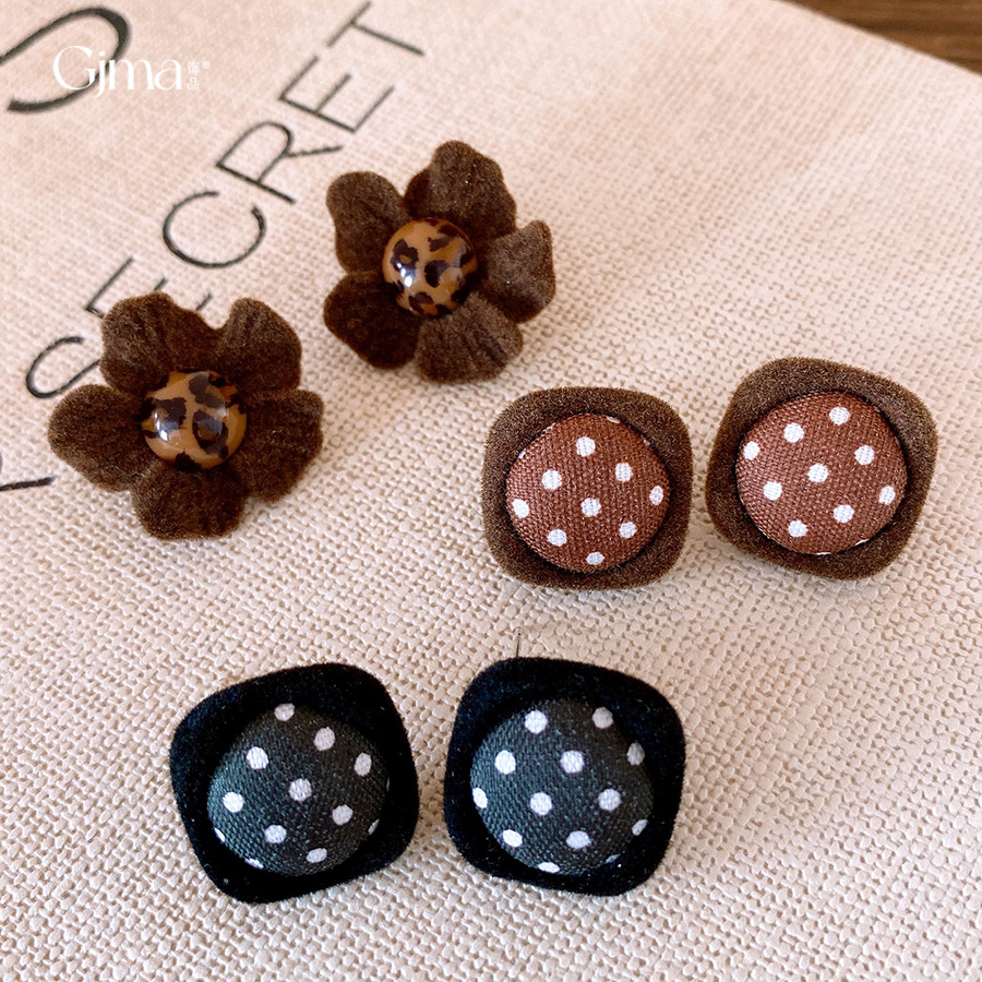 银针秋冬复古布艺方形花朵耳环轻奢高级感耳钉时尚个性百搭耳饰女