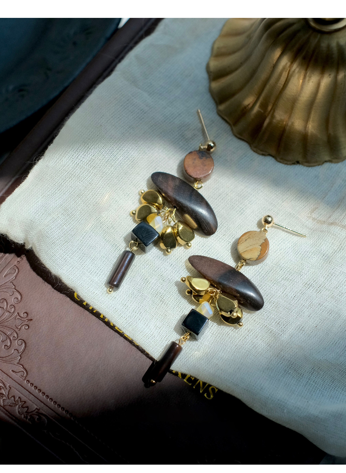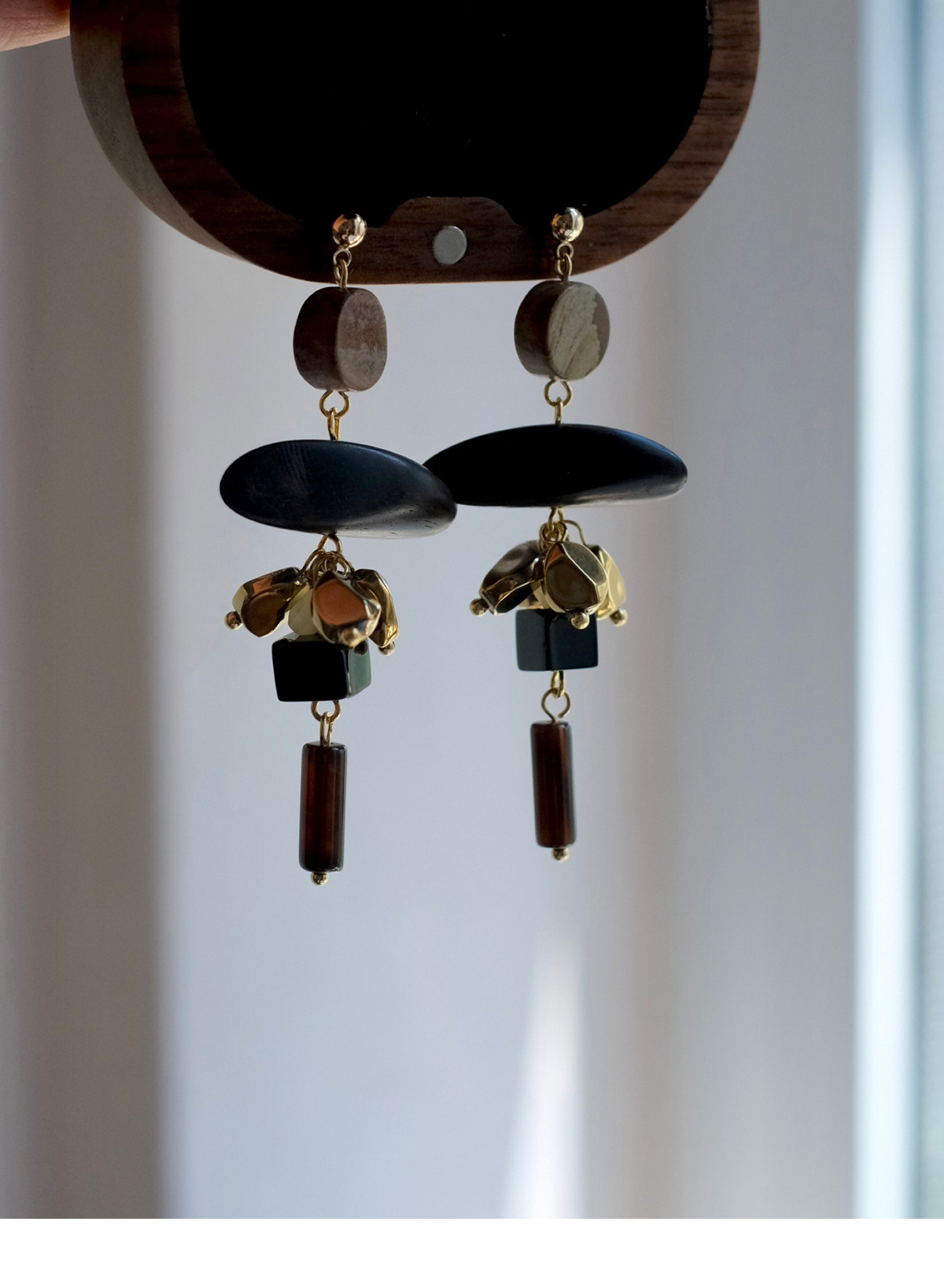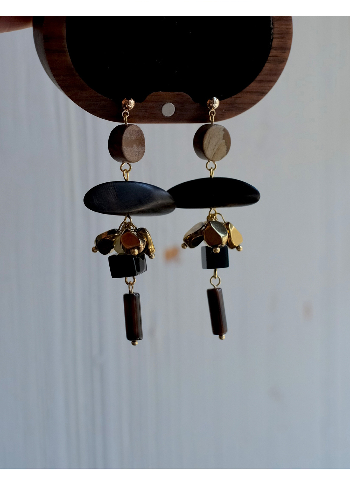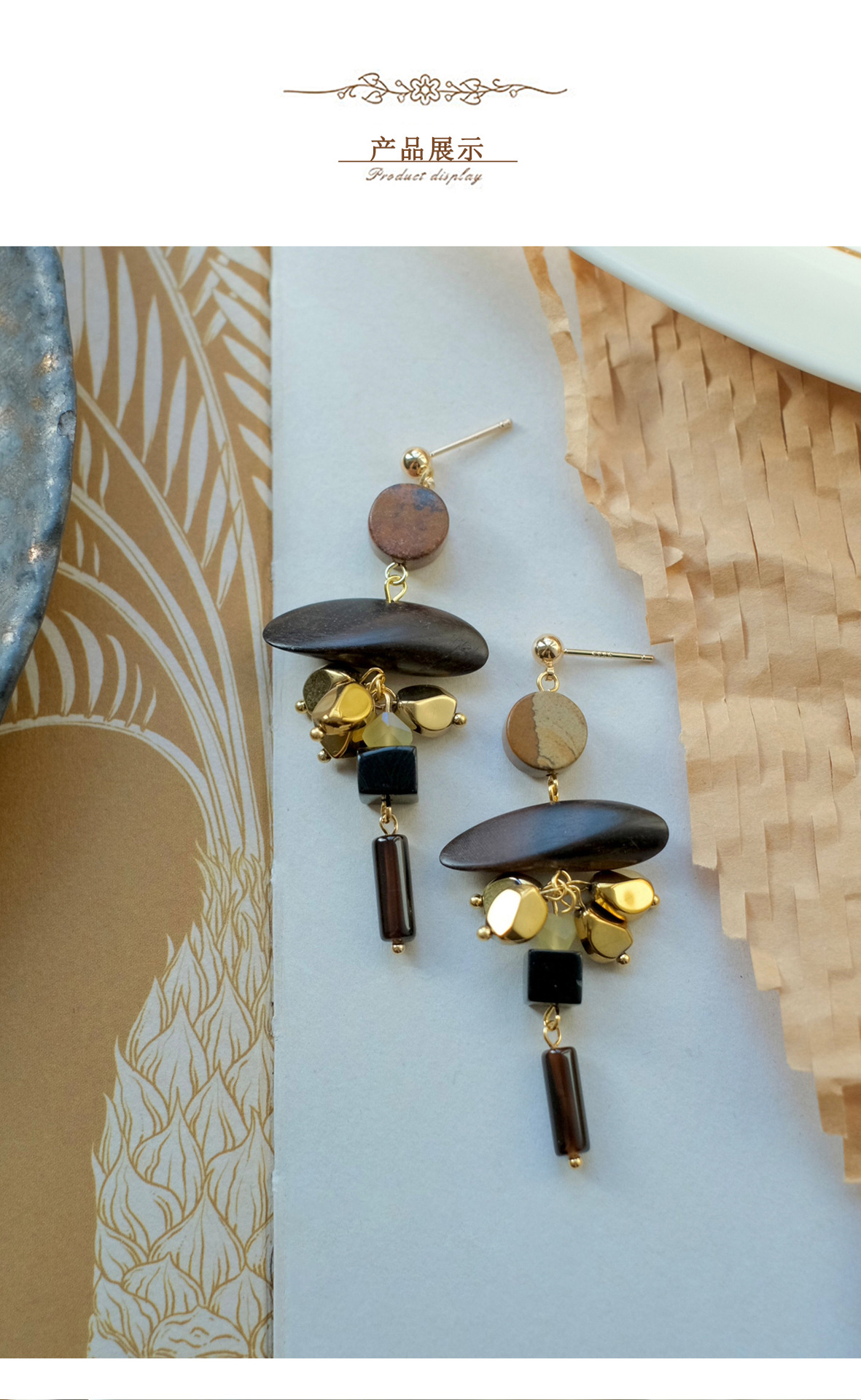 银针圆形木头黑胆石流苏耳环轻奢高级感耳钉民族风复古气质耳饰女