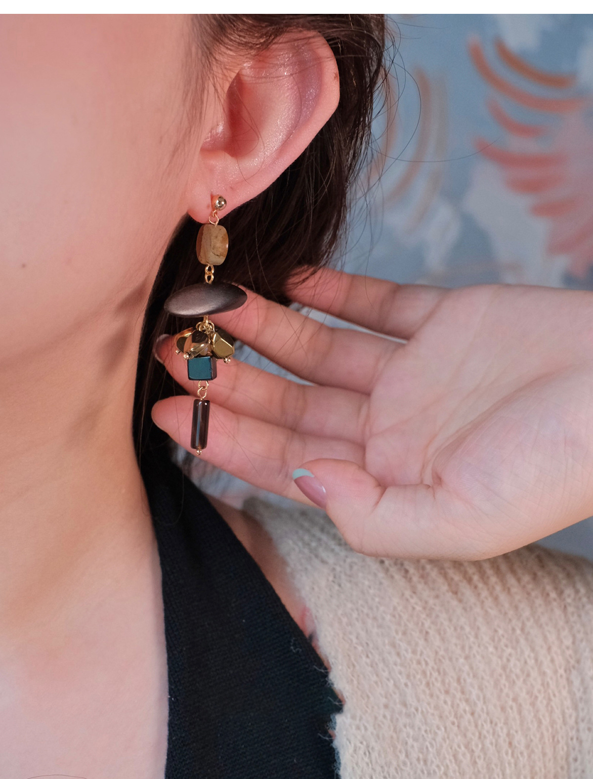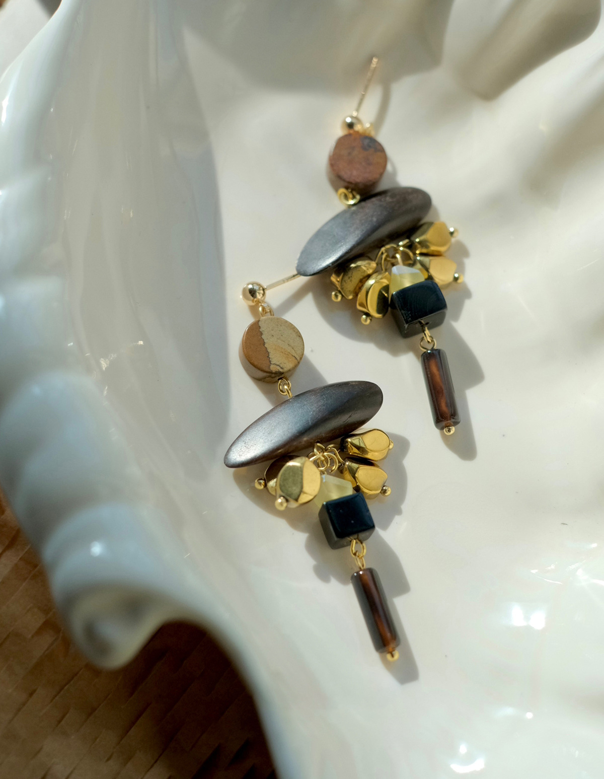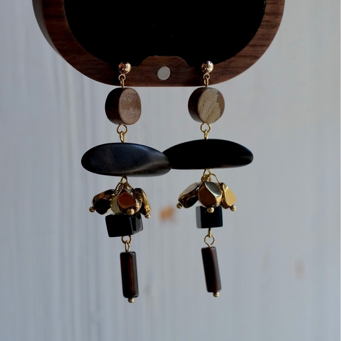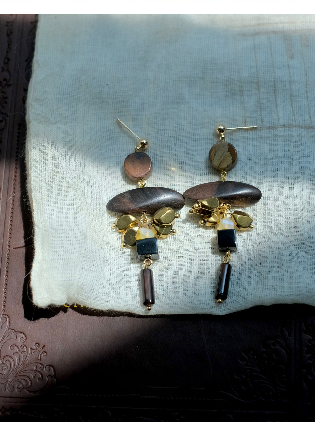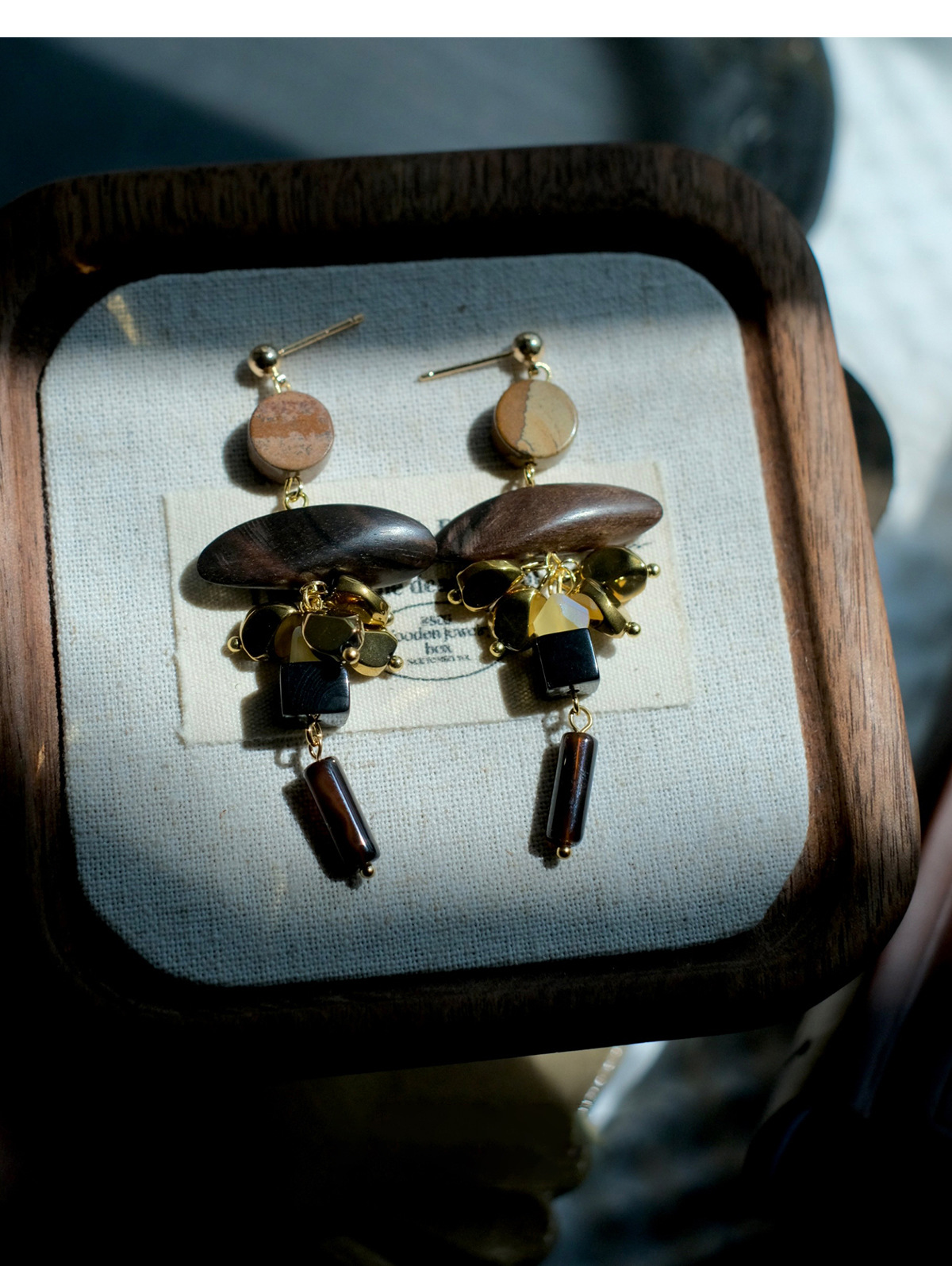 银针圆形木头黑胆石流苏耳环轻奢高级感耳钉民族风复古气质耳饰女