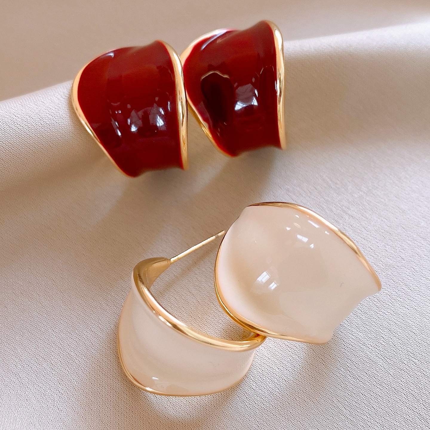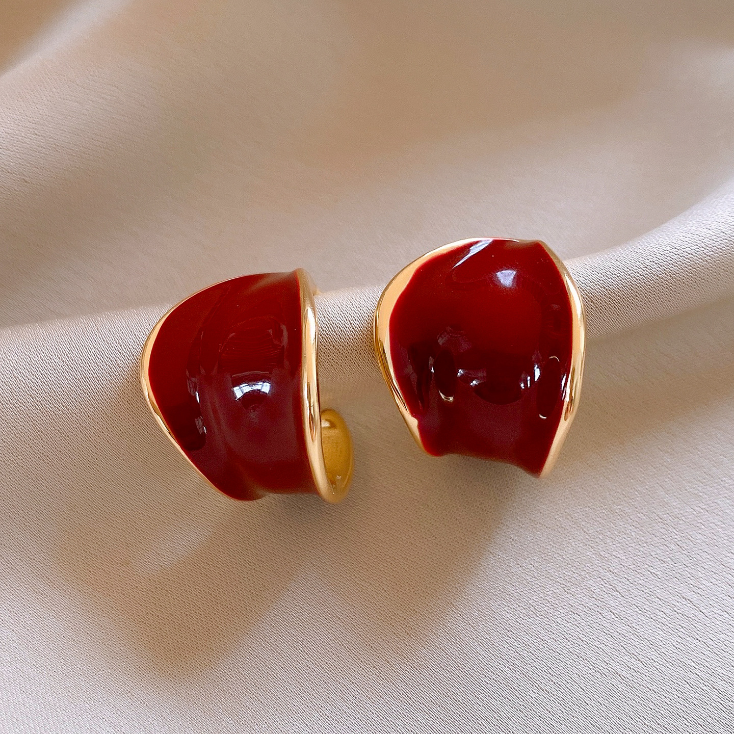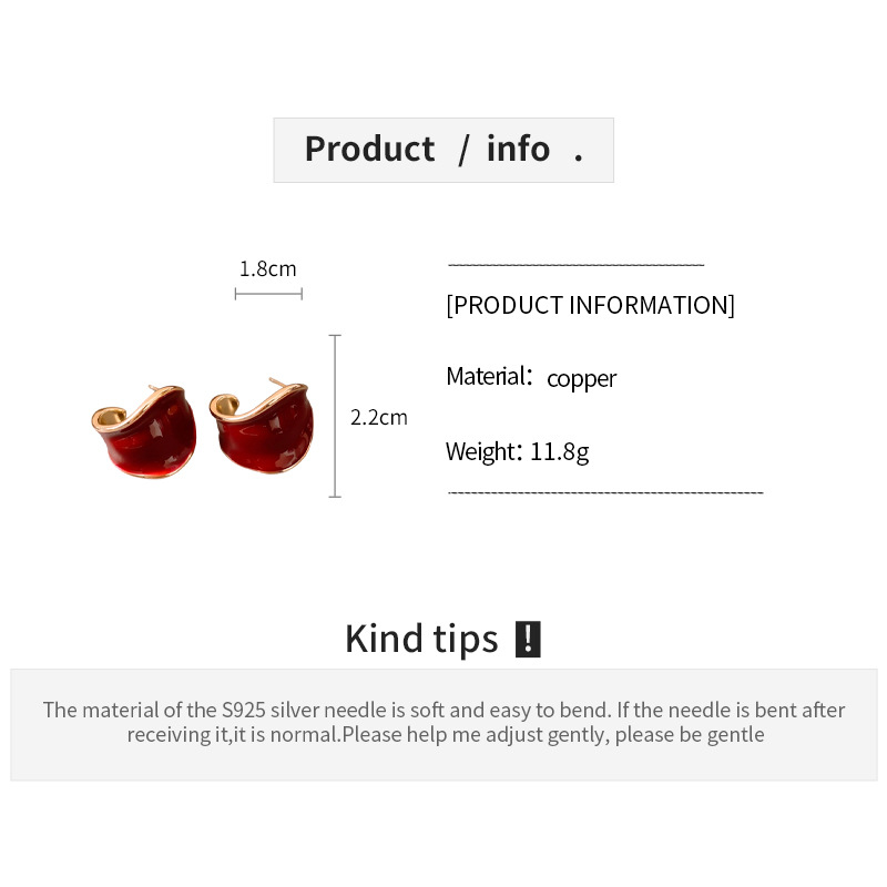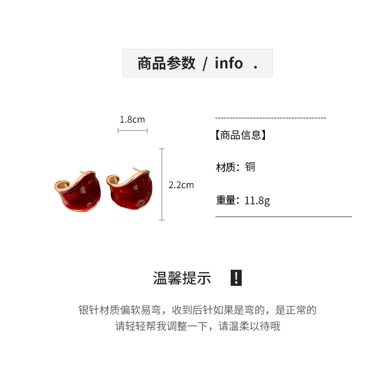 18K真金电镀银针滴油C形宽面树叶耳环复古气质耳钉轻奢小众耳饰女