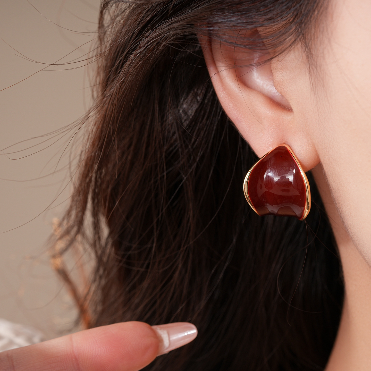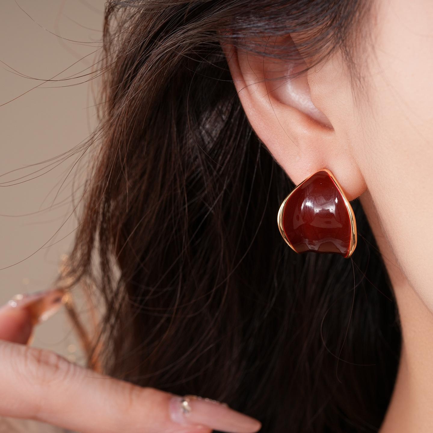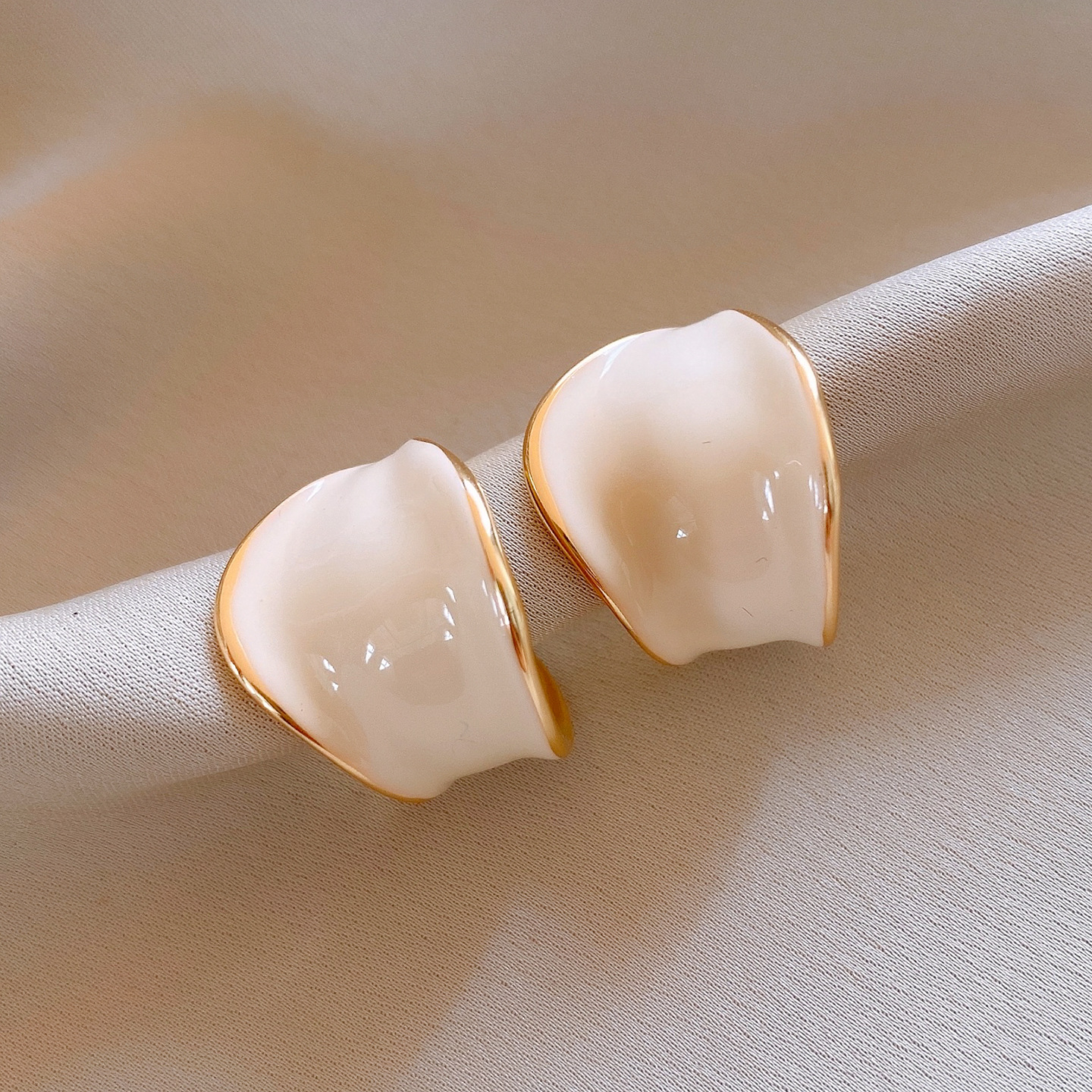 18K真金电镀银针滴油C形宽面树叶耳环复古气质耳钉轻奢小众耳饰女