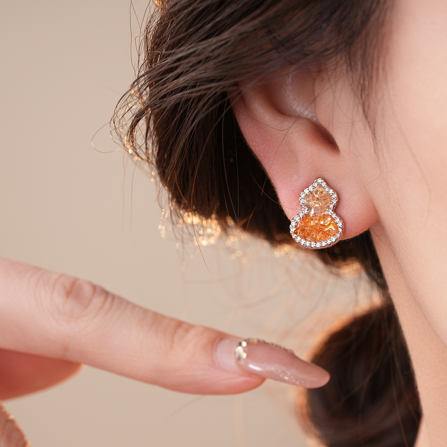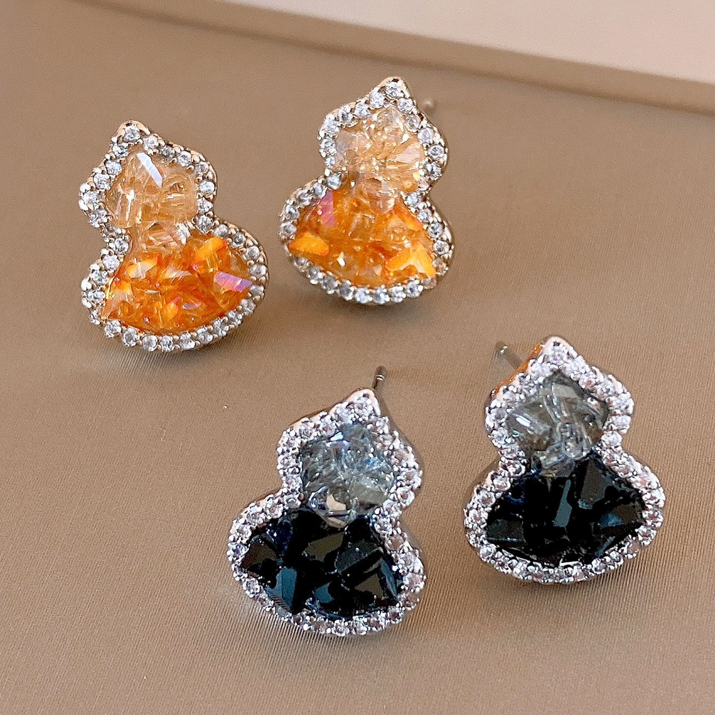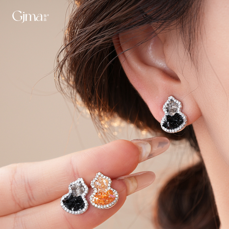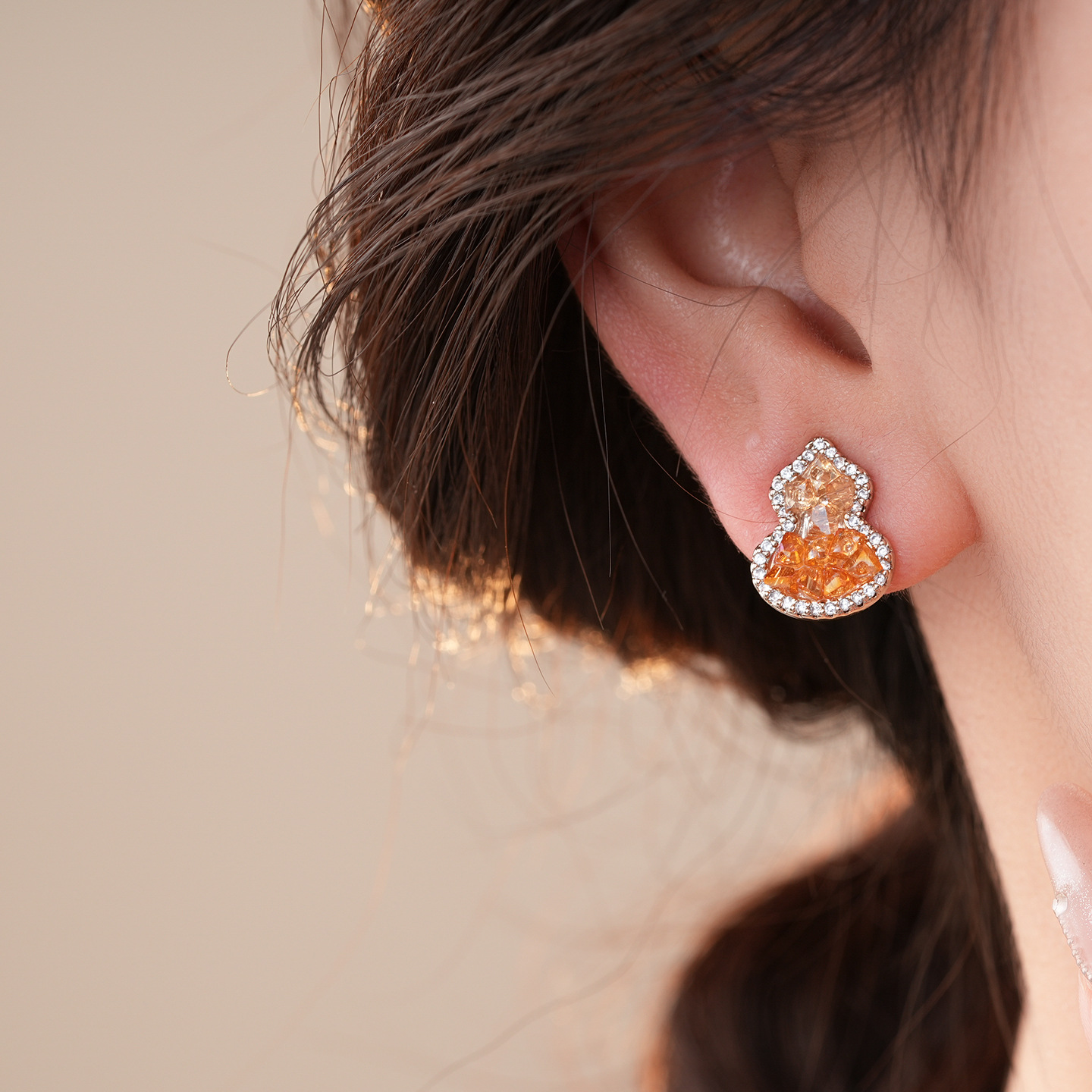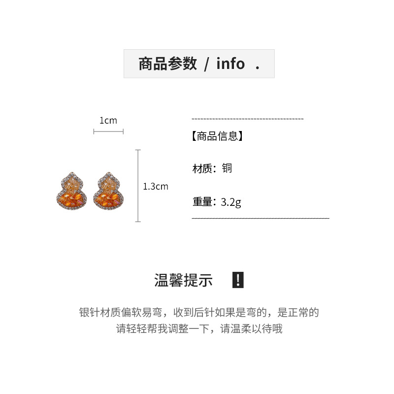 银针锆石玻璃葫芦耳环轻奢高级感耳钉新中式复古气质小众耳饰批发