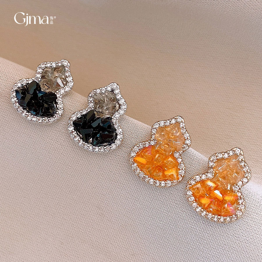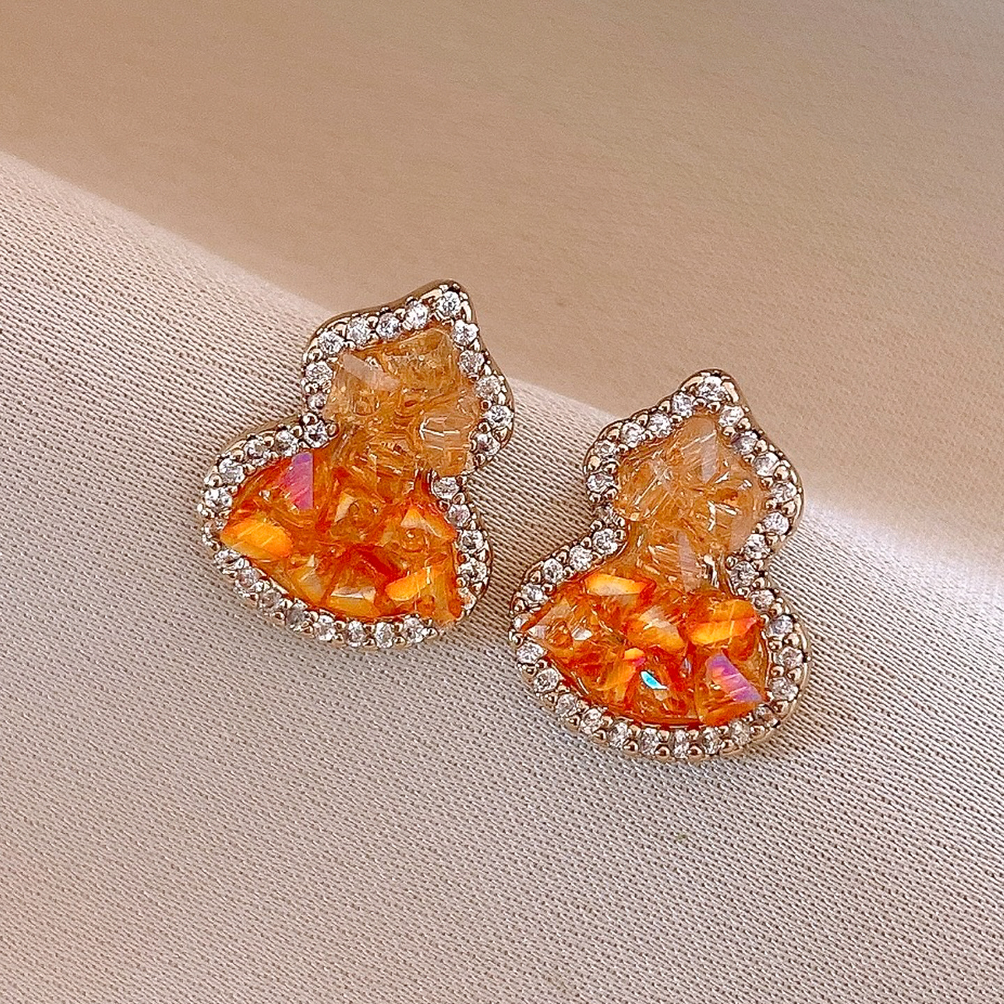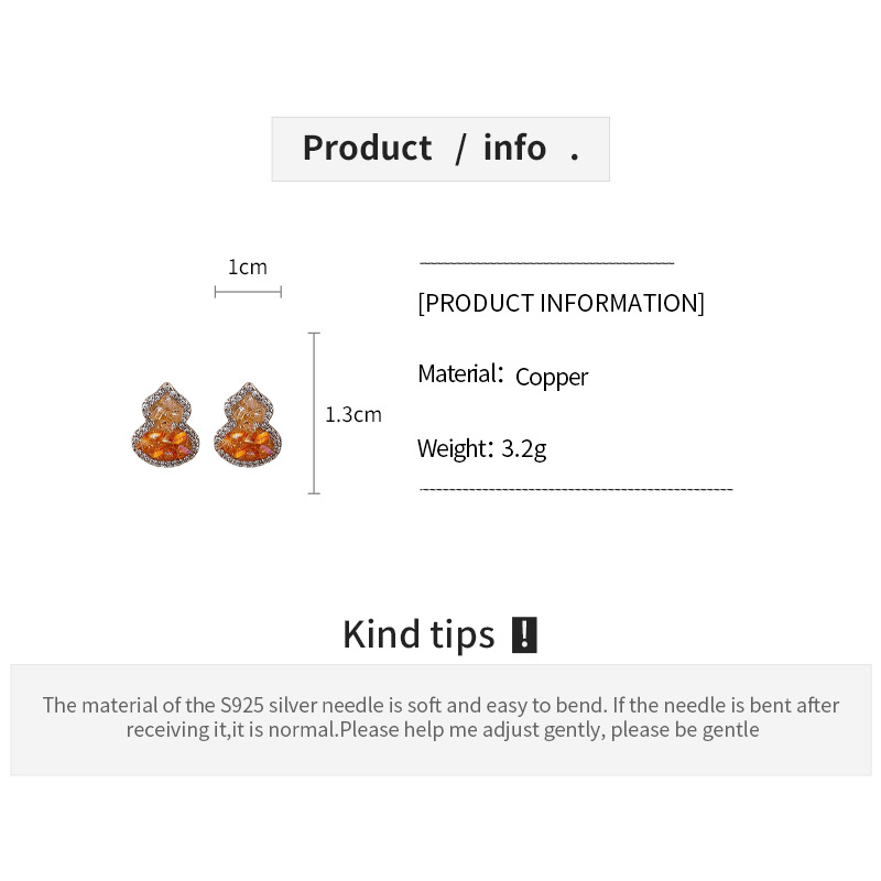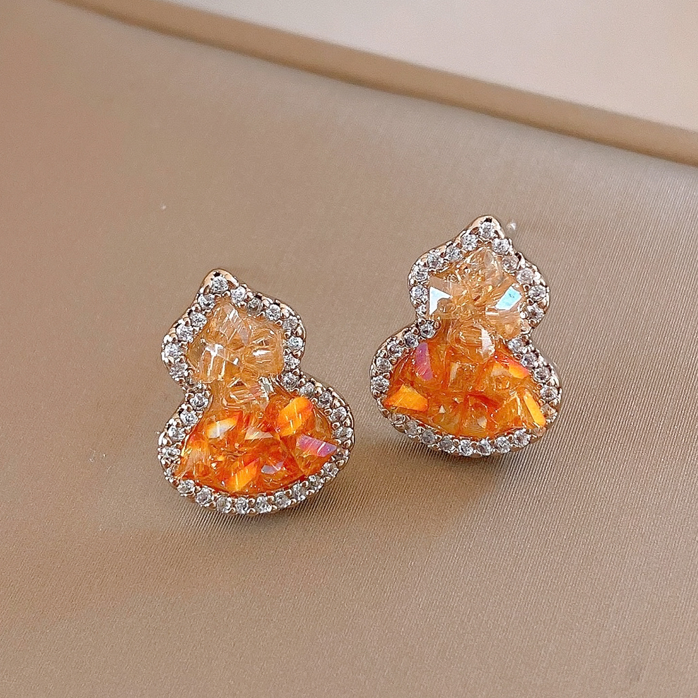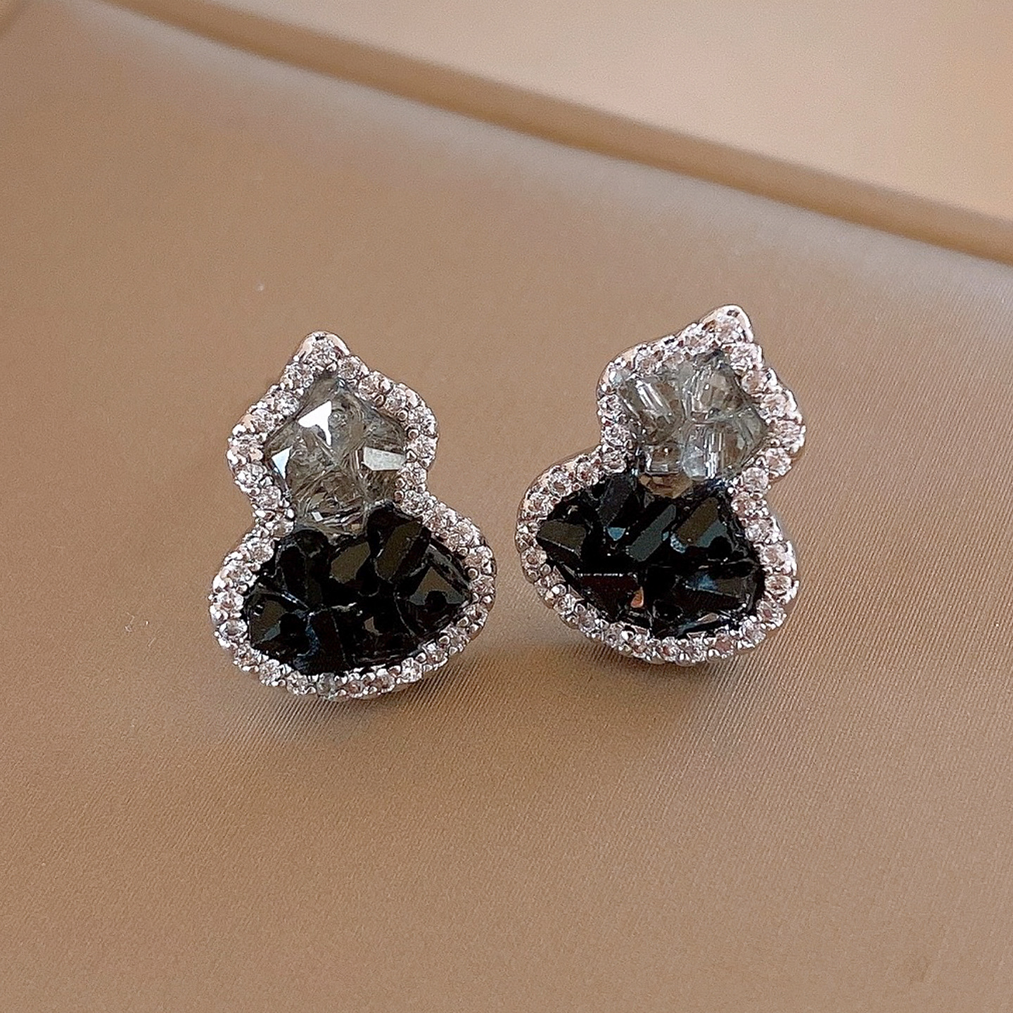 银针锆石玻璃葫芦耳环轻奢高级感耳钉新中式复古气质小众耳饰批发