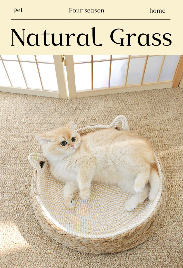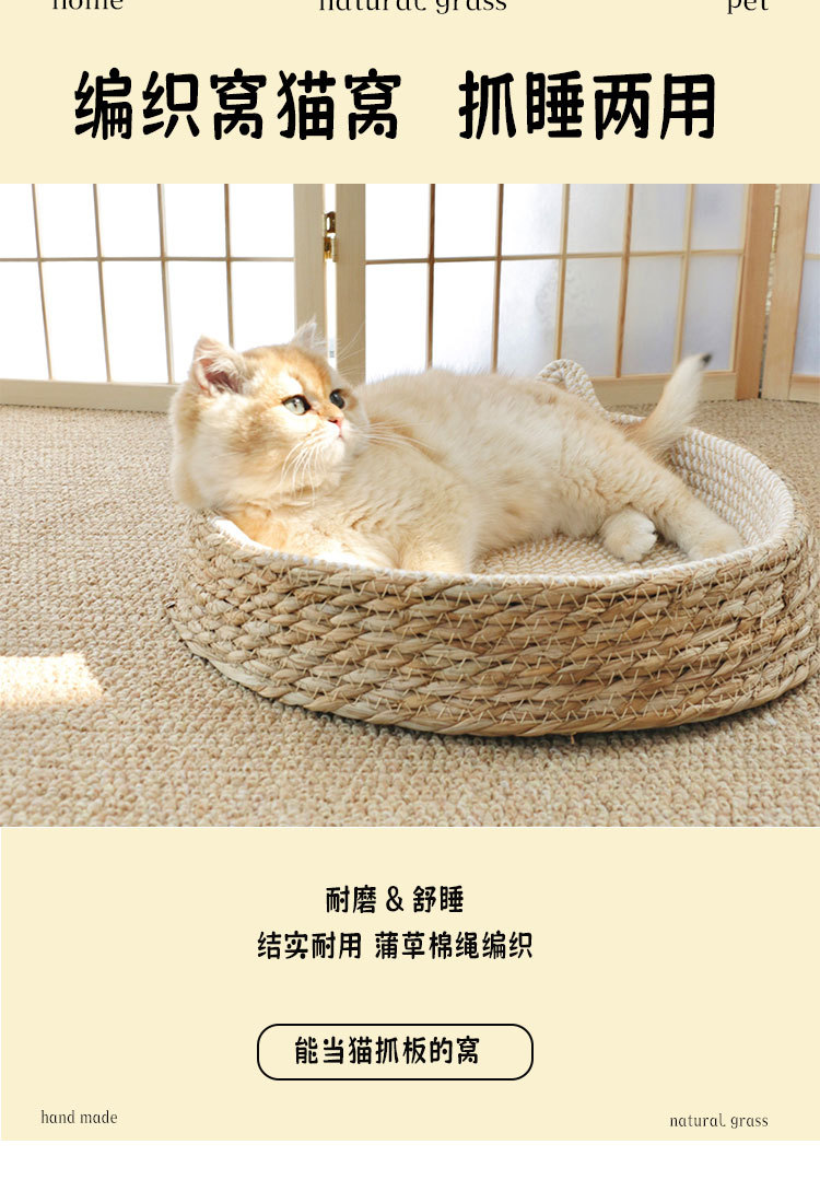 藤草编日式猫窝夏季半封闭草编猫窝垫四季通用宠物用品宠物窝