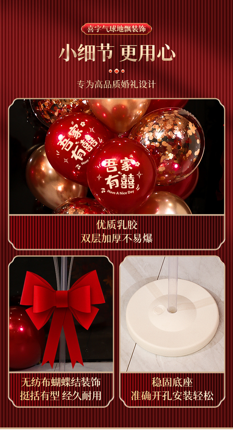 结婚气球地飘布置套装订婚客厅婚房场景立柱装饰新房路引婚庆用品