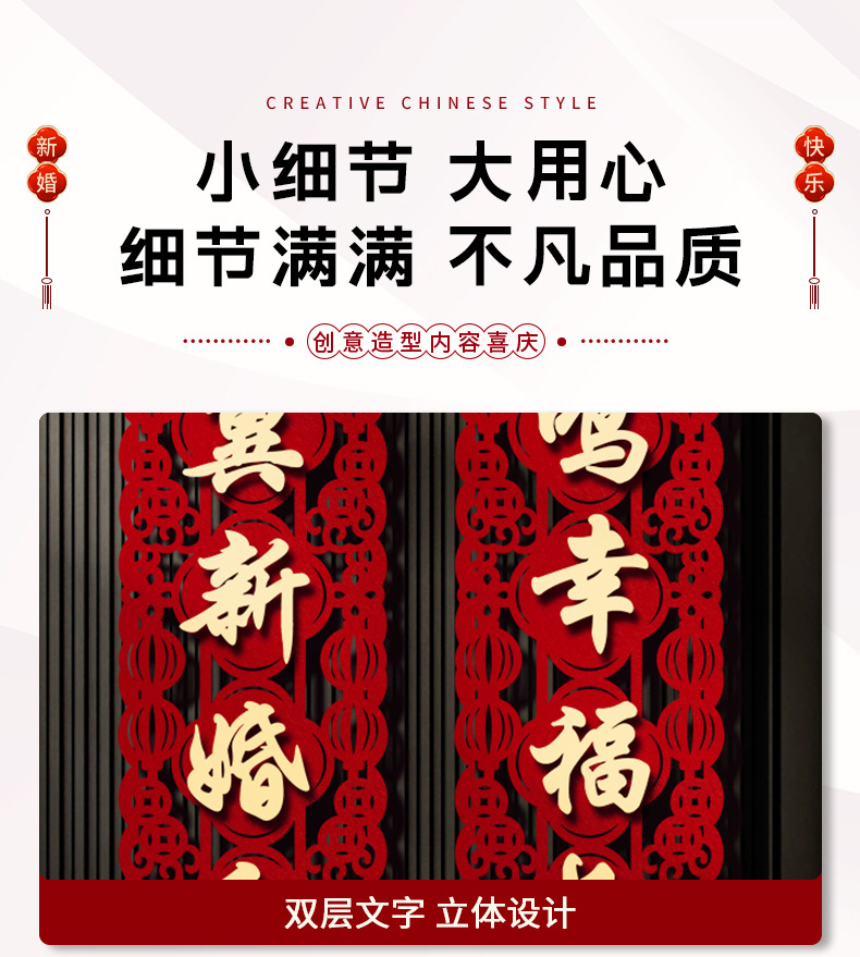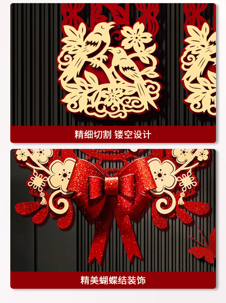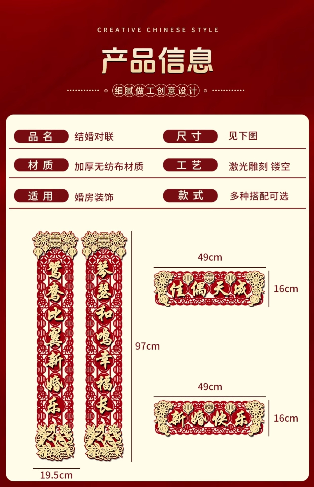 结婚对联男方大门女方出嫁喜事婚房布置装饰喜字贴磁吸专用入户门