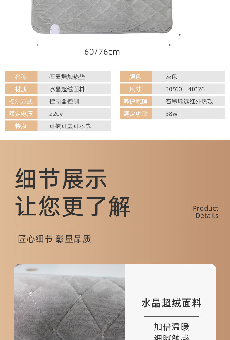 石墨烯远红外热疗垫热敷暖身垫迷你养生电热毯肩背部热敷垫