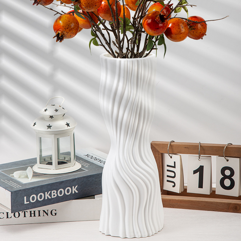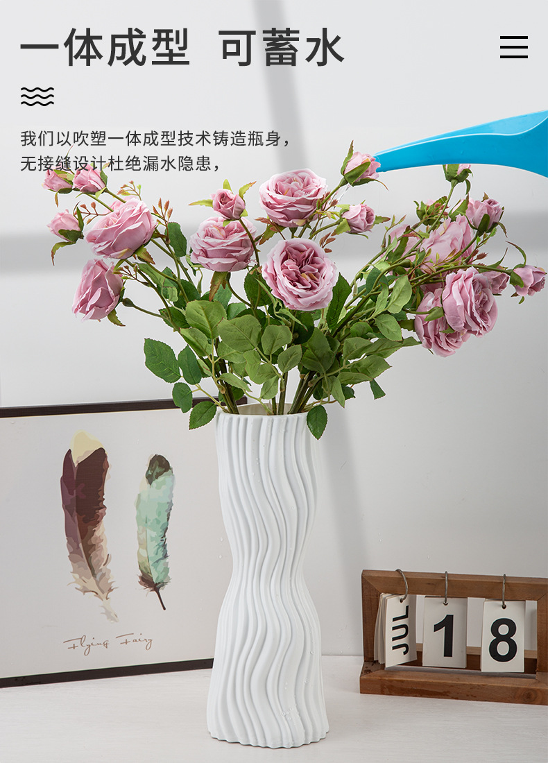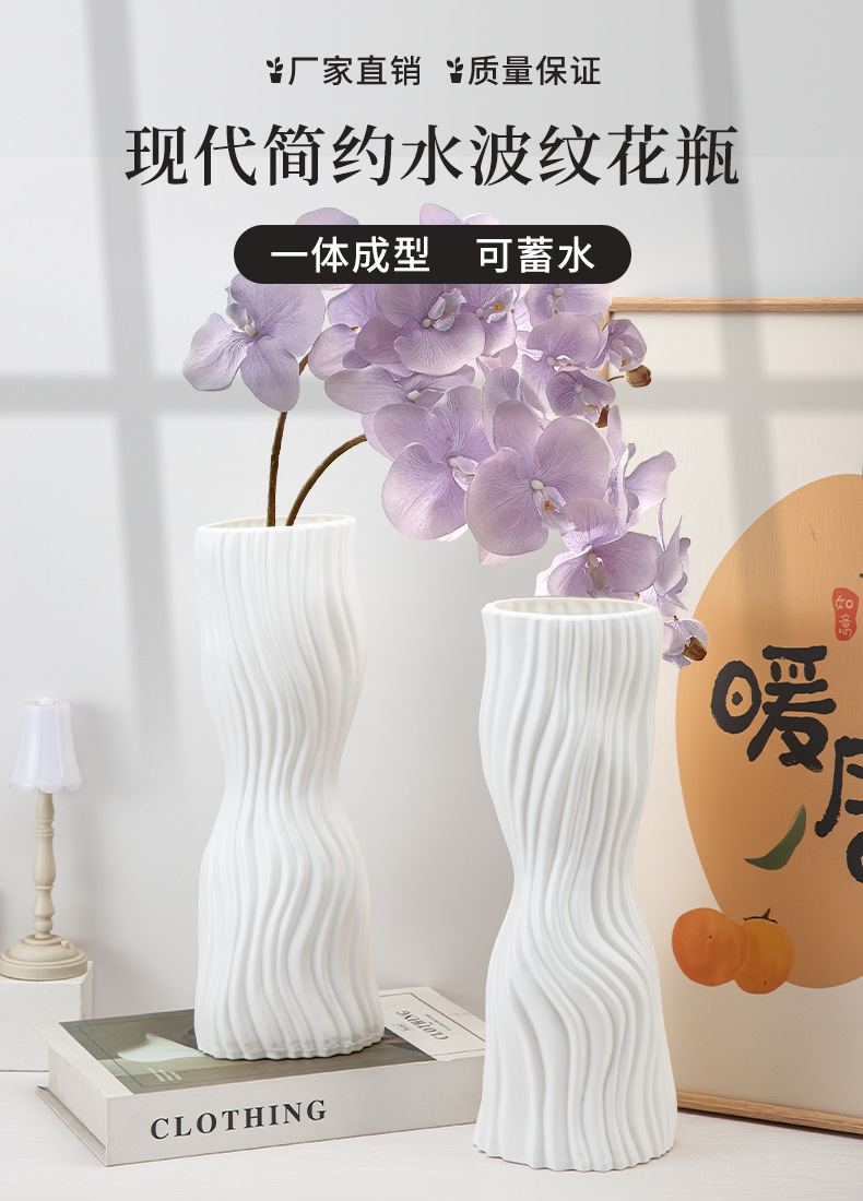 厂家批发高版水培鲜花瓶仿陶瓷创意可蓄水塑料花瓶跨境可贴标代发