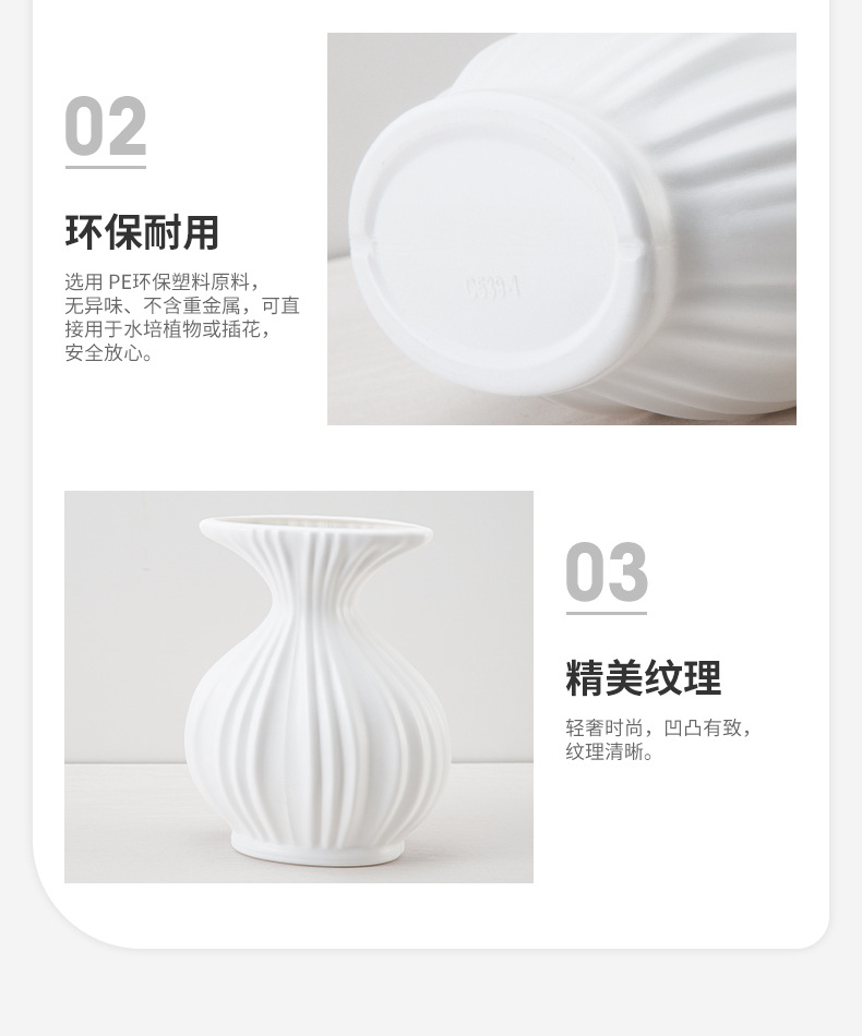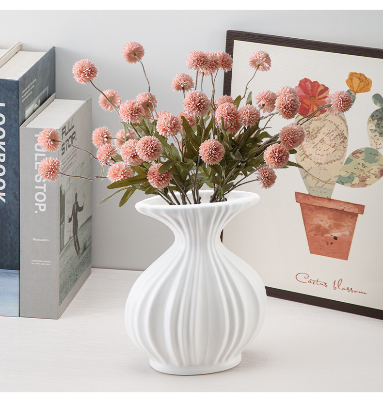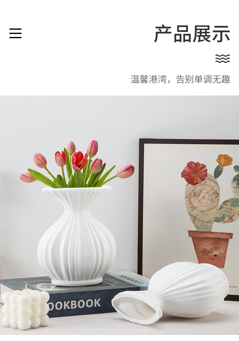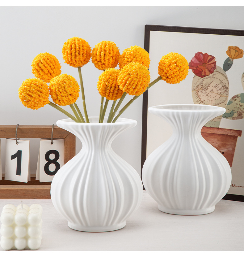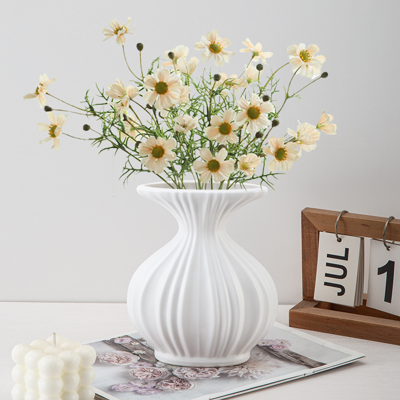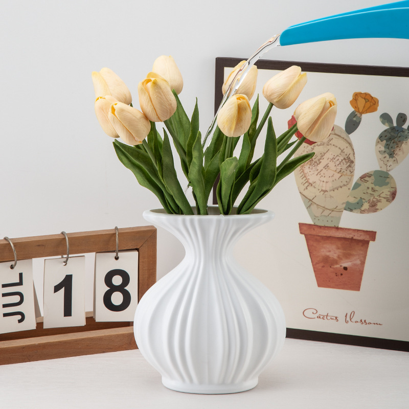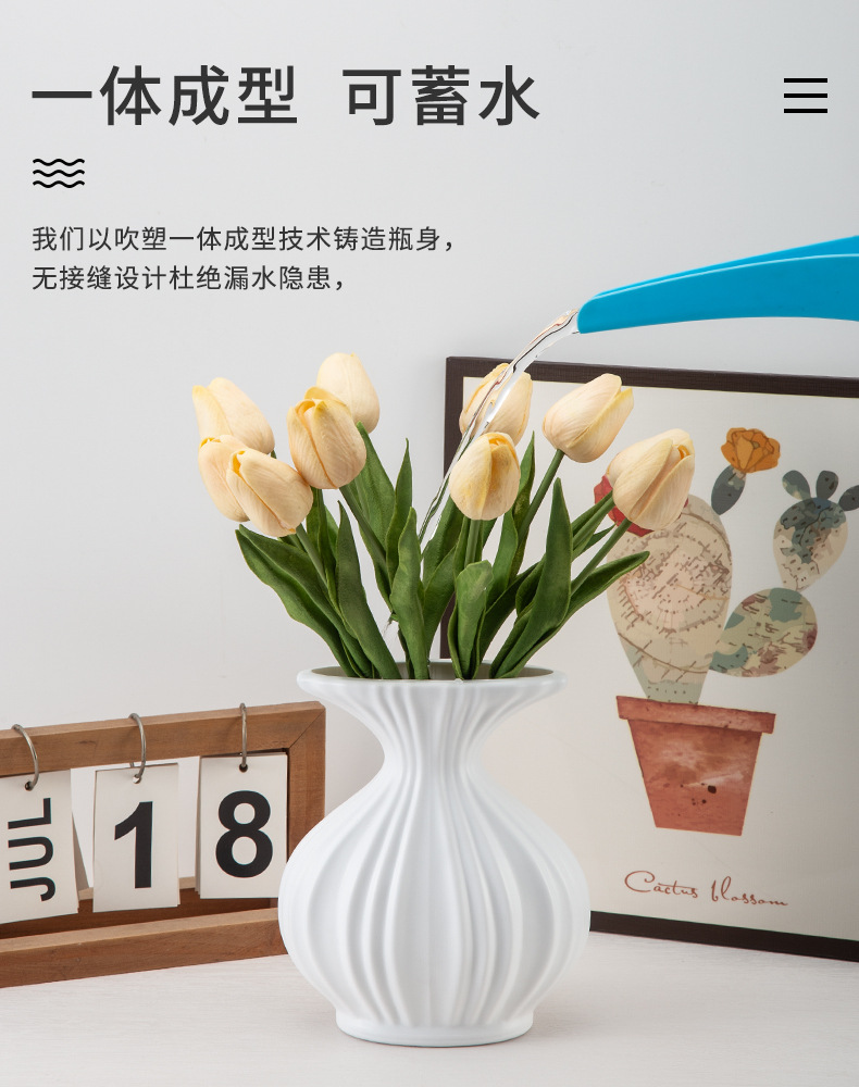 塑料花瓶ins奶油仿陶瓷小花瓶客厅摆件插花鲜花瓶可蓄水装饰花瓶