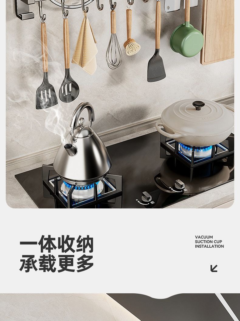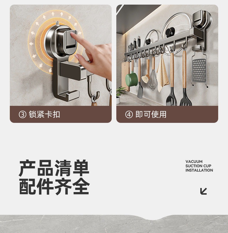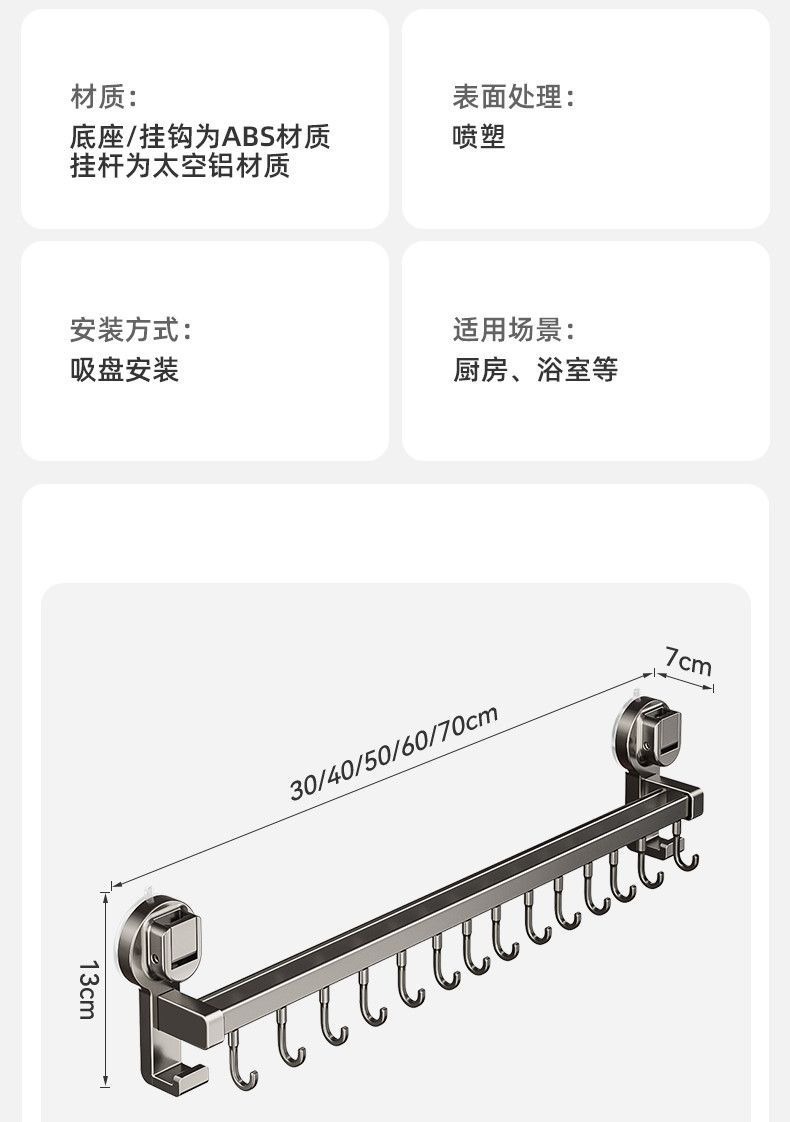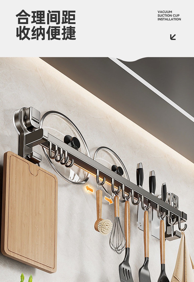 蓝藤厨房吸盘置物架挂钩挂杆挂墙刀架厨具收纳架铲子挂架锅盖架子