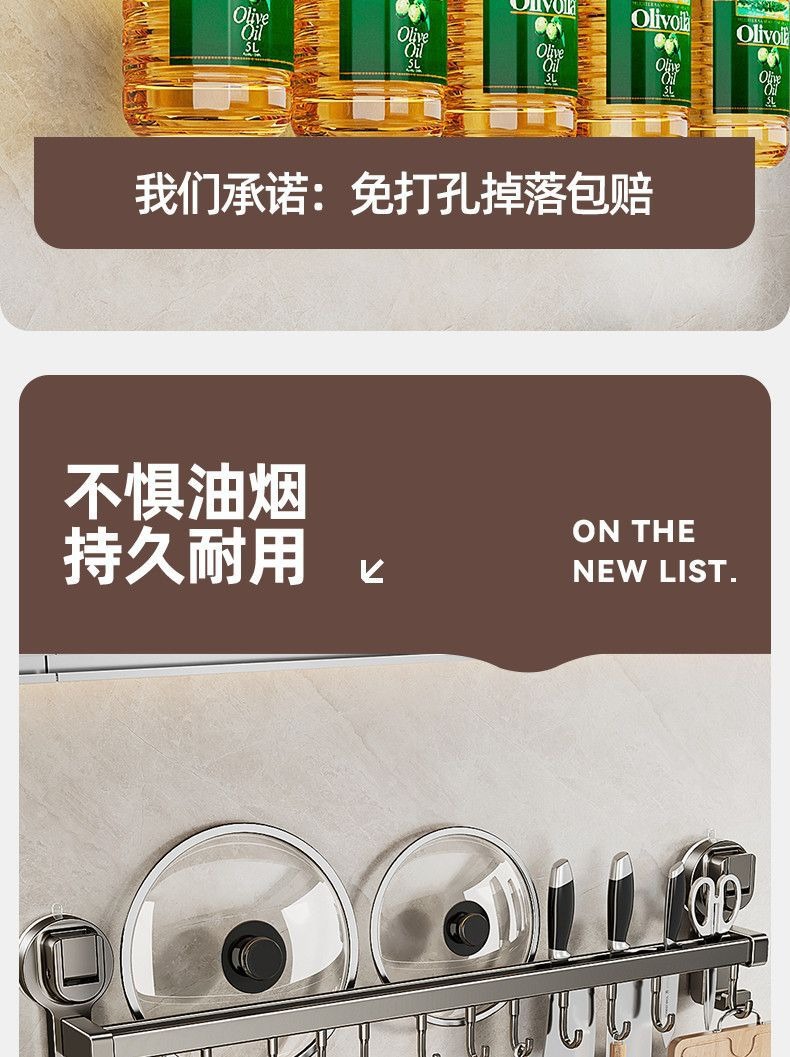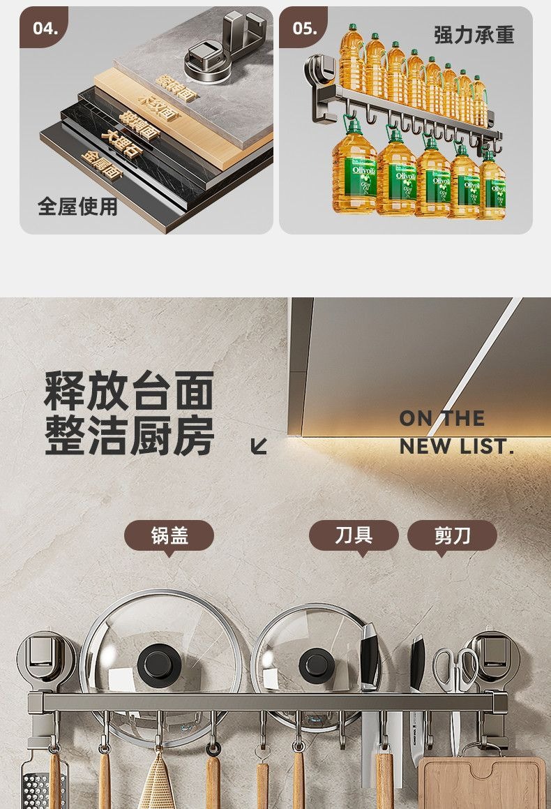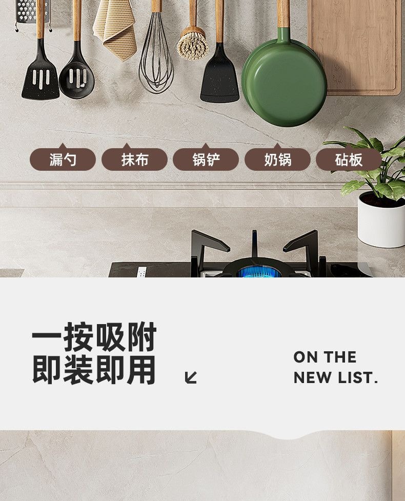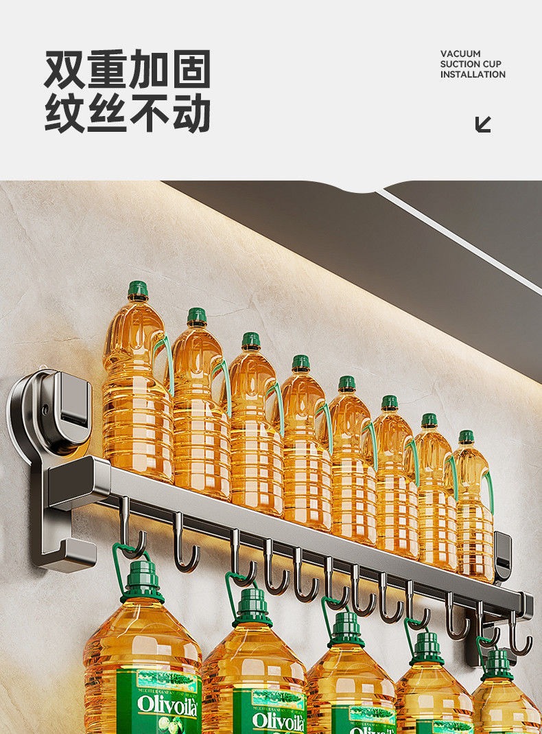 蓝藤厨房吸盘置物架挂钩挂杆挂墙刀架厨具收纳架铲子挂架锅盖架子