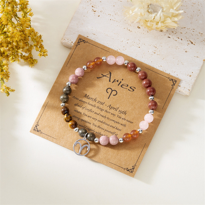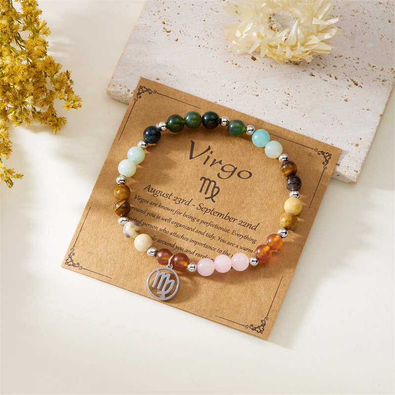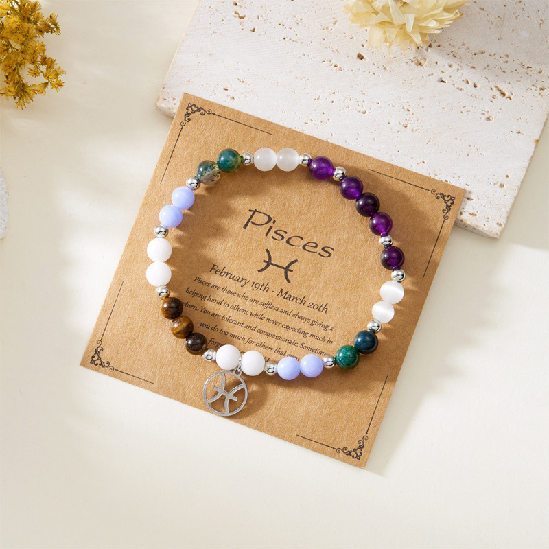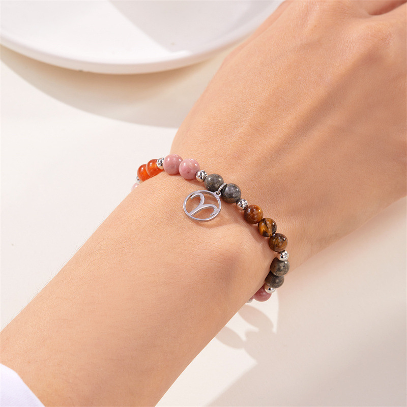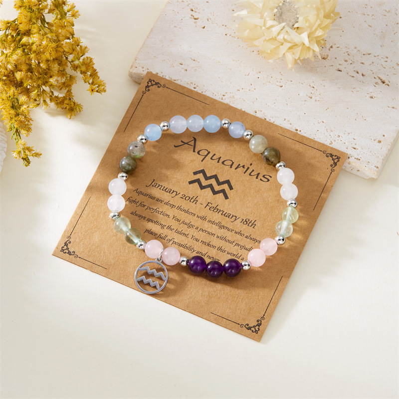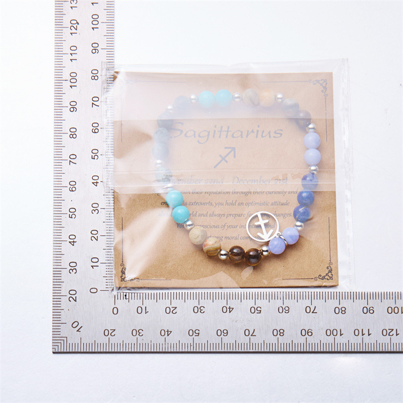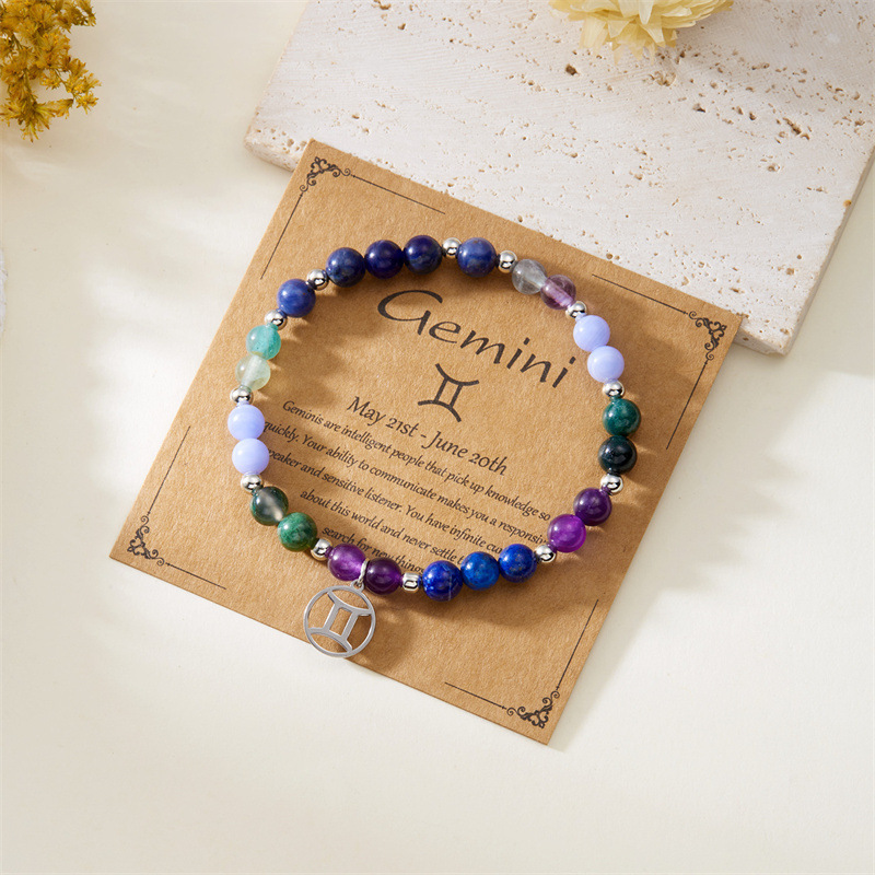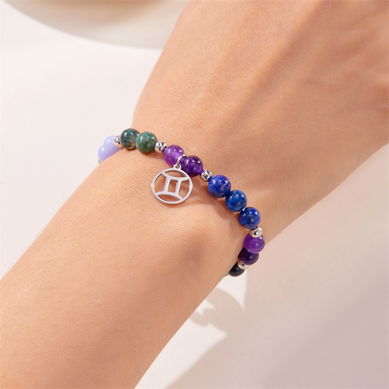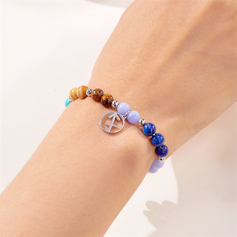 欧美十二星座石头手链紫晶青金铜珠组合串珠手饰不锈钢吊坠手链女