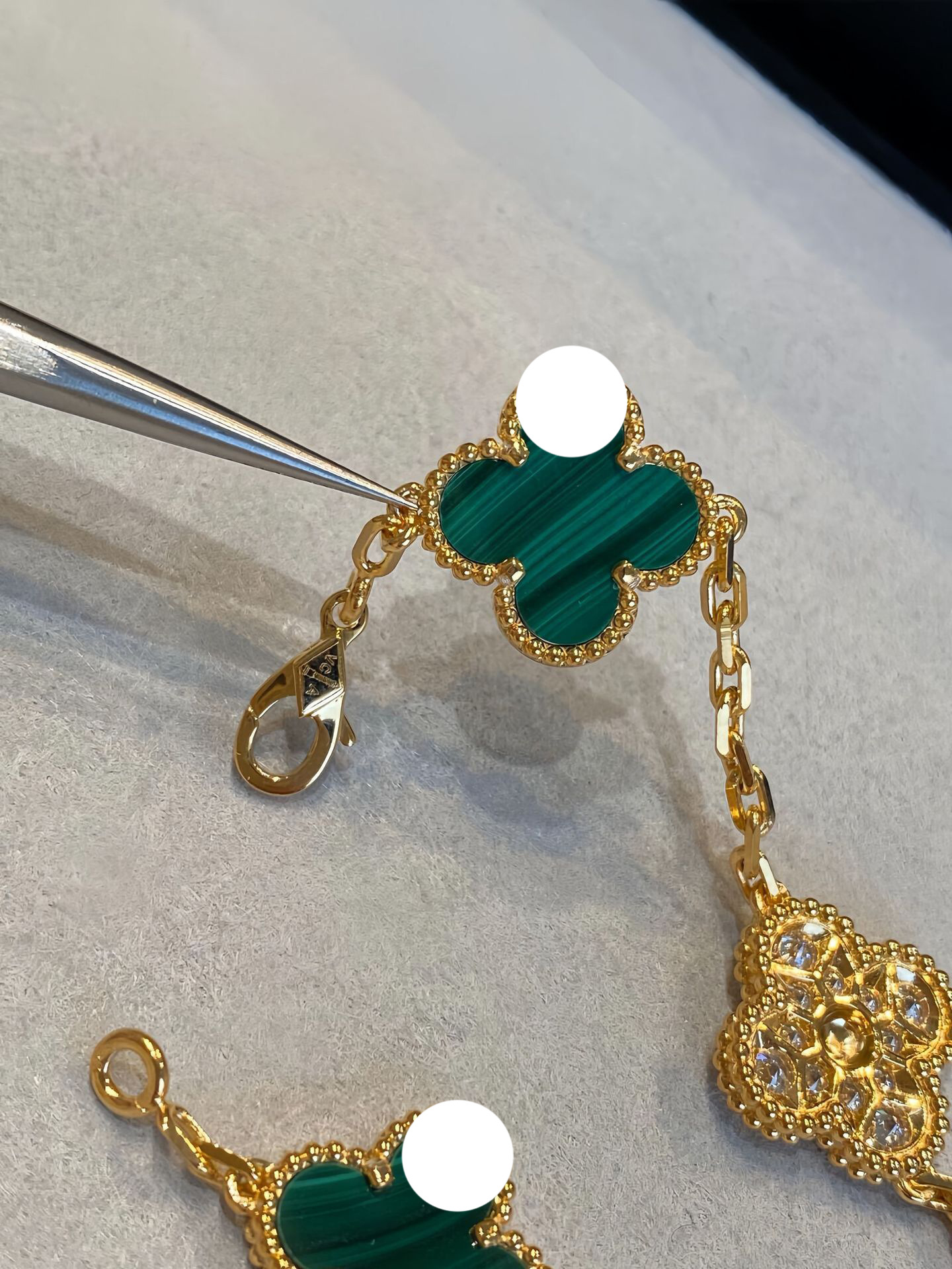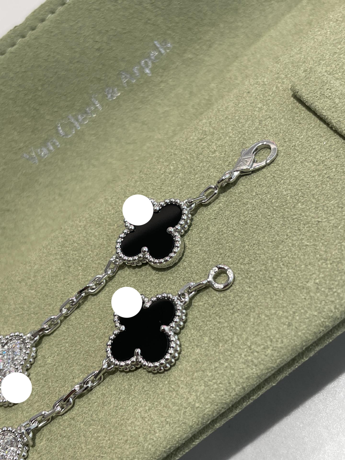 梵家CNC925银四叶草五花手链厚镀18k金轻奢白贝母紫玉髓幸运手链