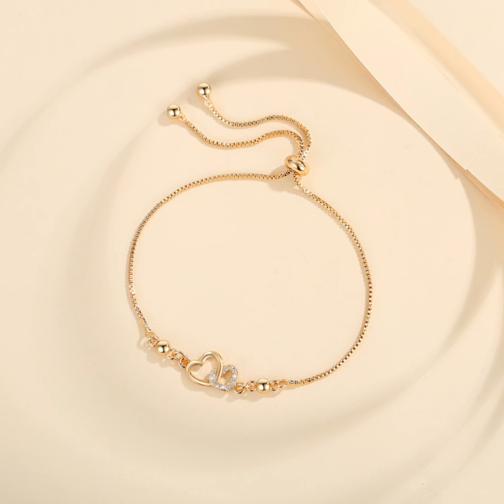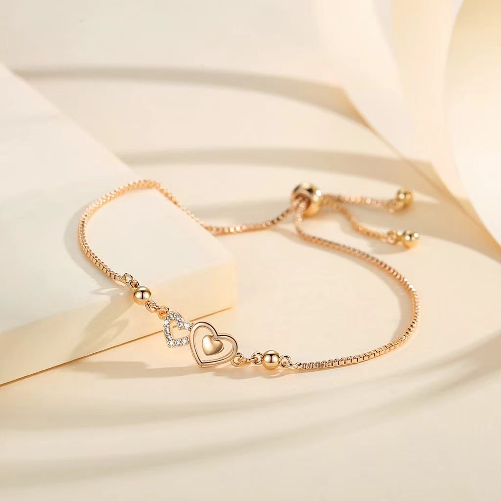爱心手链女跨境时尚小众设计铜镀金镶锆石桃心推拉手链手饰品批发