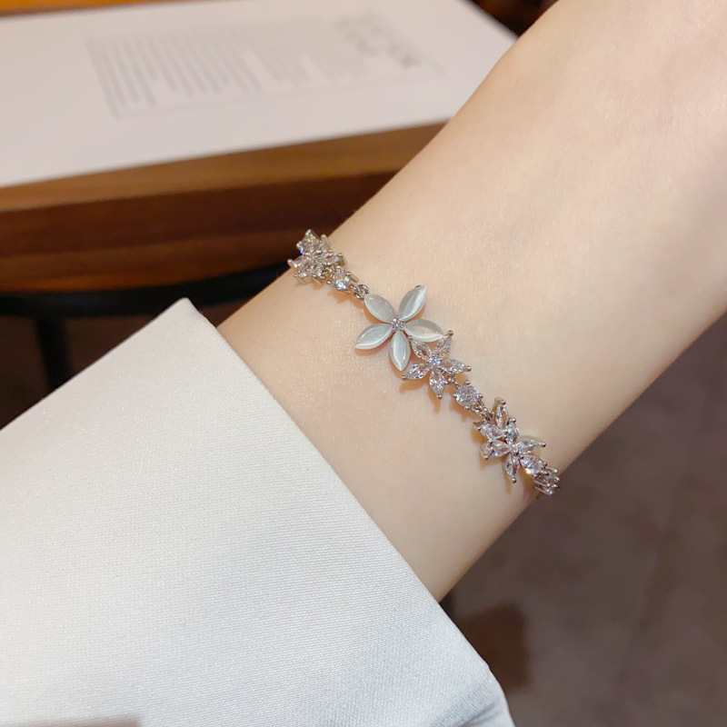 日韩时尚轻奢风锆石猫眼石花朵抽拉式手链个性百搭超闪手饰批发