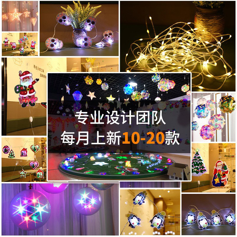 新年圣诞树灯 雪花圣诞老人节日装饰灯串彩灯批发 LED吸盘圣诞灯