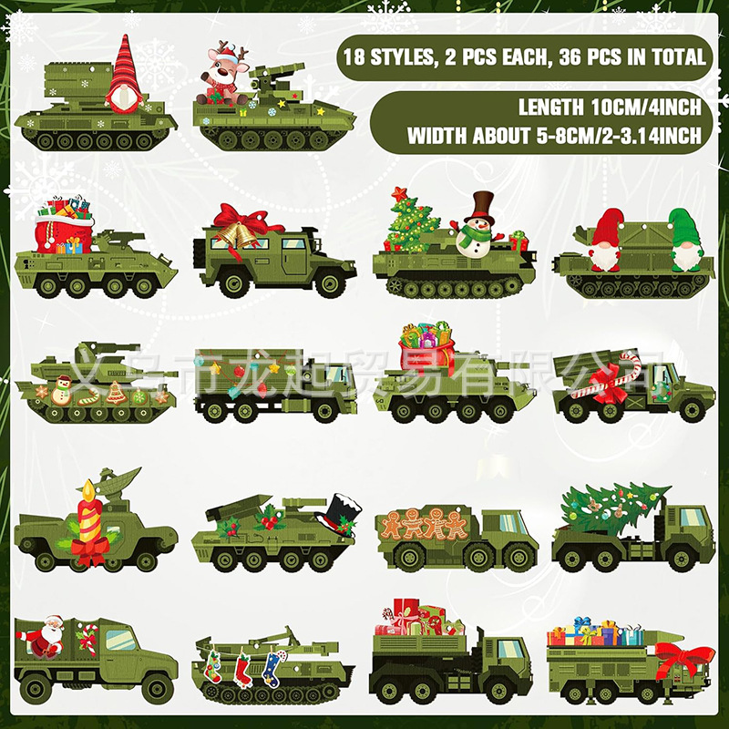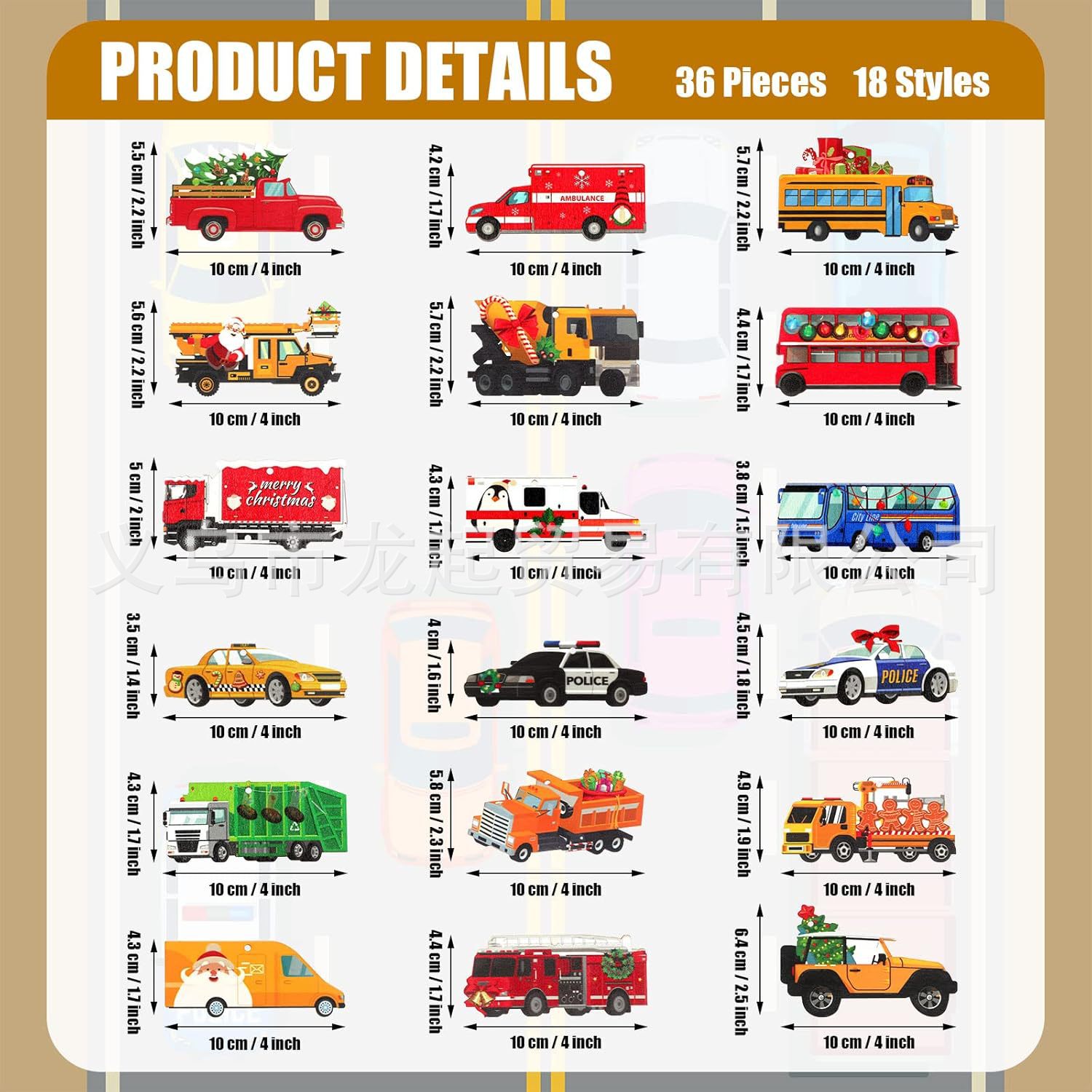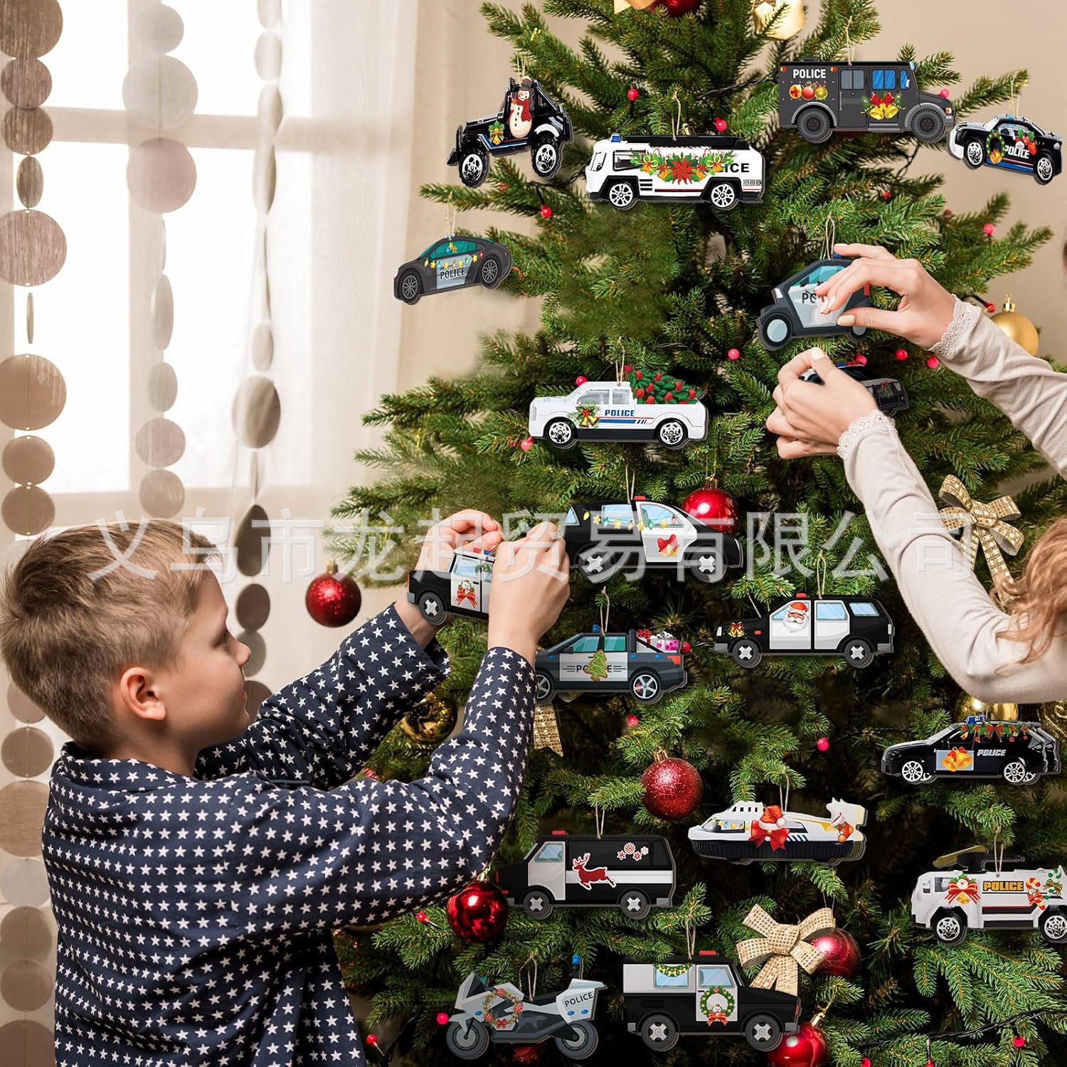 亚马逊36件圣诞树车辆交通主题汽车挂饰圣诞木制挂饰套装家居装饰